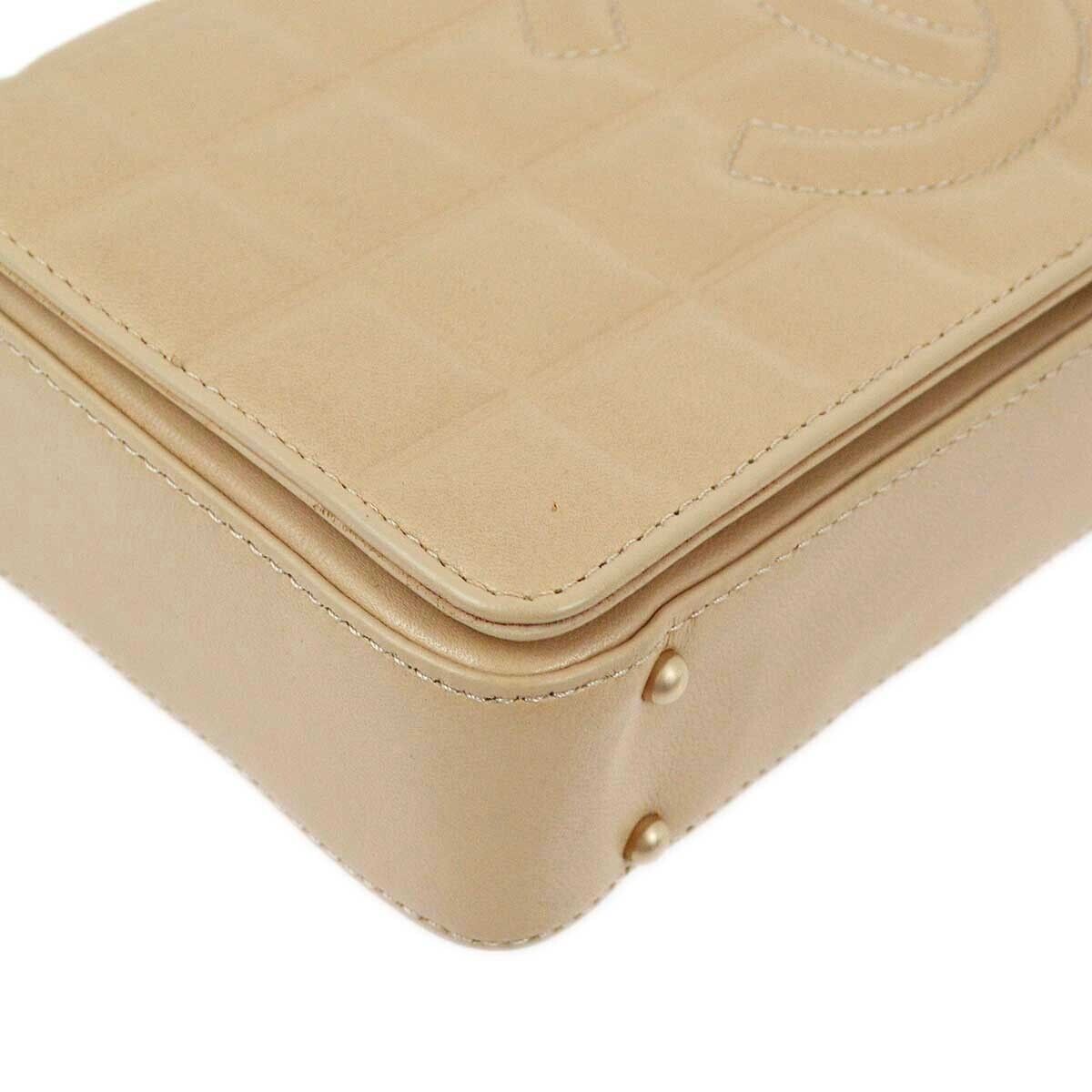 Invest in a piece of fashion history with the Chanel Beige Lambskin Choco Bar Shoulder Bag. From its iconic design to its superior quality, this bag is a symbol of timeless style and sophistication. Elevate your wardrobe with this exquisite accessory that will effortlessly complement any look, ensuring you stand out with elegance and grace.