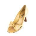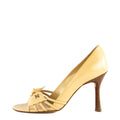 These secondhand Chanel sandals from the French fashion house's Cruise 2004 collection are an ideal summer footwear pick. Fabricated from fine Italian leather, these open-toe beige leather sandals present a large tonal bow, and gathered thin cutout straps at the front of the vamps. A miniature silver-tone logo adorns each bow for an additional branded touch. The brown stacked leather heels grant height, while shaping your figure with their sleek lift. Pair these Chanel sandals with a neutral belted shirtdress, and the Louis Vuitton Monogram Pochette Accessoires for a playful brunch look.