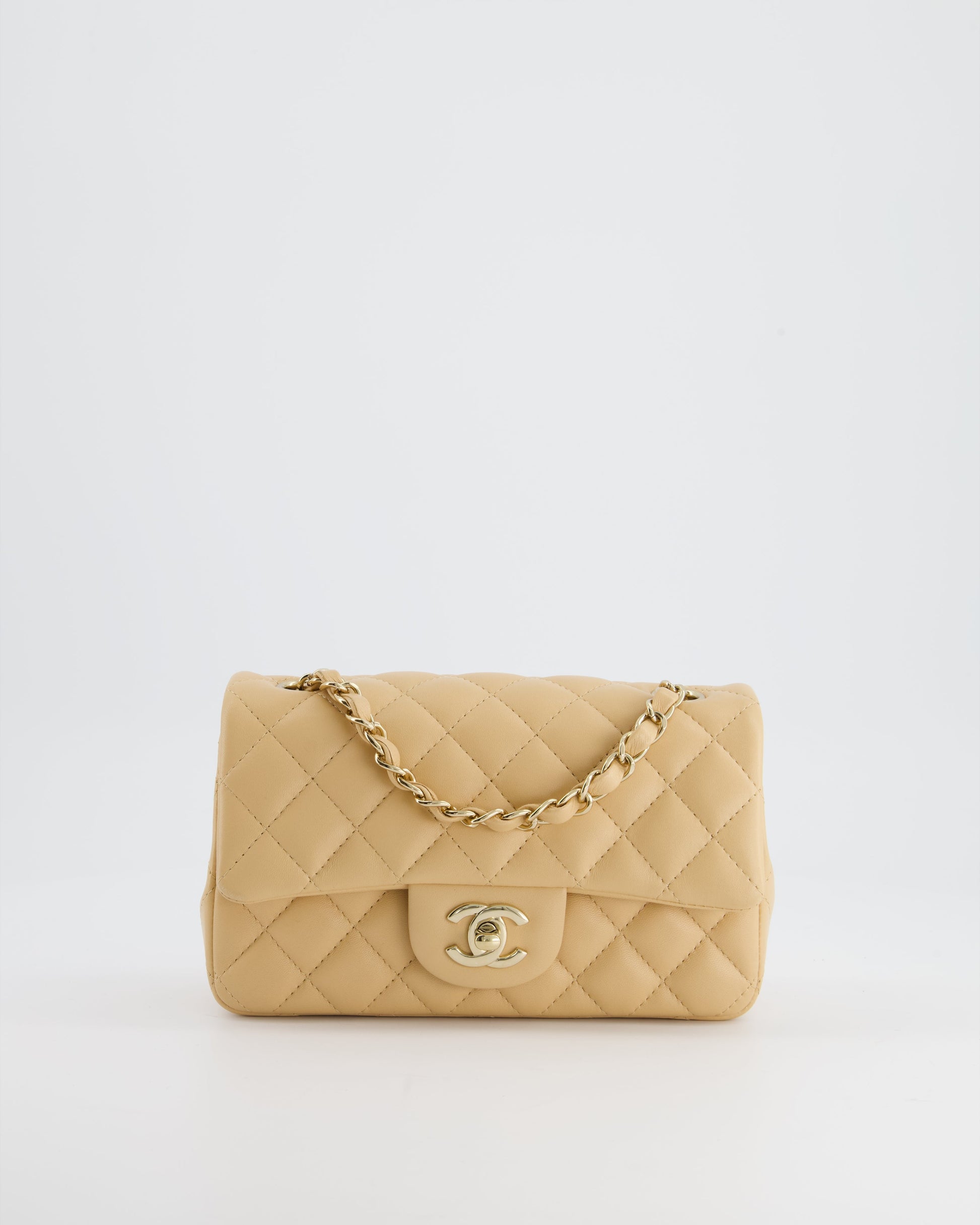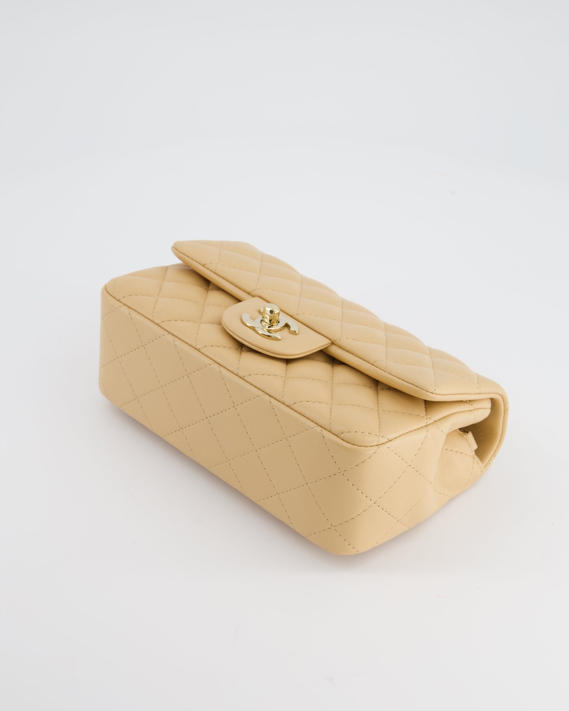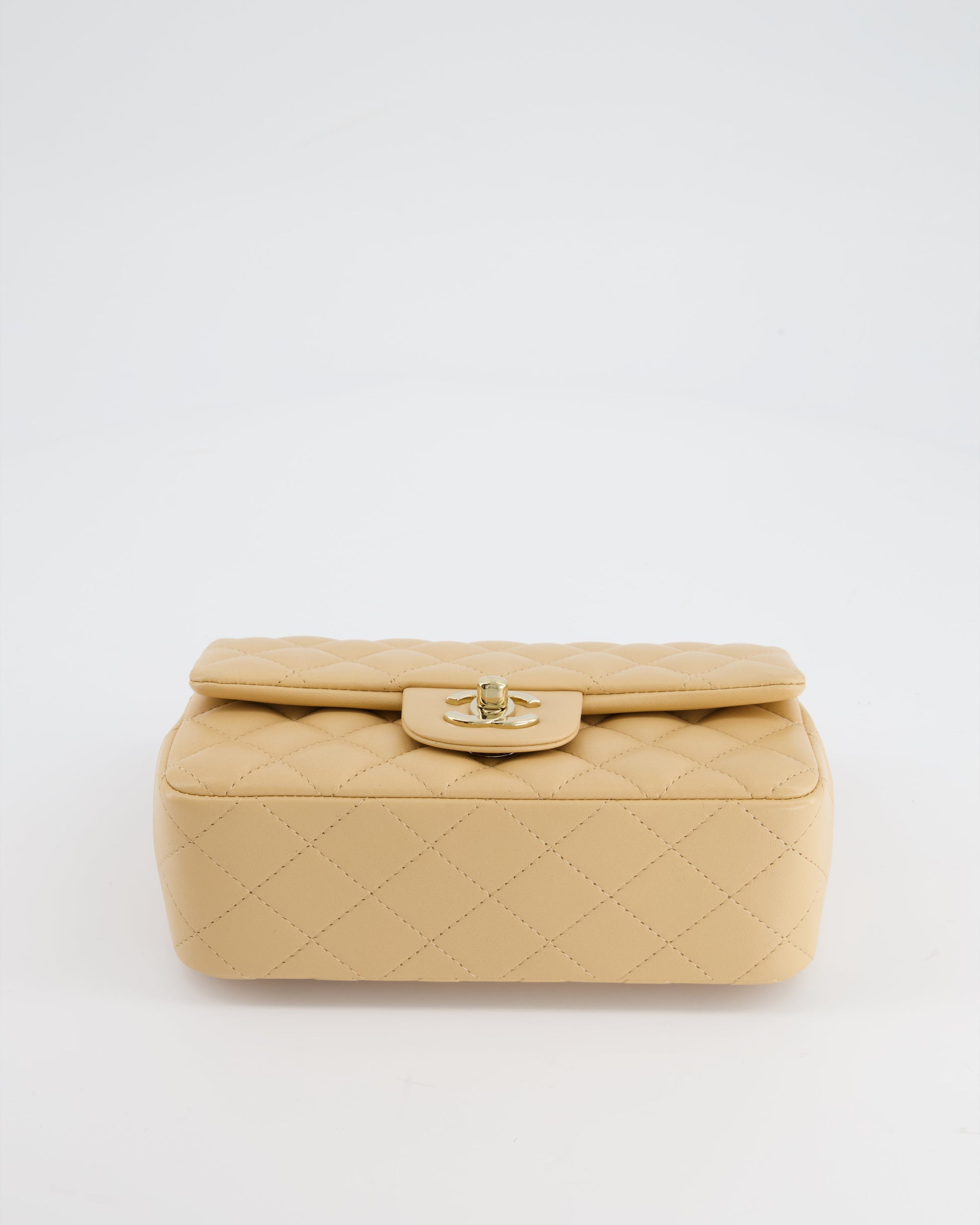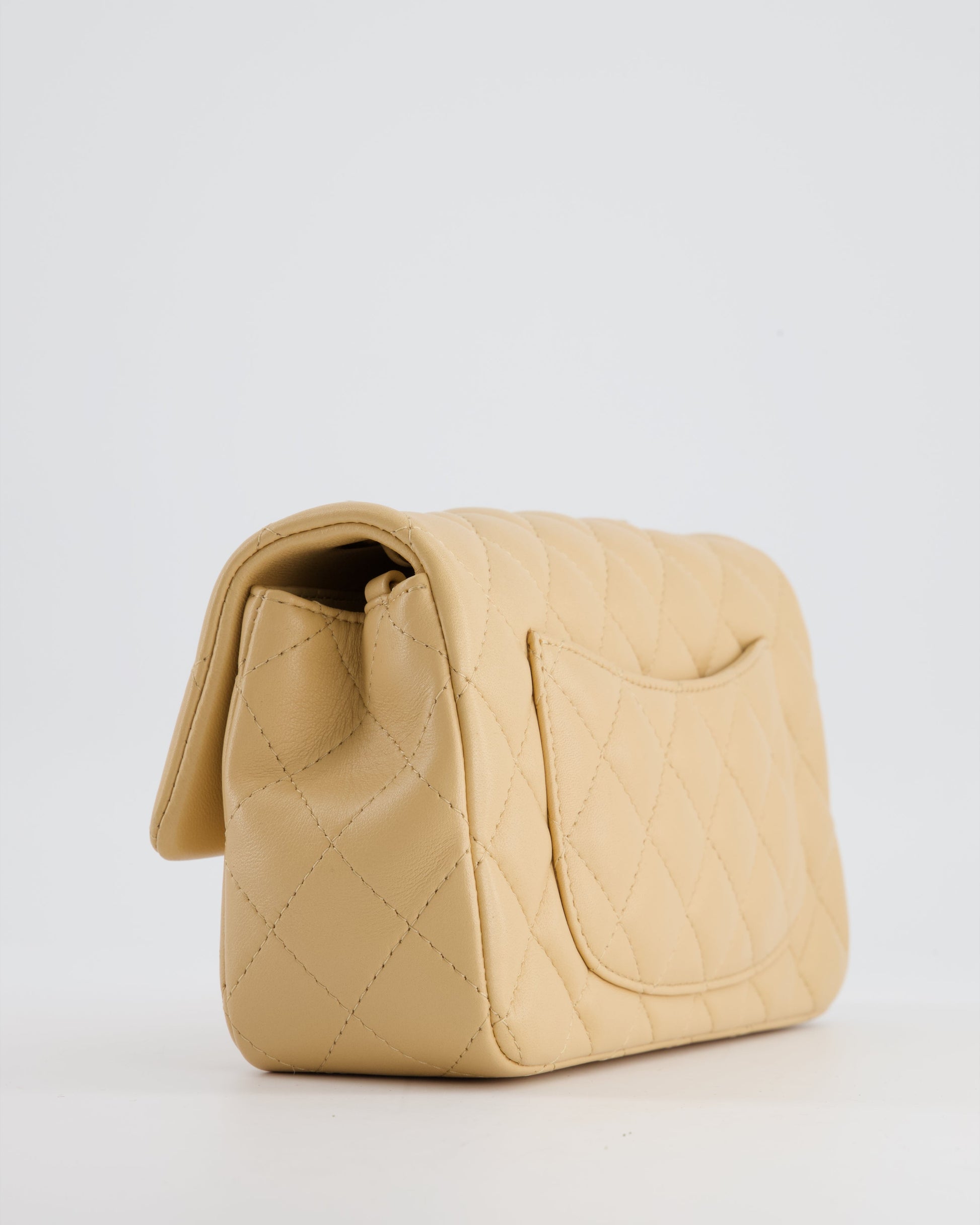 Chanel Beige Mini Rectangular Flap Bag in Lambskin Leather with Gold Hardware