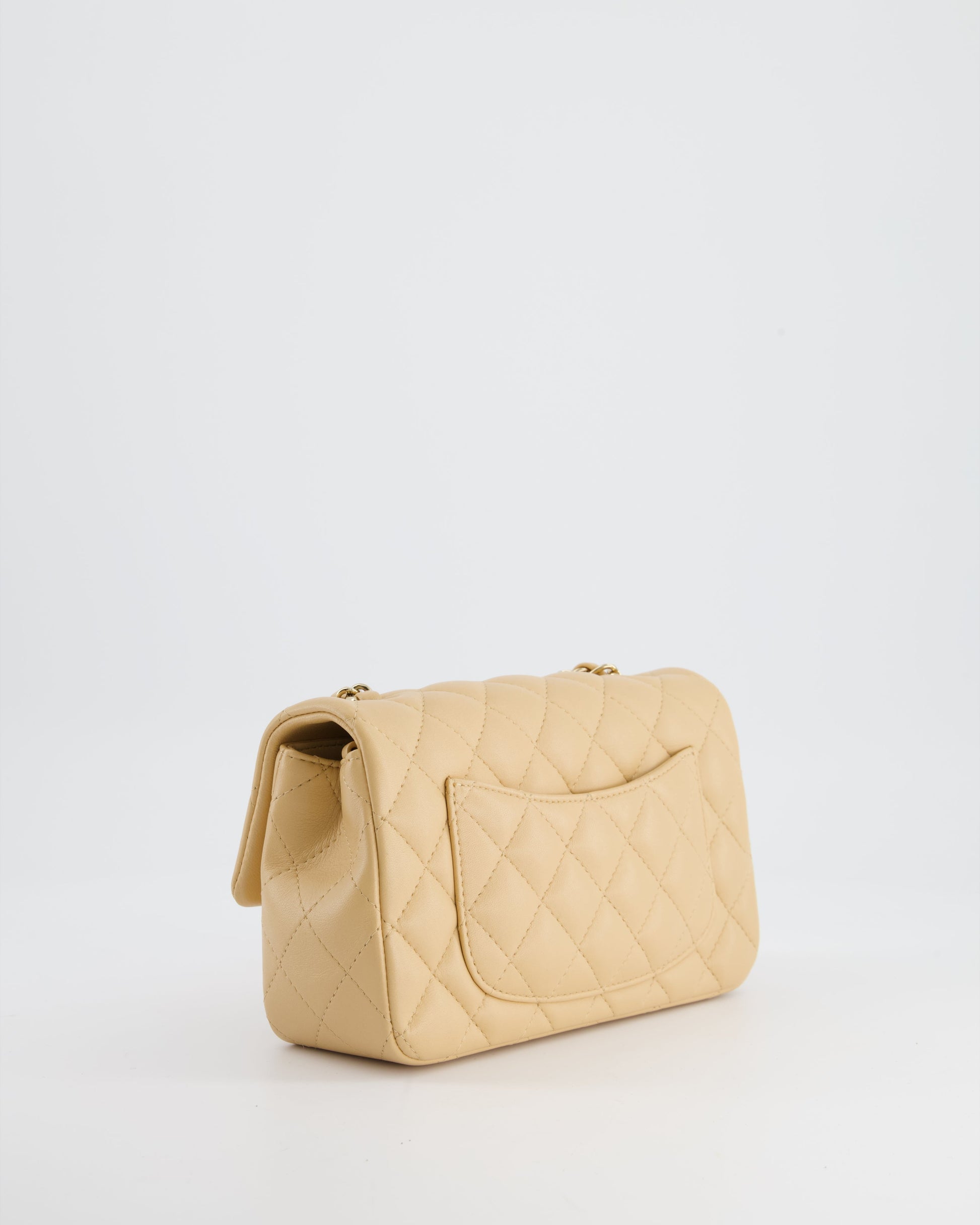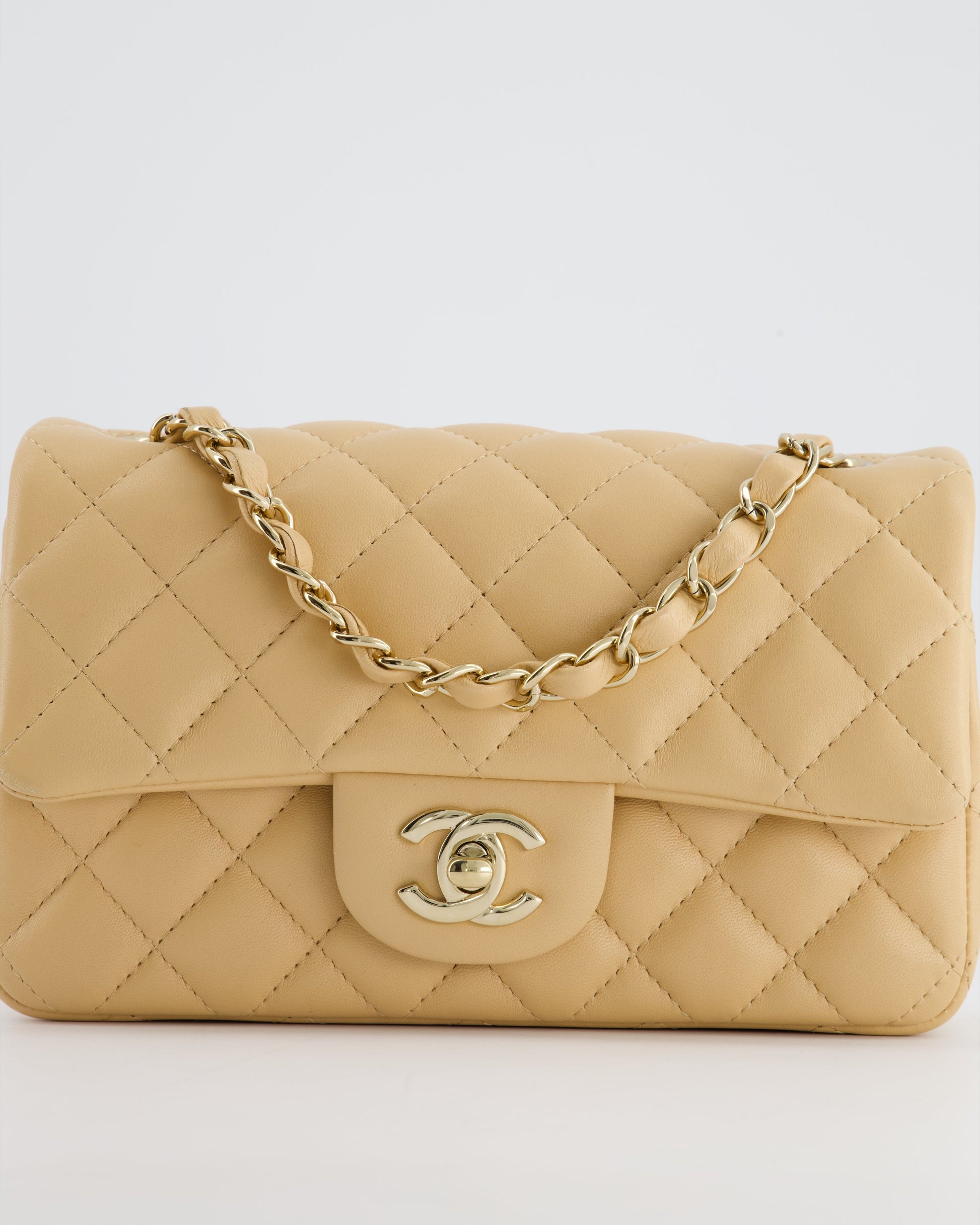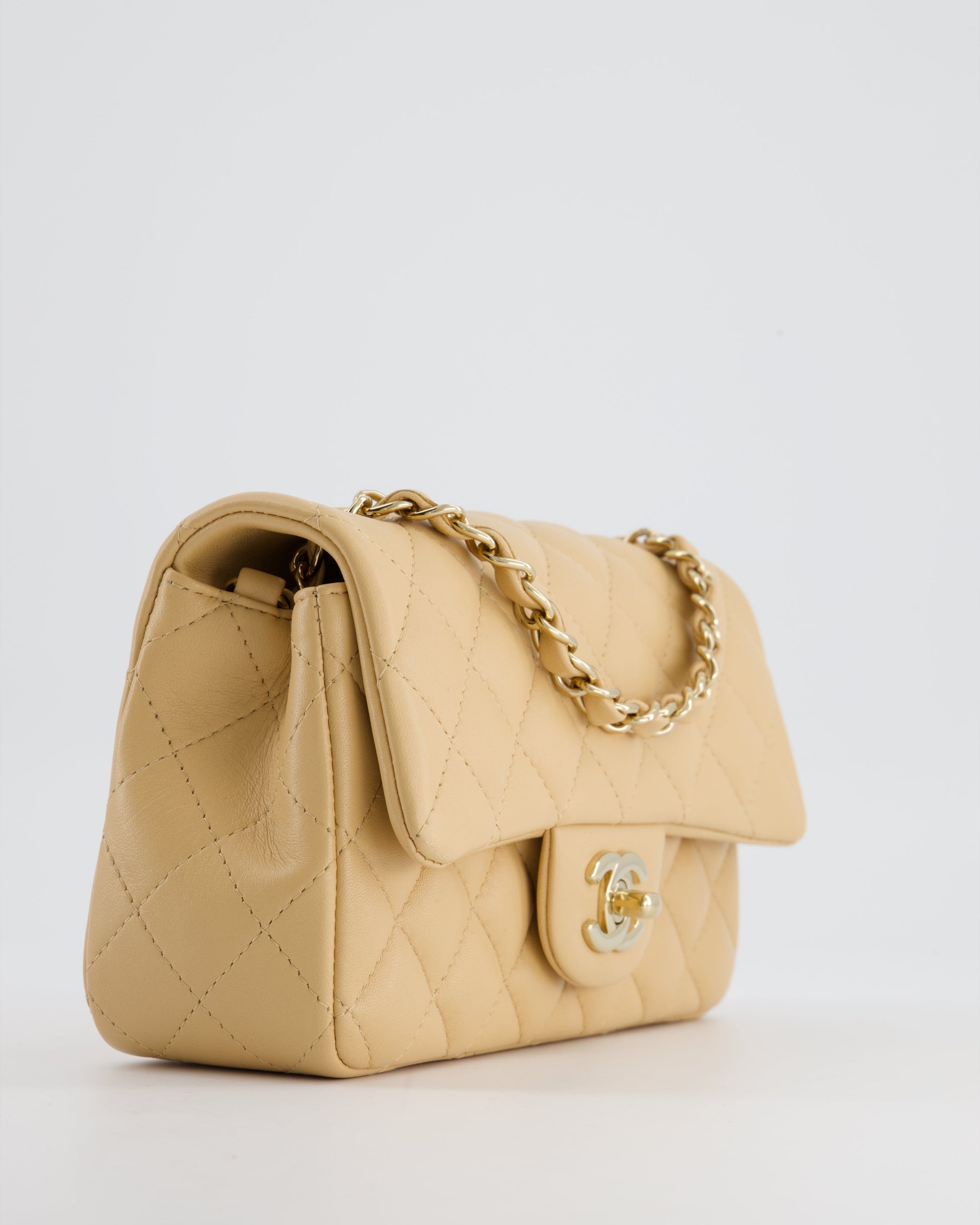 Chanel Beige Mini Rectangular Flap Bag in Lambskin Leather with Gold Hardware
