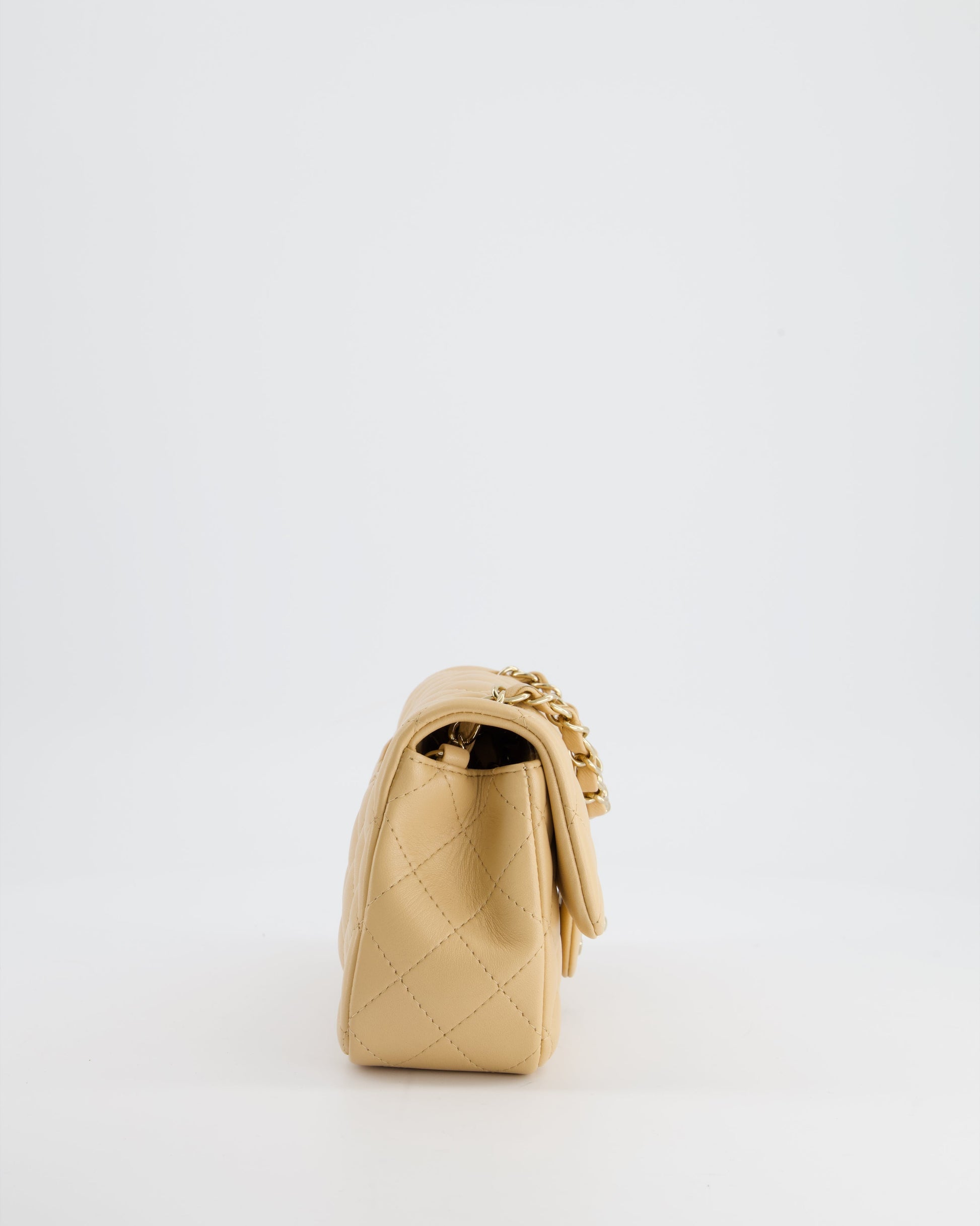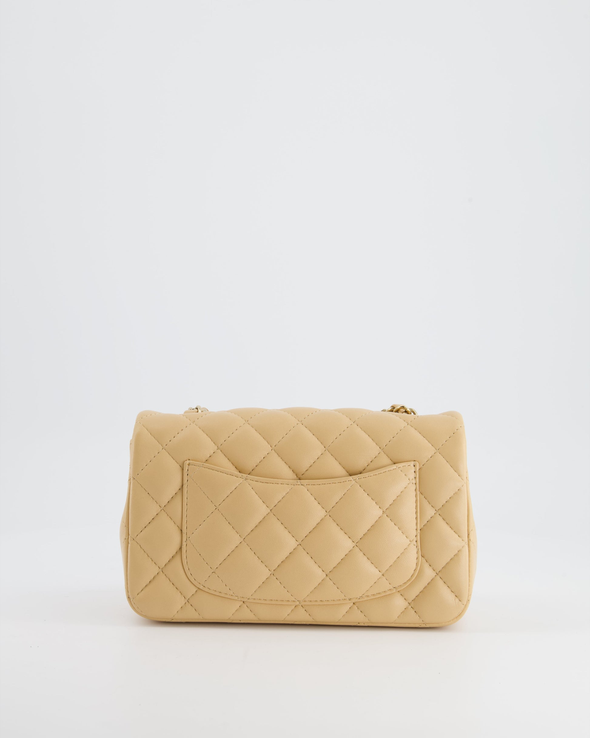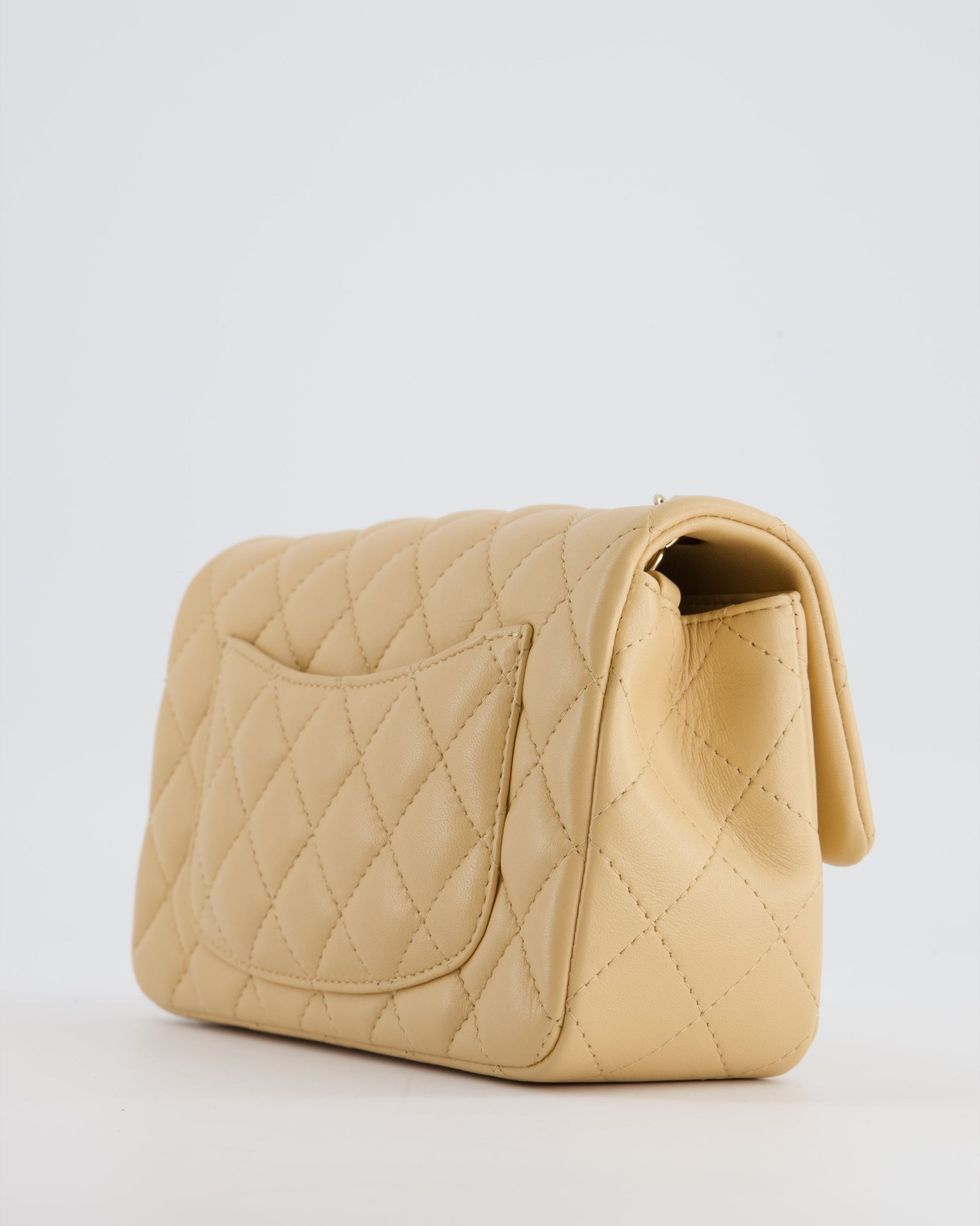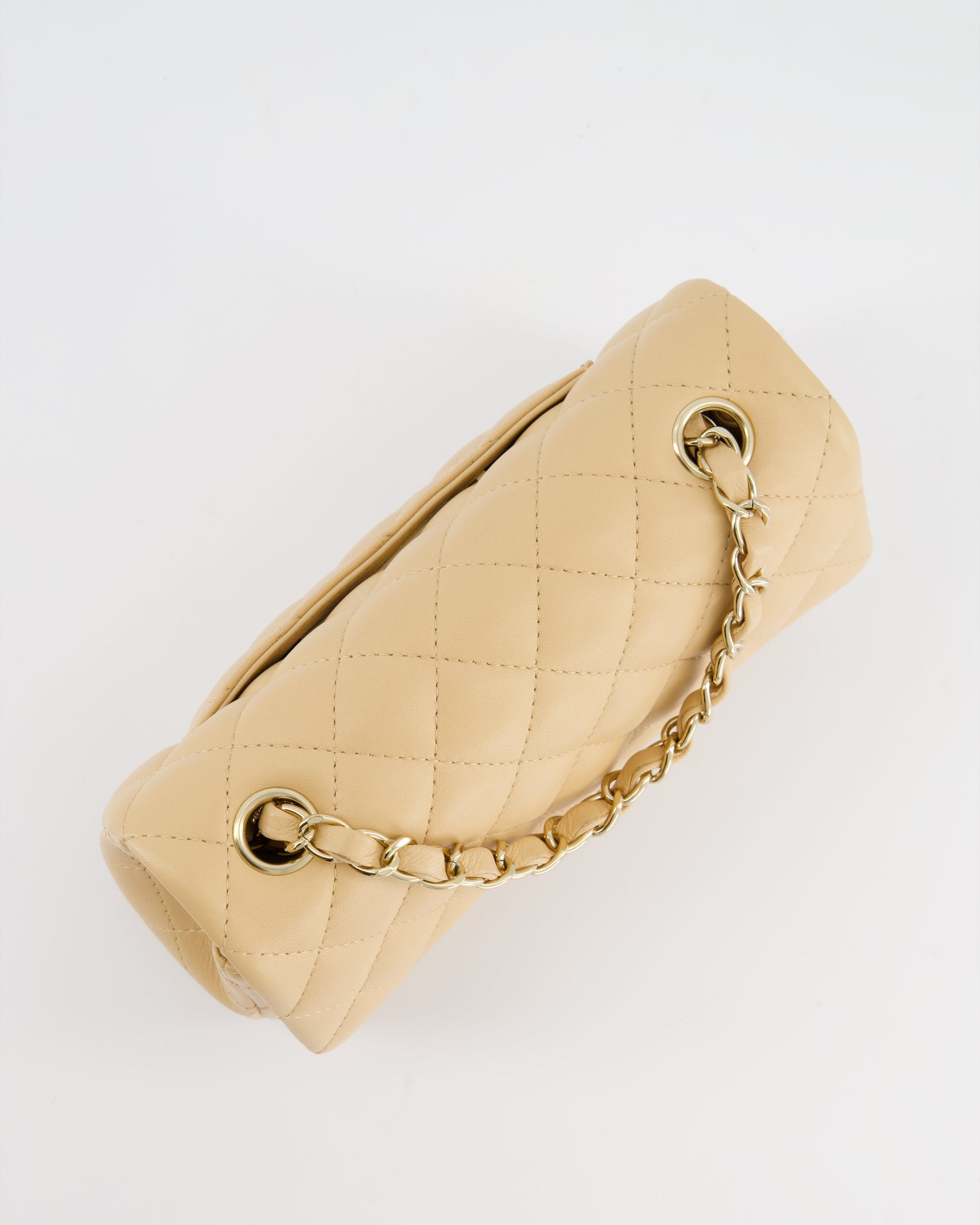 Chanel Beige Mini Rectangular Flap Bag in Lambskin Leather with Gold Hardware