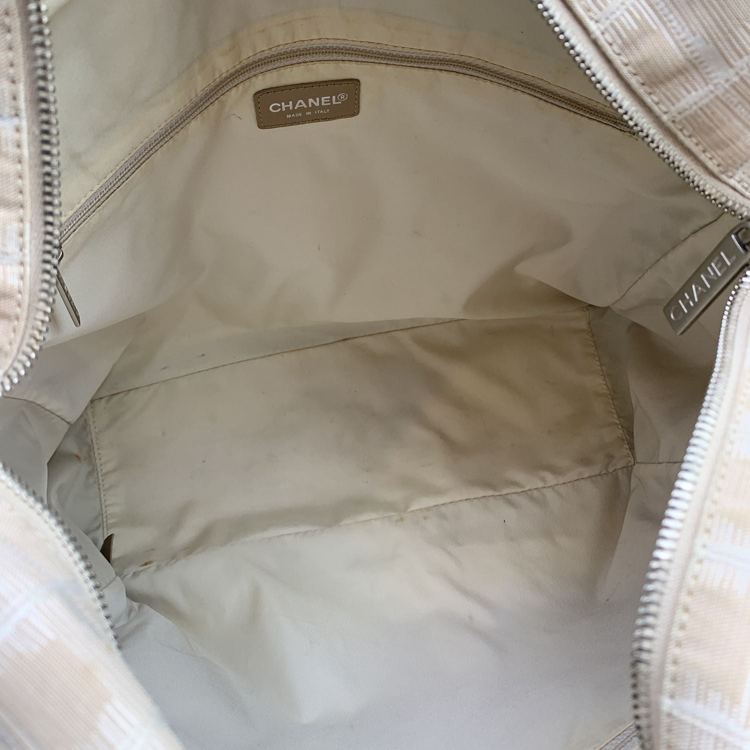 CHANEL Beige Nylon New Travel Line Tote Shoulder Bag 2000S