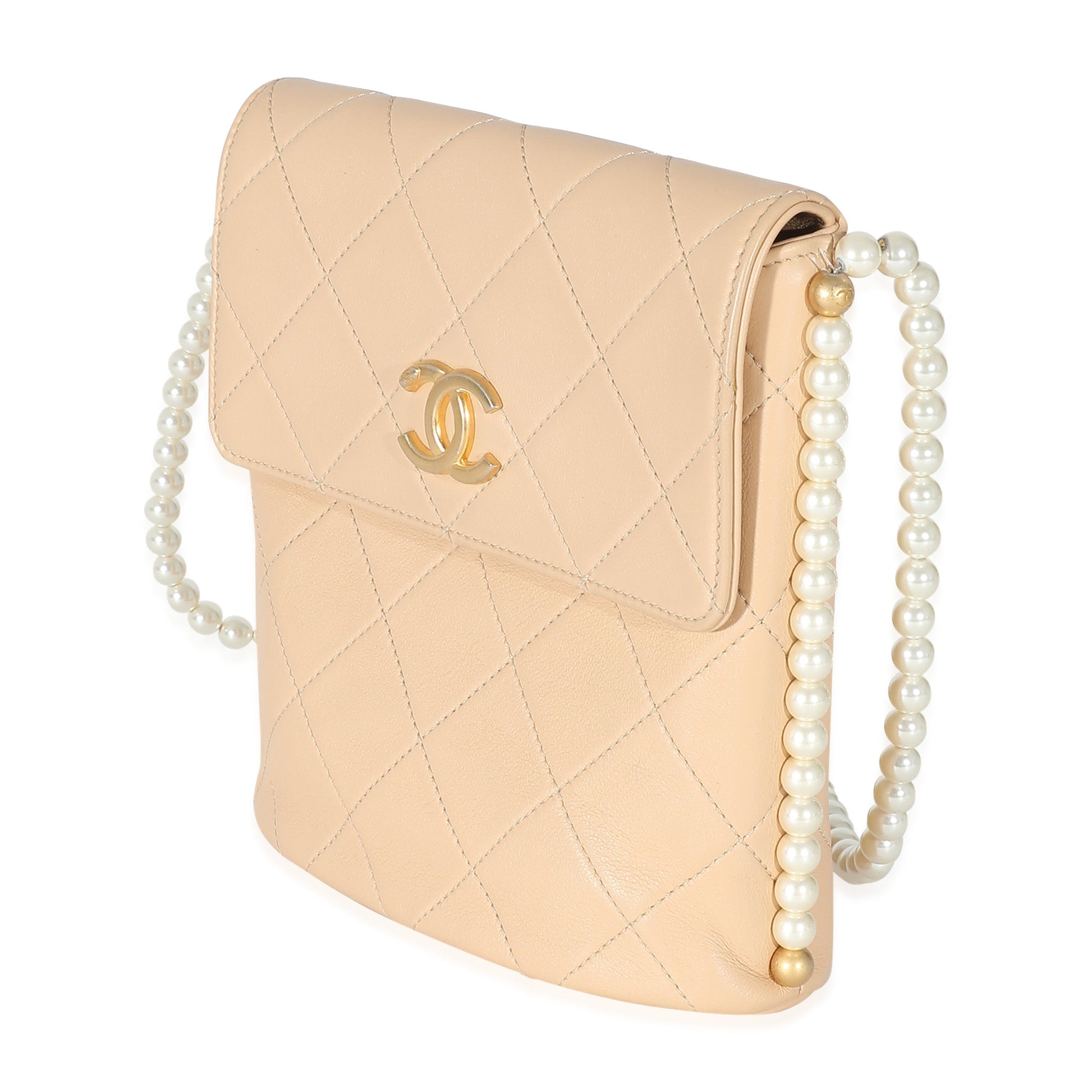 Listing Title: Chanel Beige Quilted Calfskin Small Pearl Chain Hobo