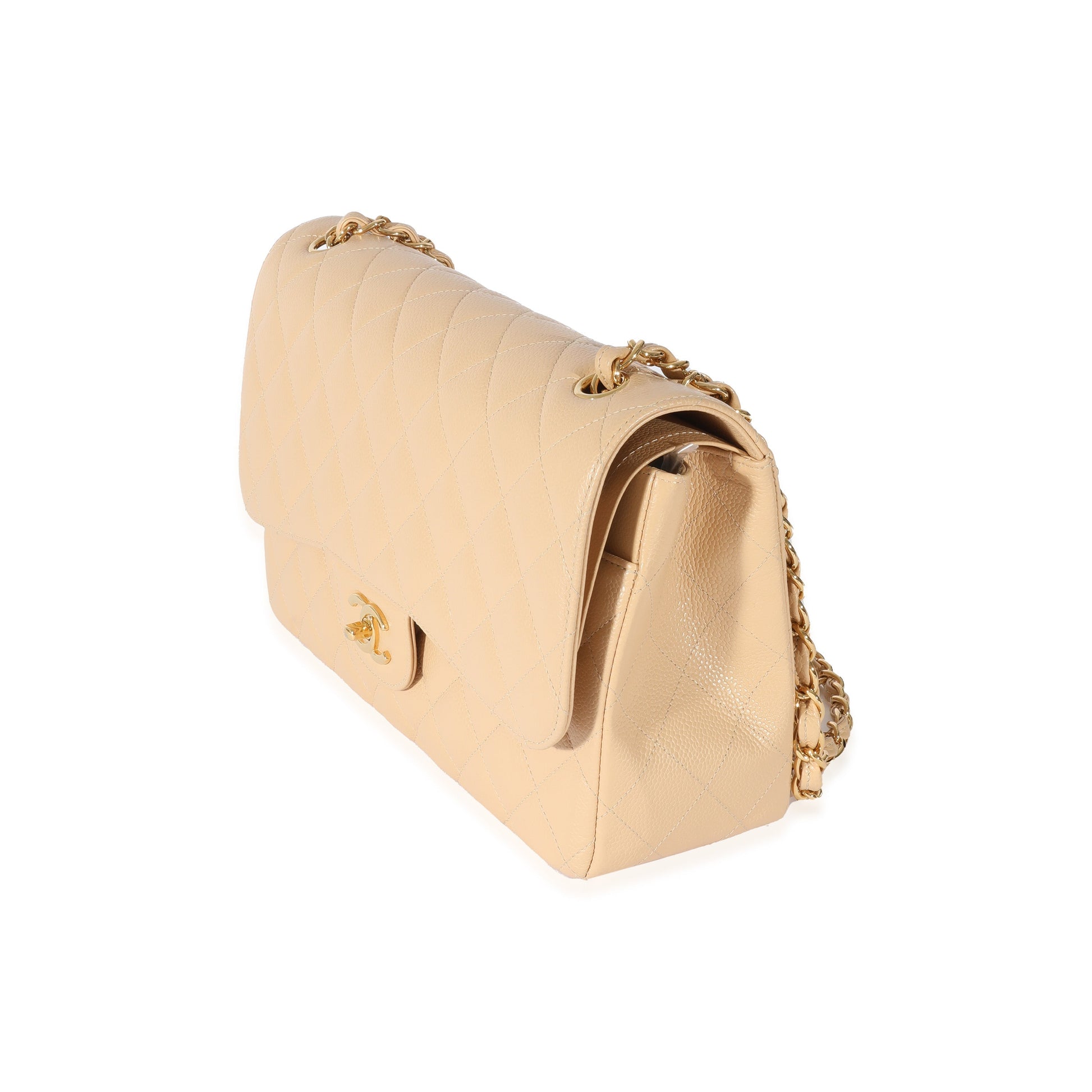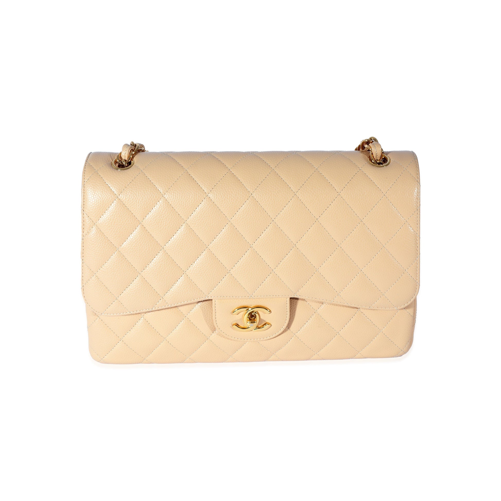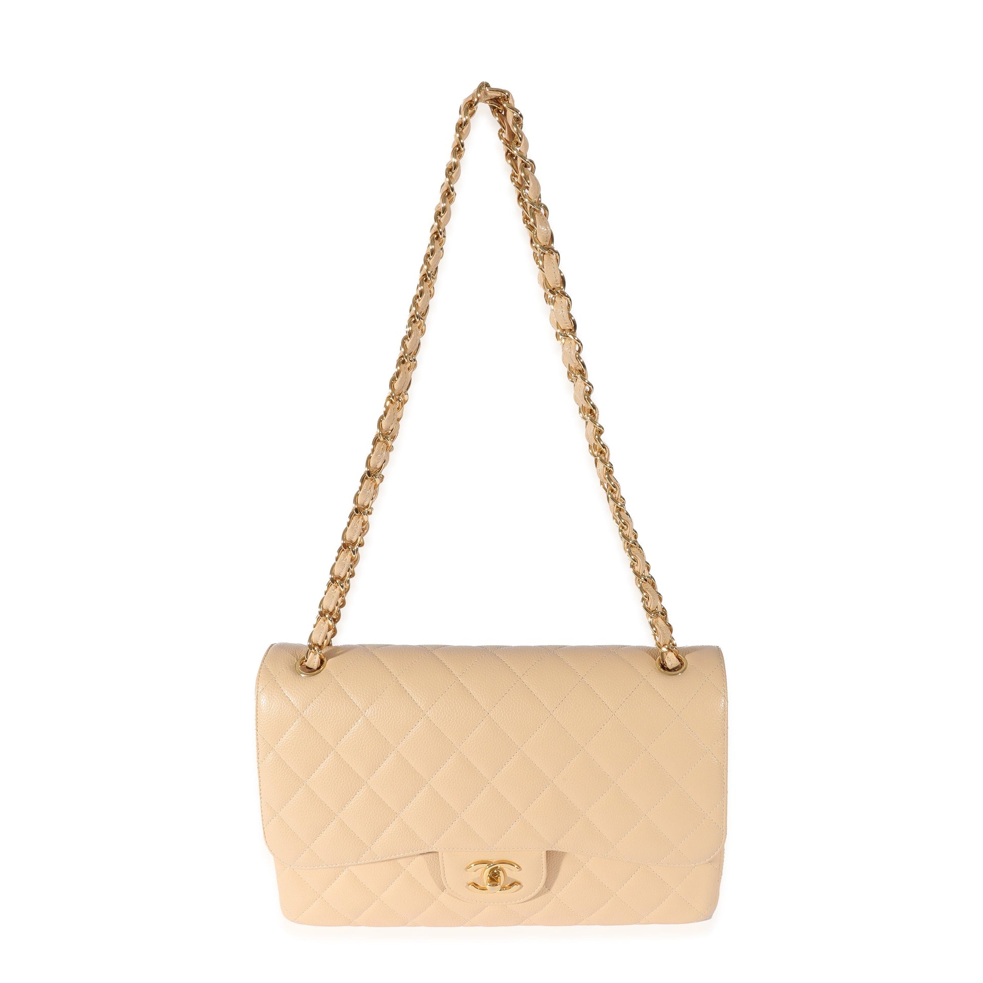 Listing Title: Chanel Beige Quilted Caviar Jumbo Classic Double Flap Bag