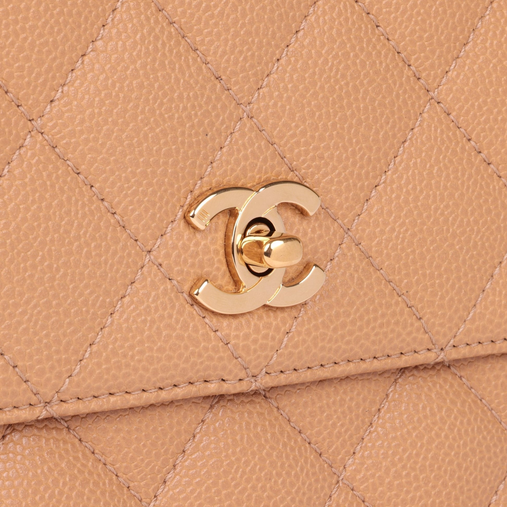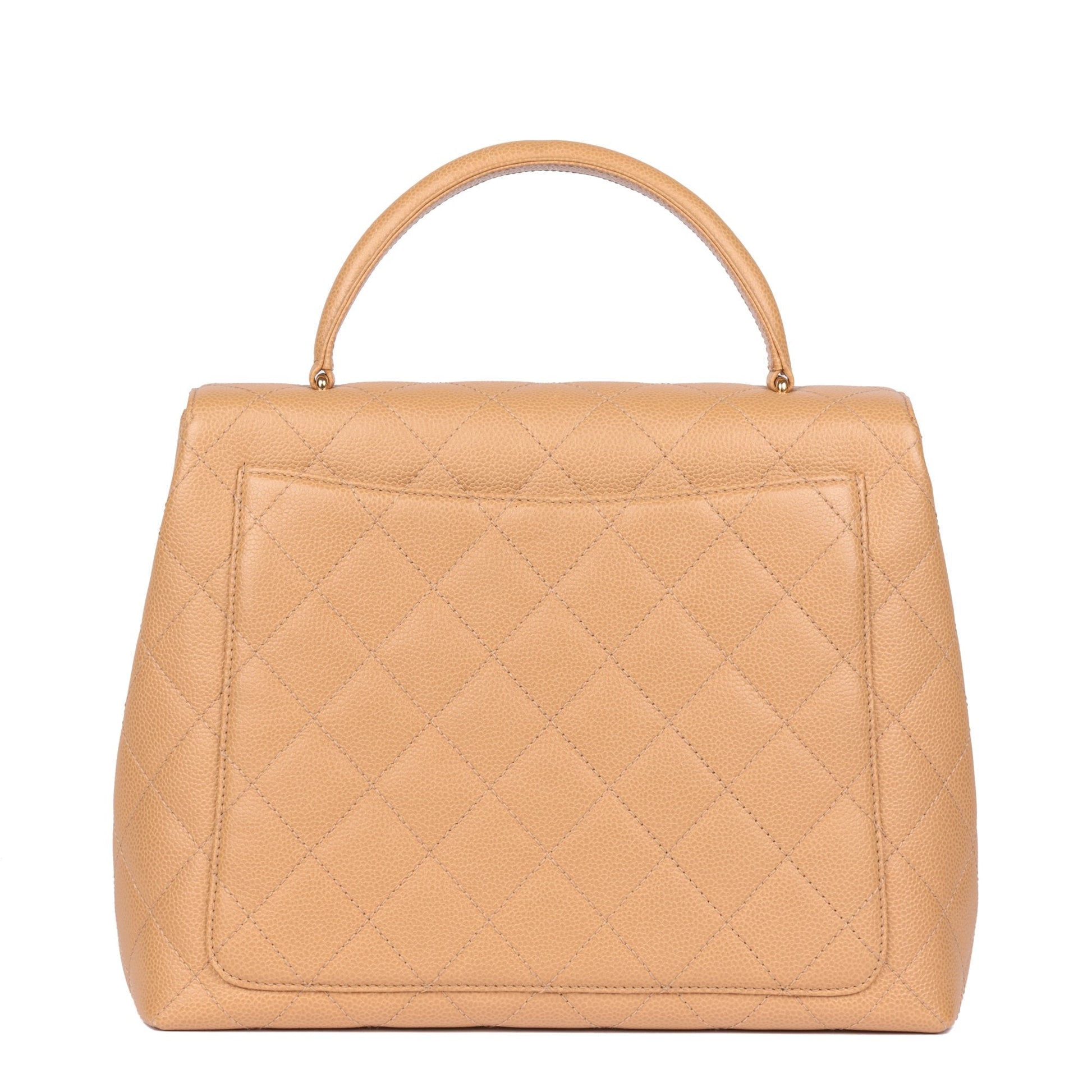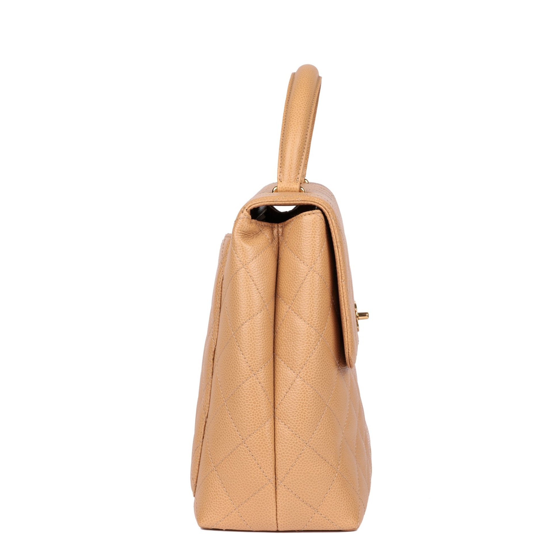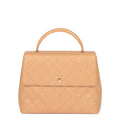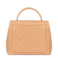 Chanel Beige Quilted Caviar Leather Vintage Classic Kelly Top Handle Bag