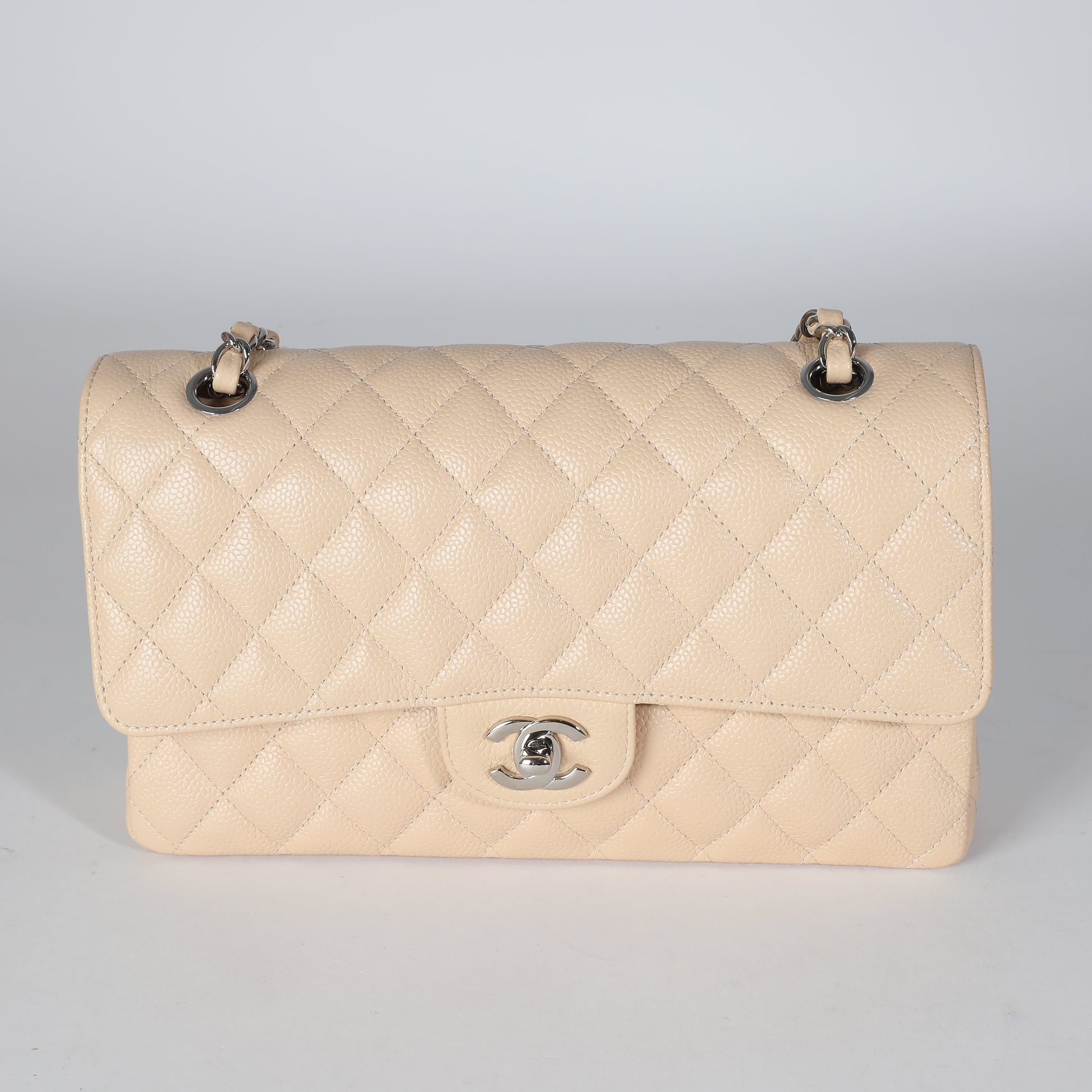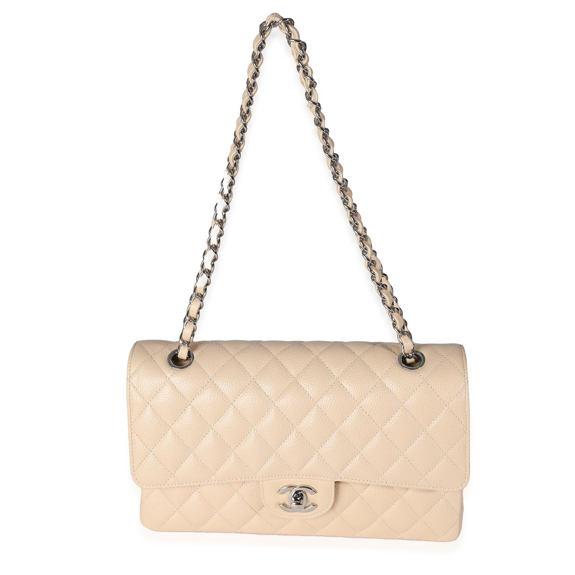 Listing Title: Chanel Beige Quilted Caviar Medium Classic Double Flap Bag