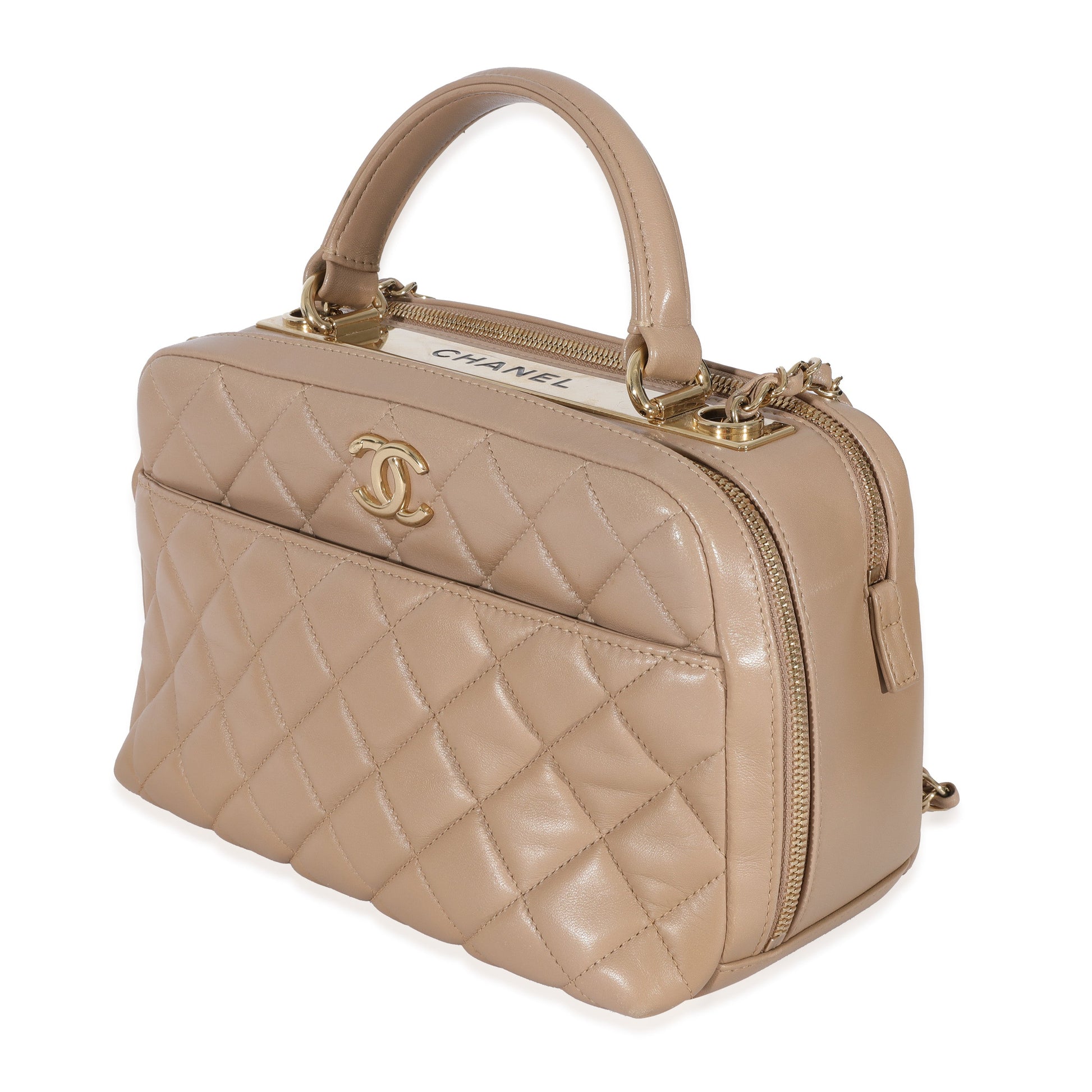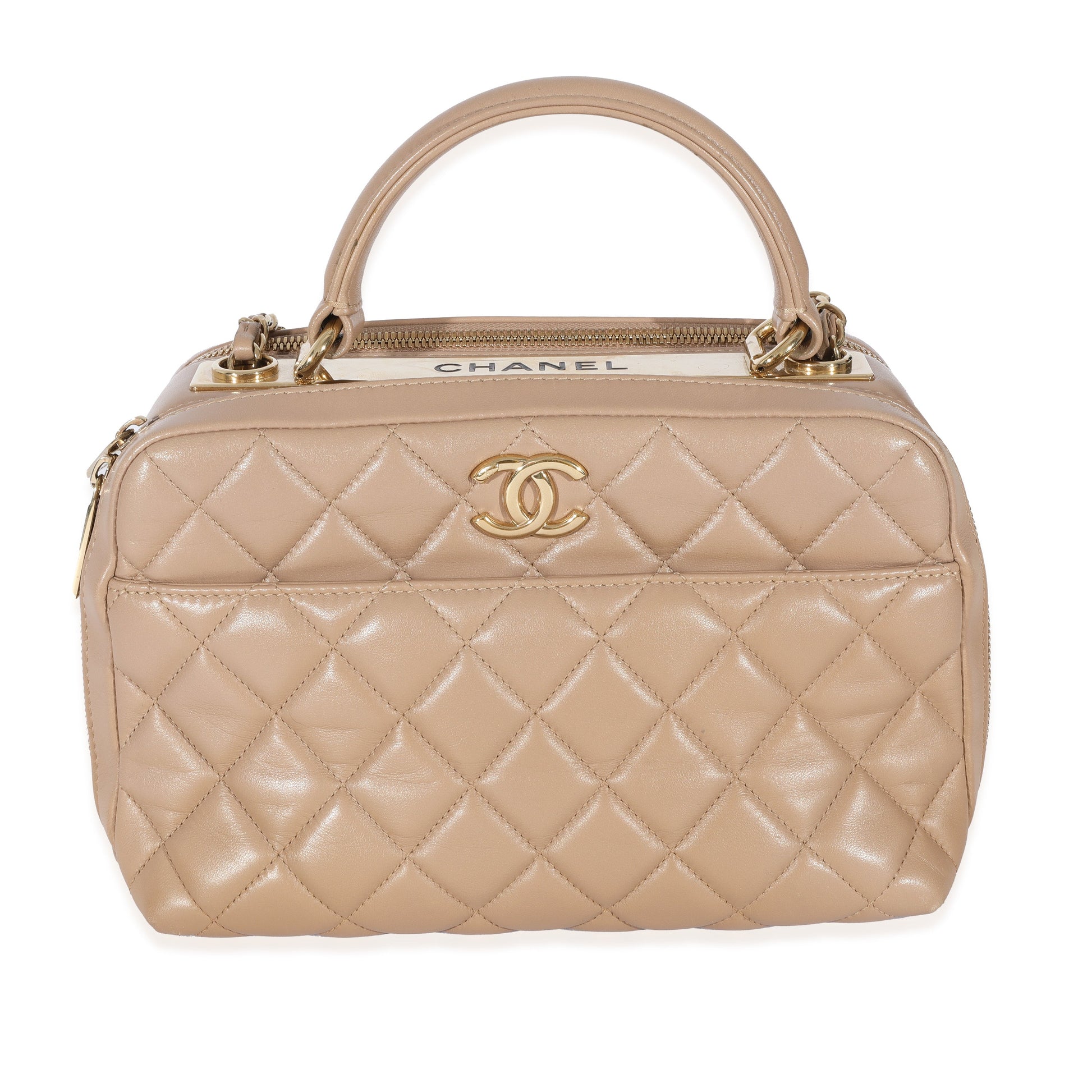 Listing Title: Chanel Beige Quilted Lambskin CC Trendy Bowling Bag