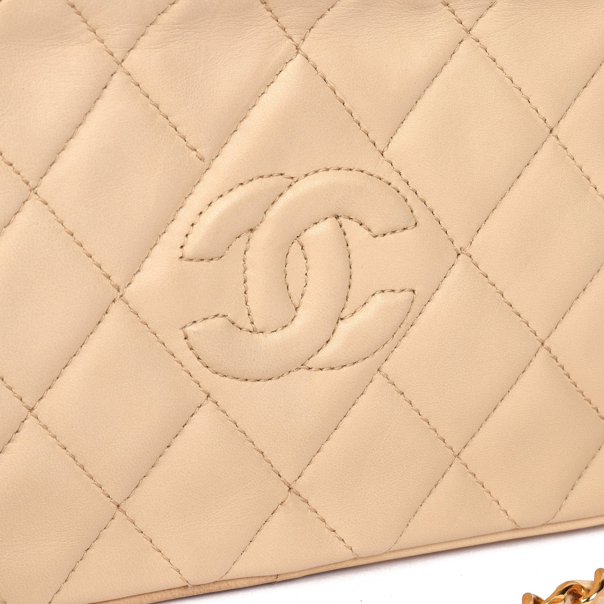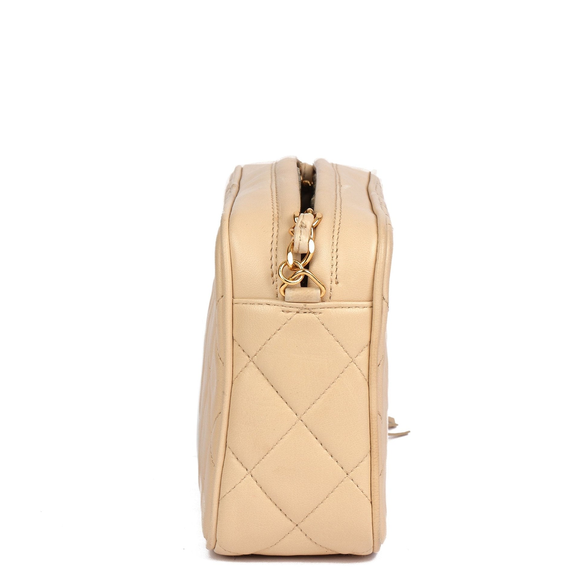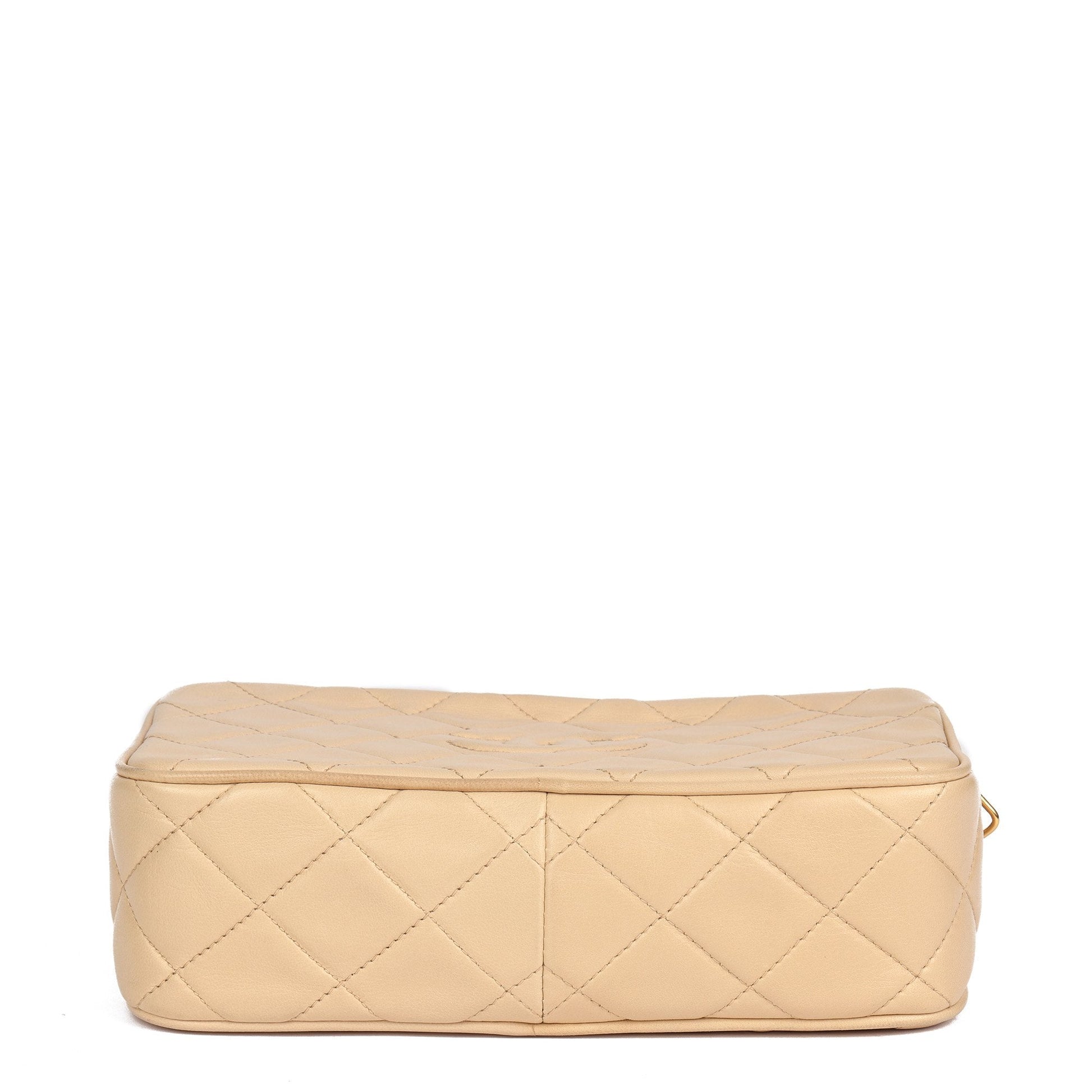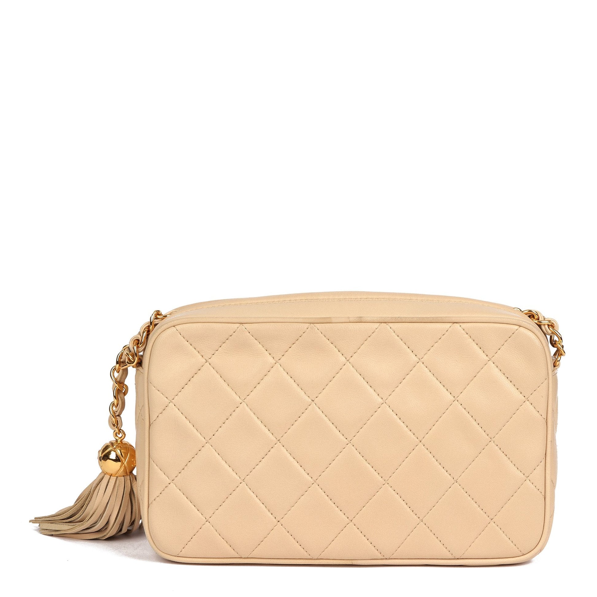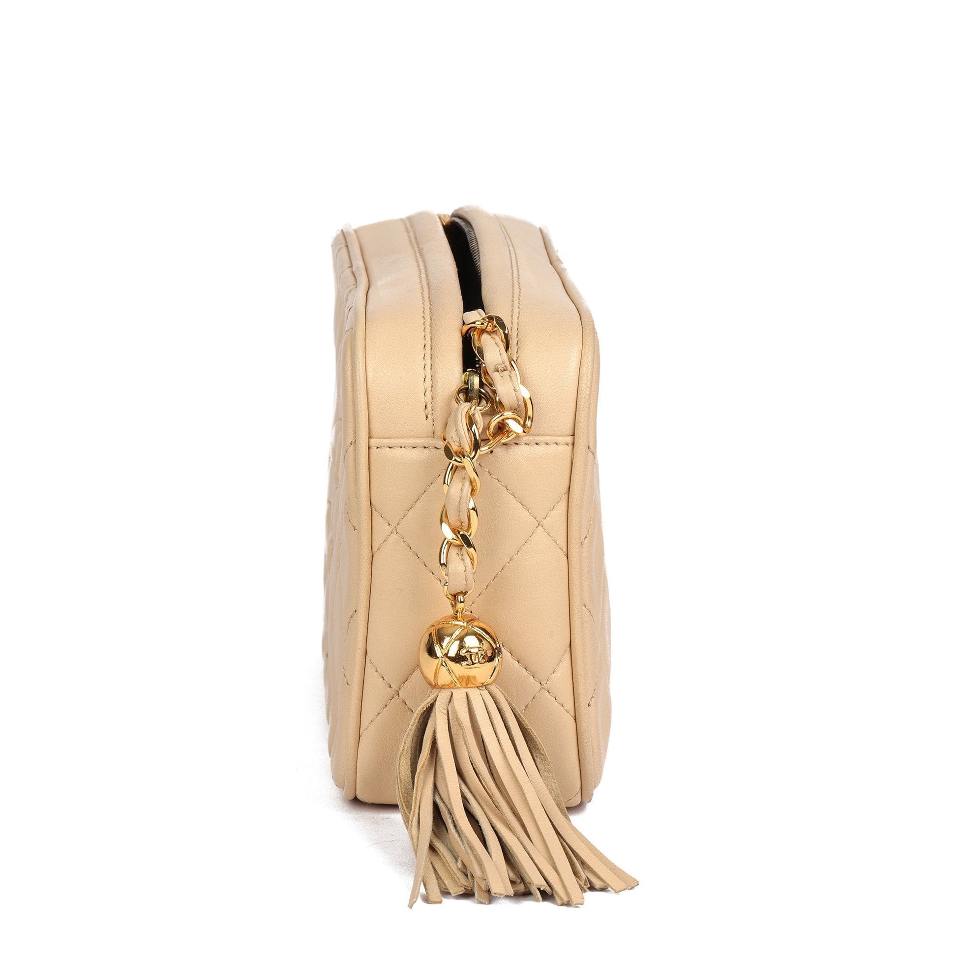 Chanel Beige Quilted Lambskin Vintage Small Fringe Timeless Camera Bag