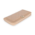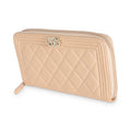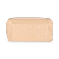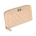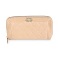 CHANEL Beige Quilted Lambskin Zip Around Boy Wallet