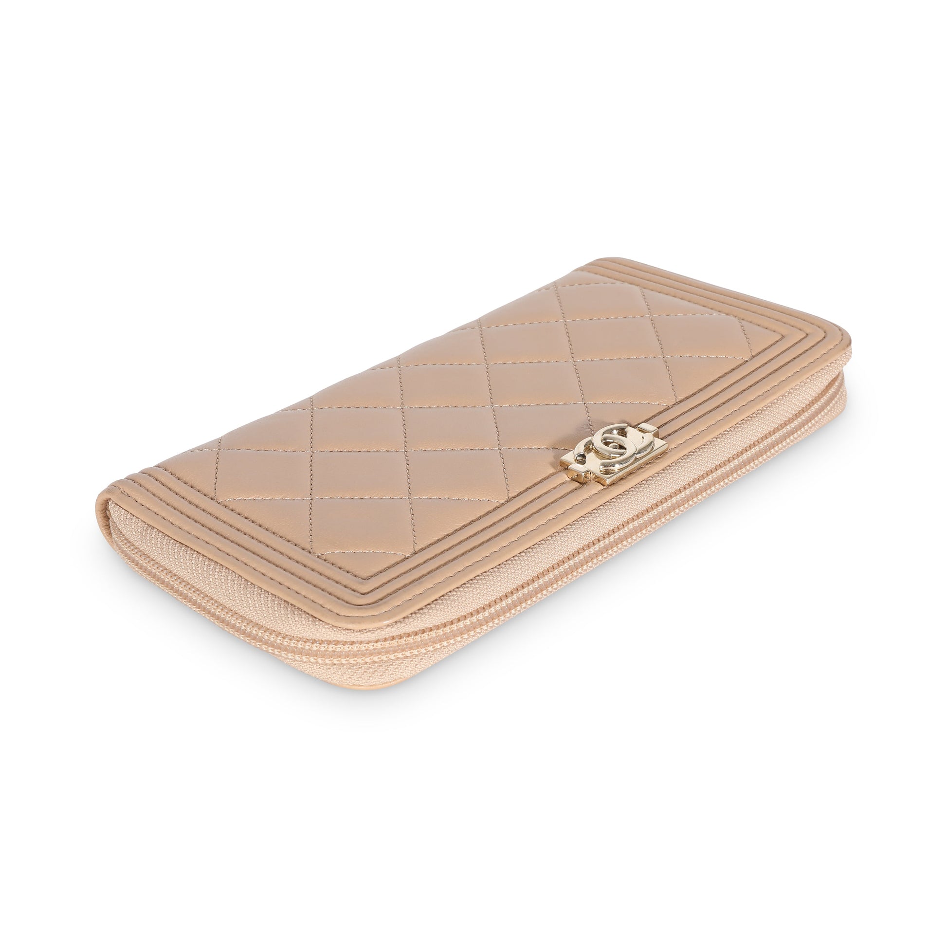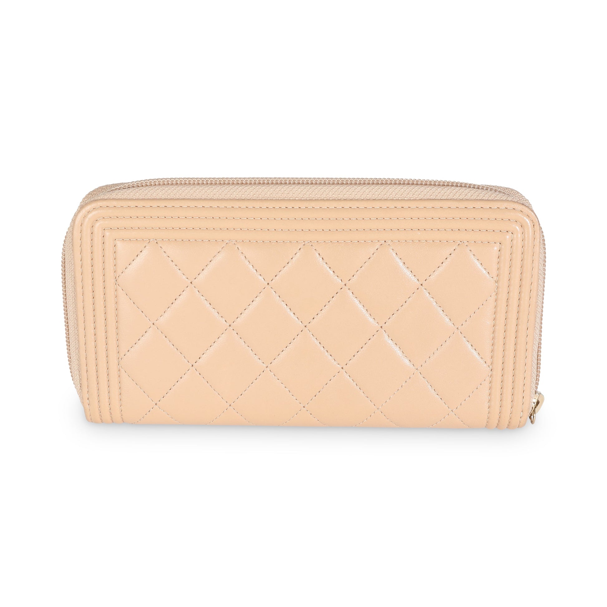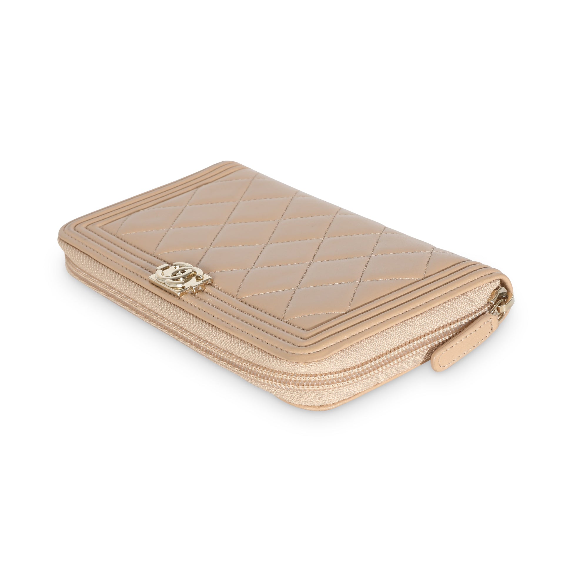 Listing Title: Chanel Beige Quilted Lambskin Zip Around Boy Wallet