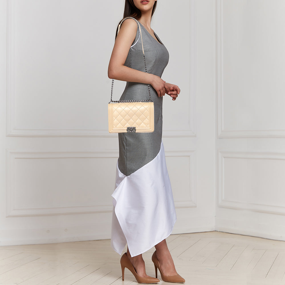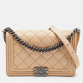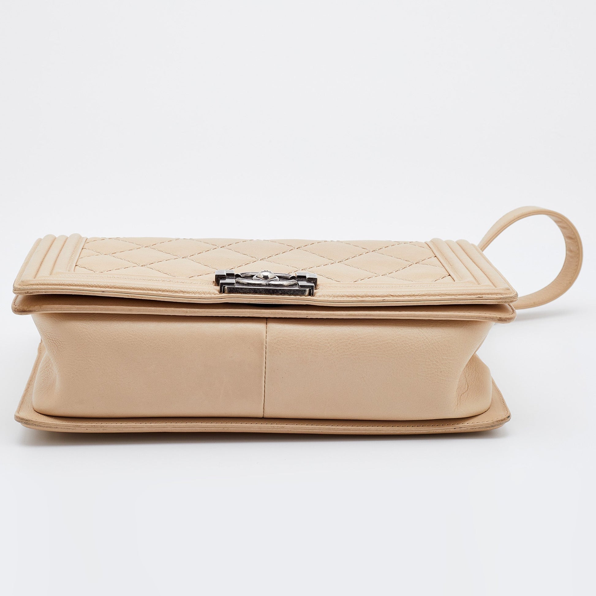 Chanel Beige Quilted Leather New Medium Wild Stitch Boy Bag