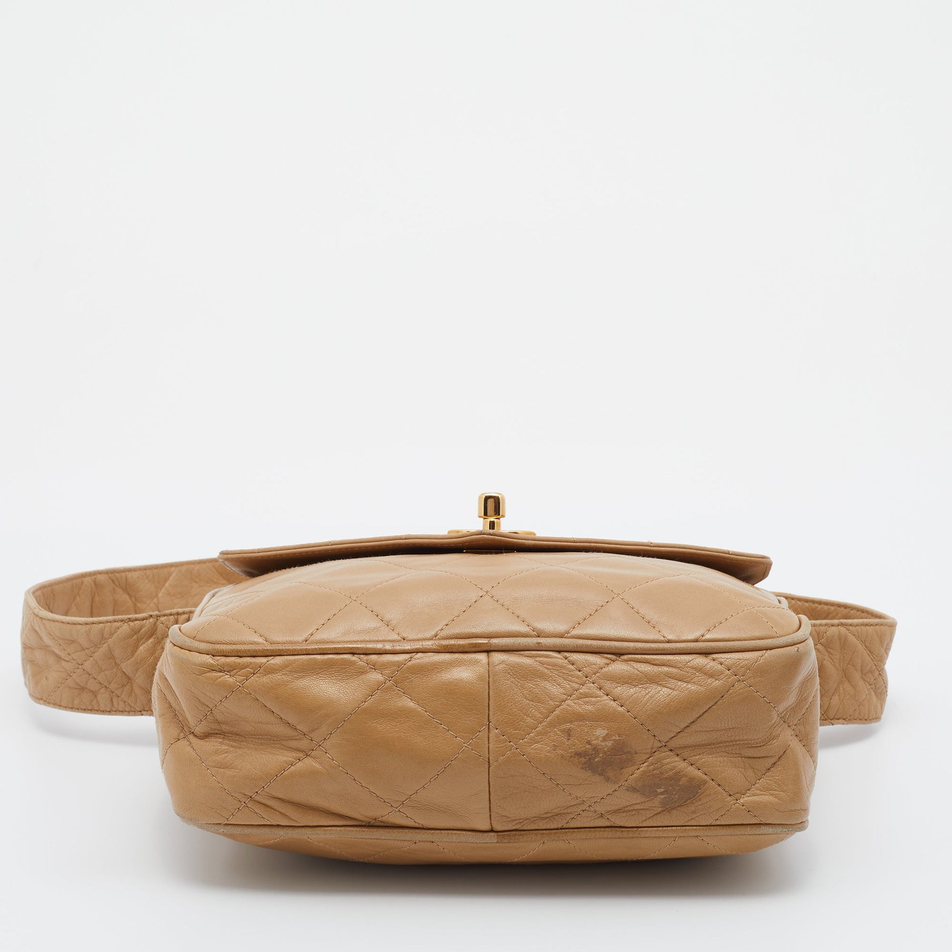 Chanel Beige Quilted Leather Vintage Camera Bag