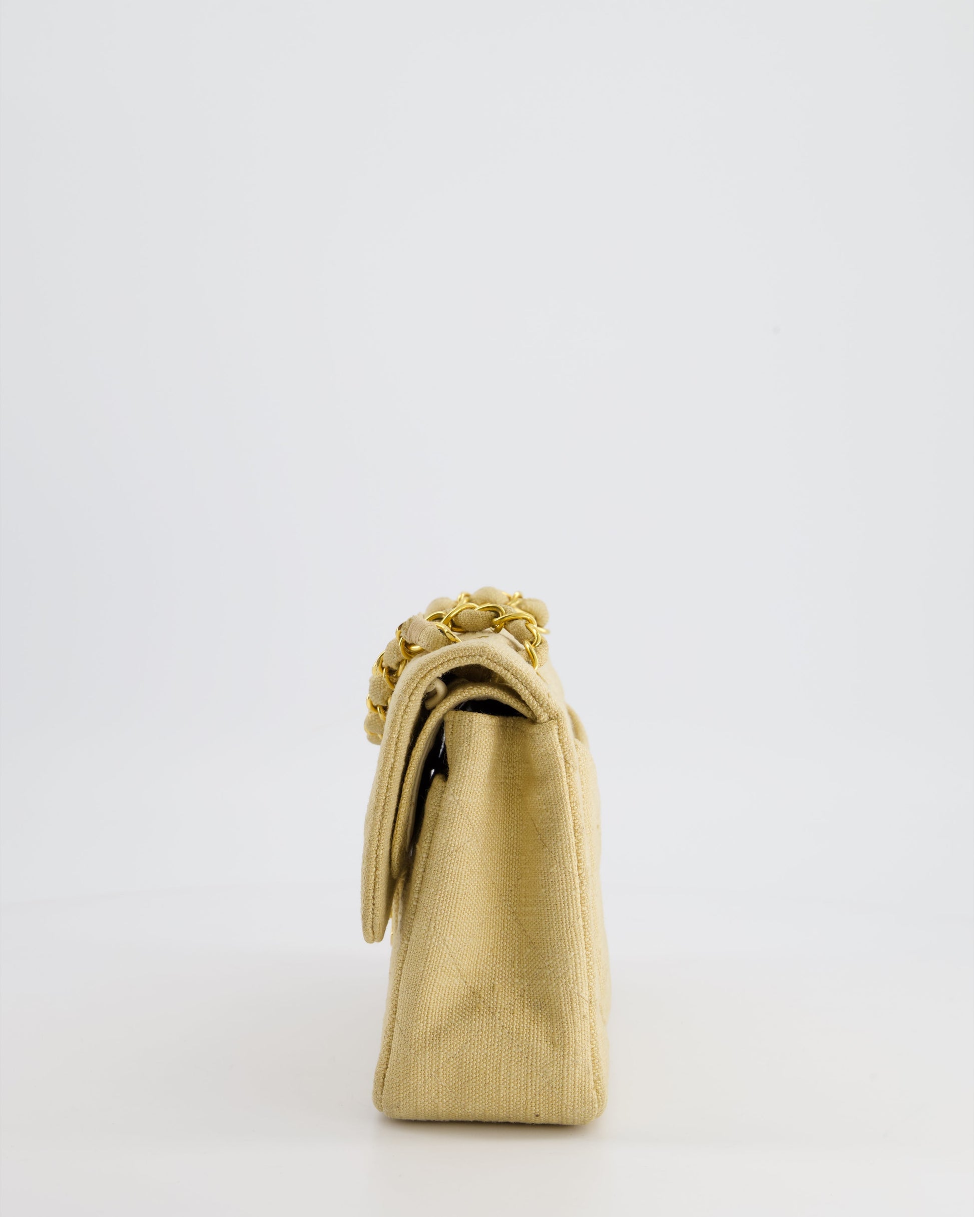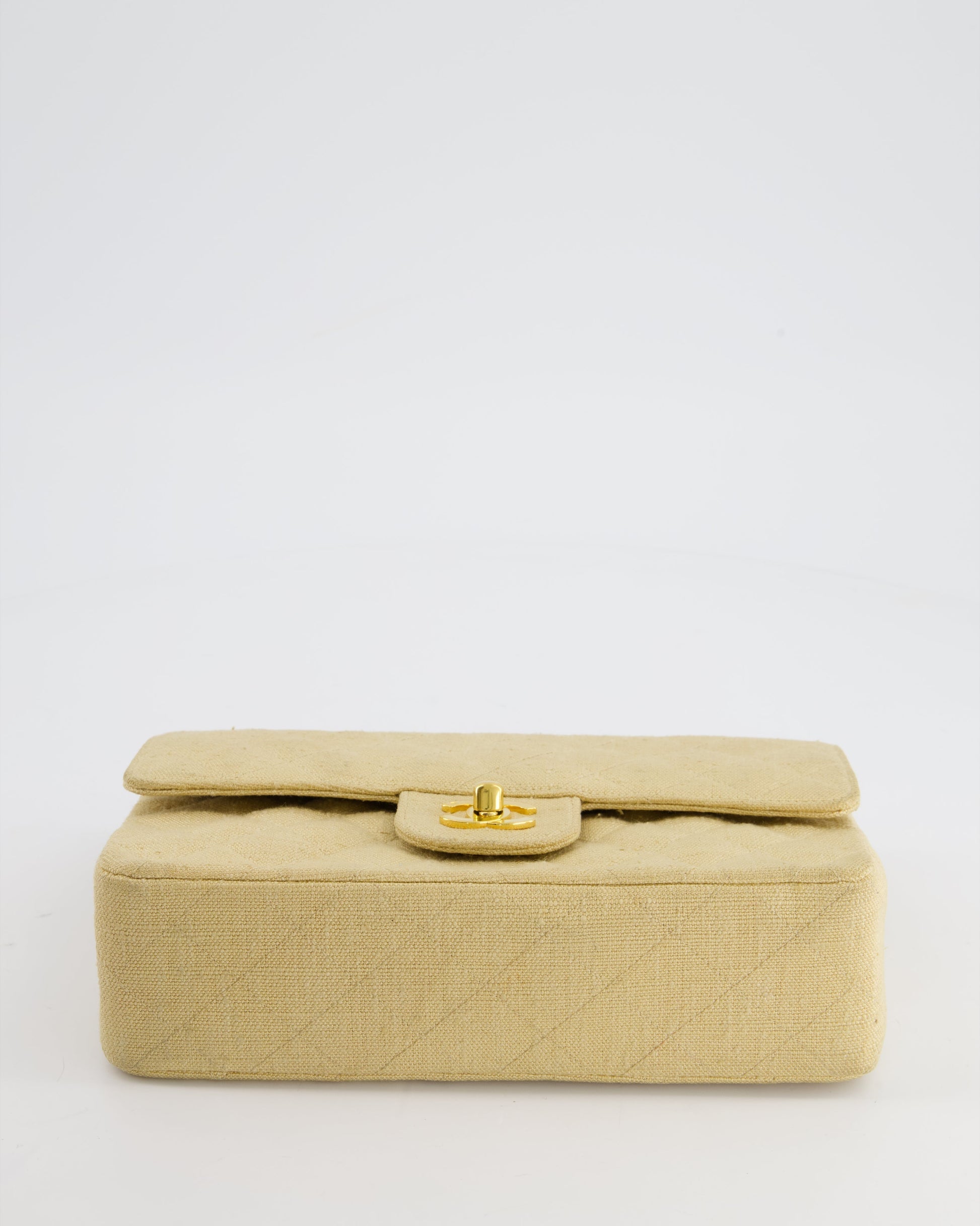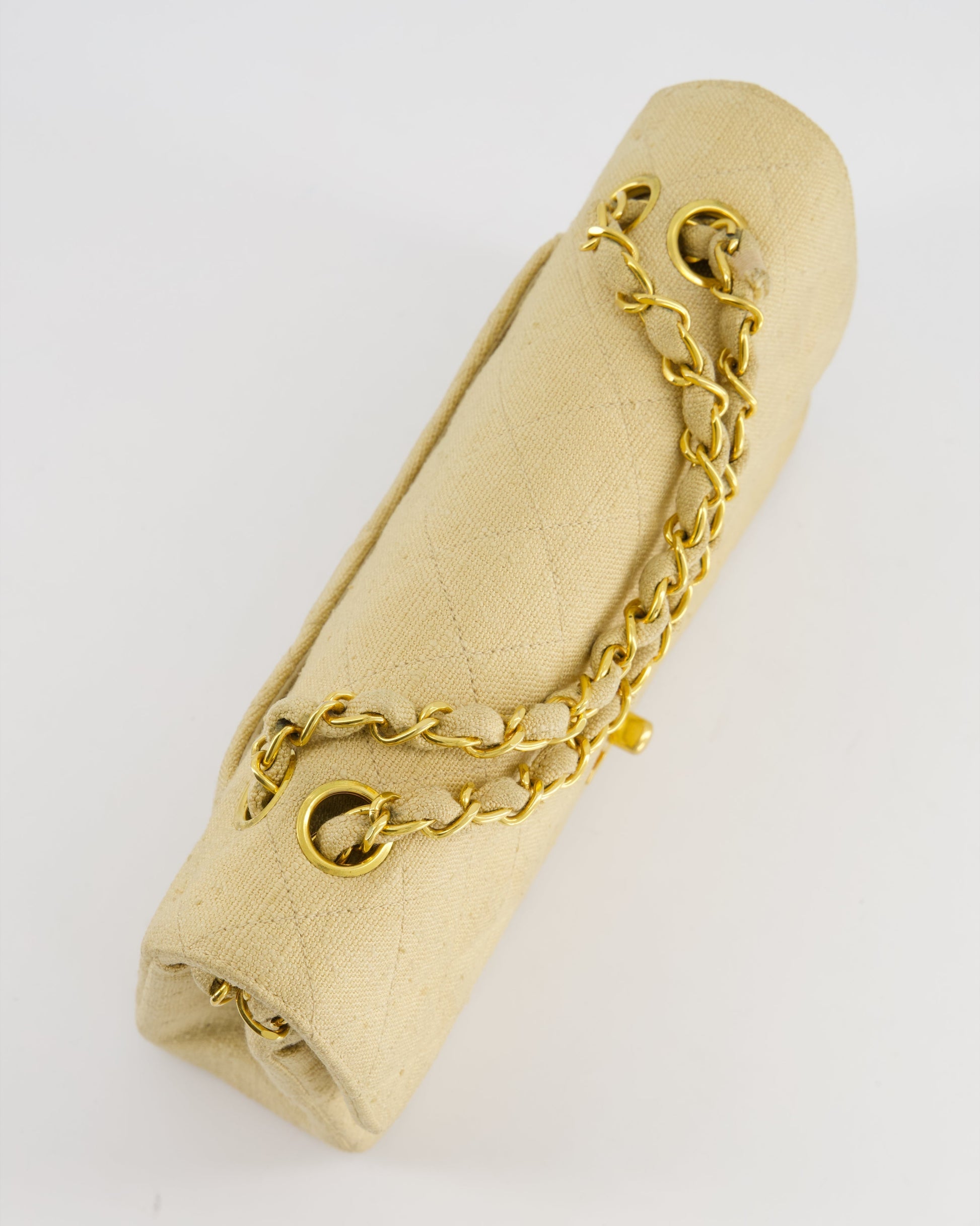 VINTAGE* Chanel Beige Small Fabric Double Flap Bag with 24K Gold Hardware