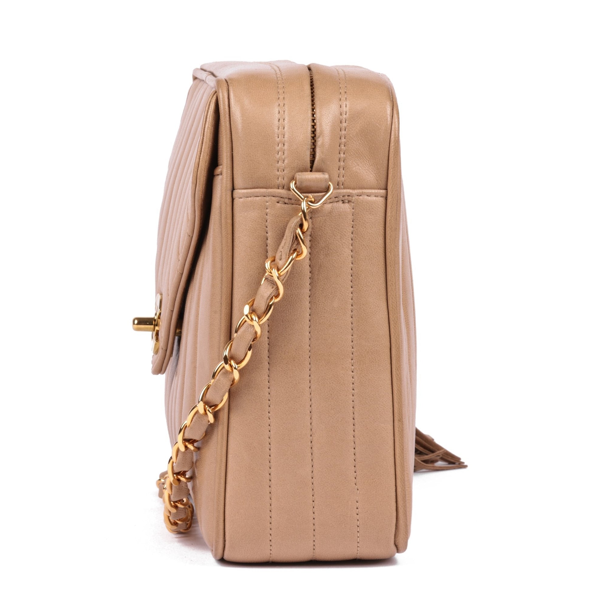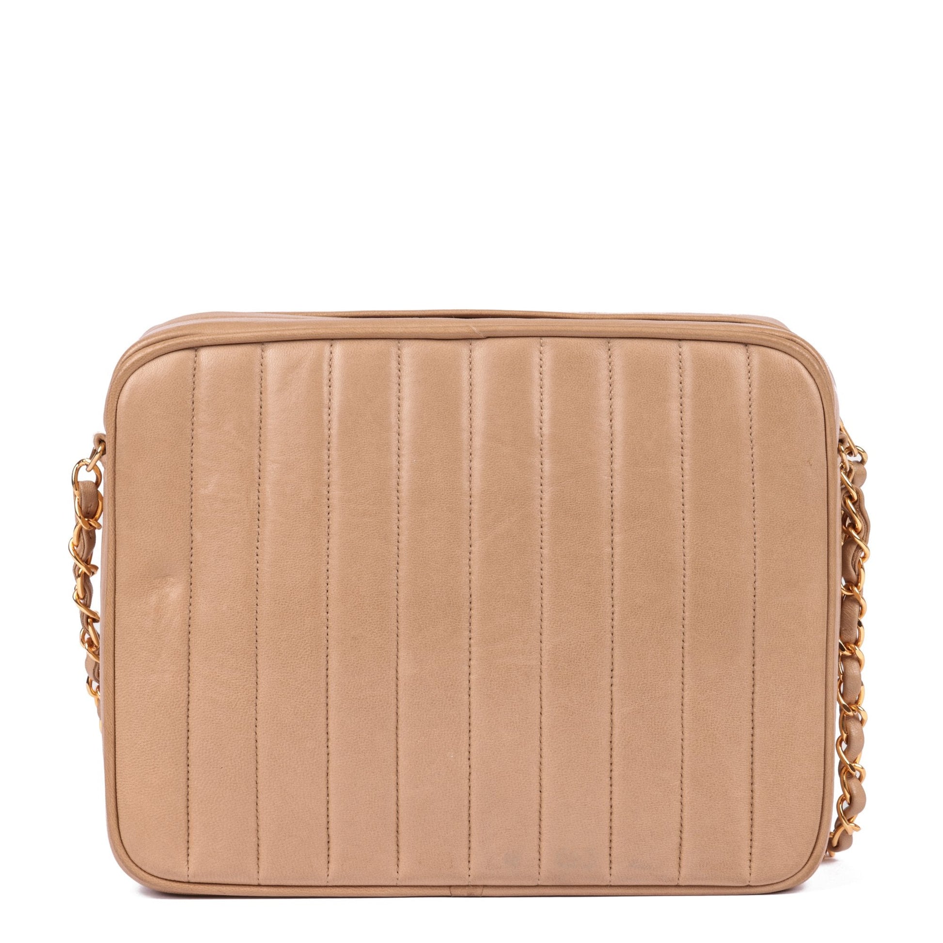 Chanel Beige Vertical Quilted Lambskin Vintage Small Classic Camera Bag