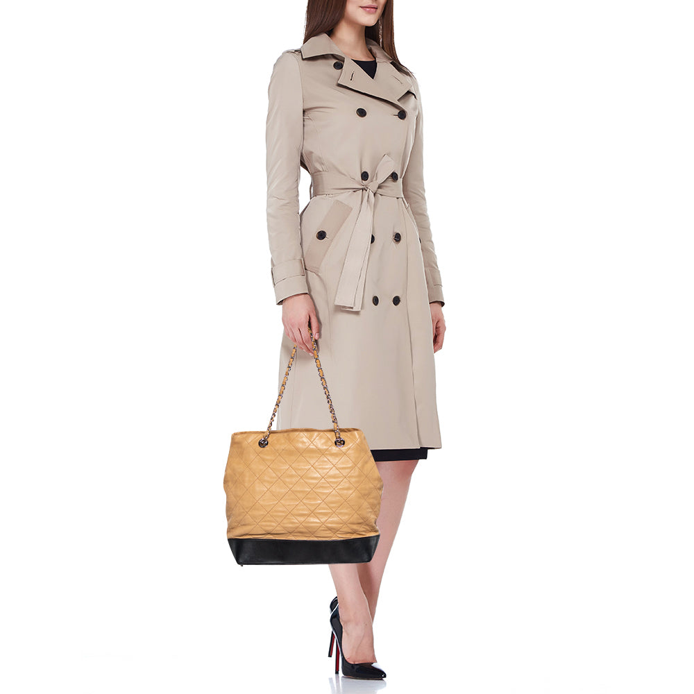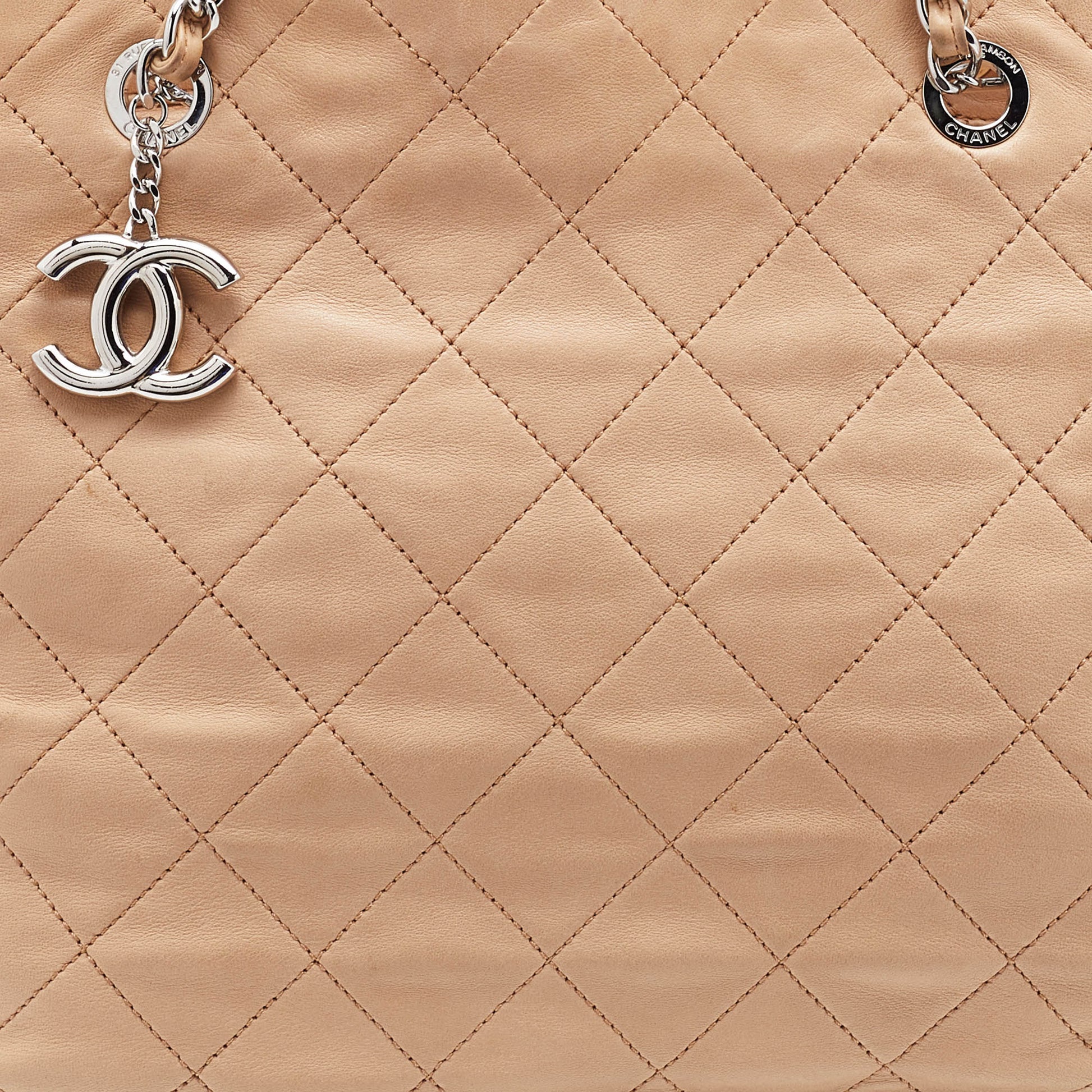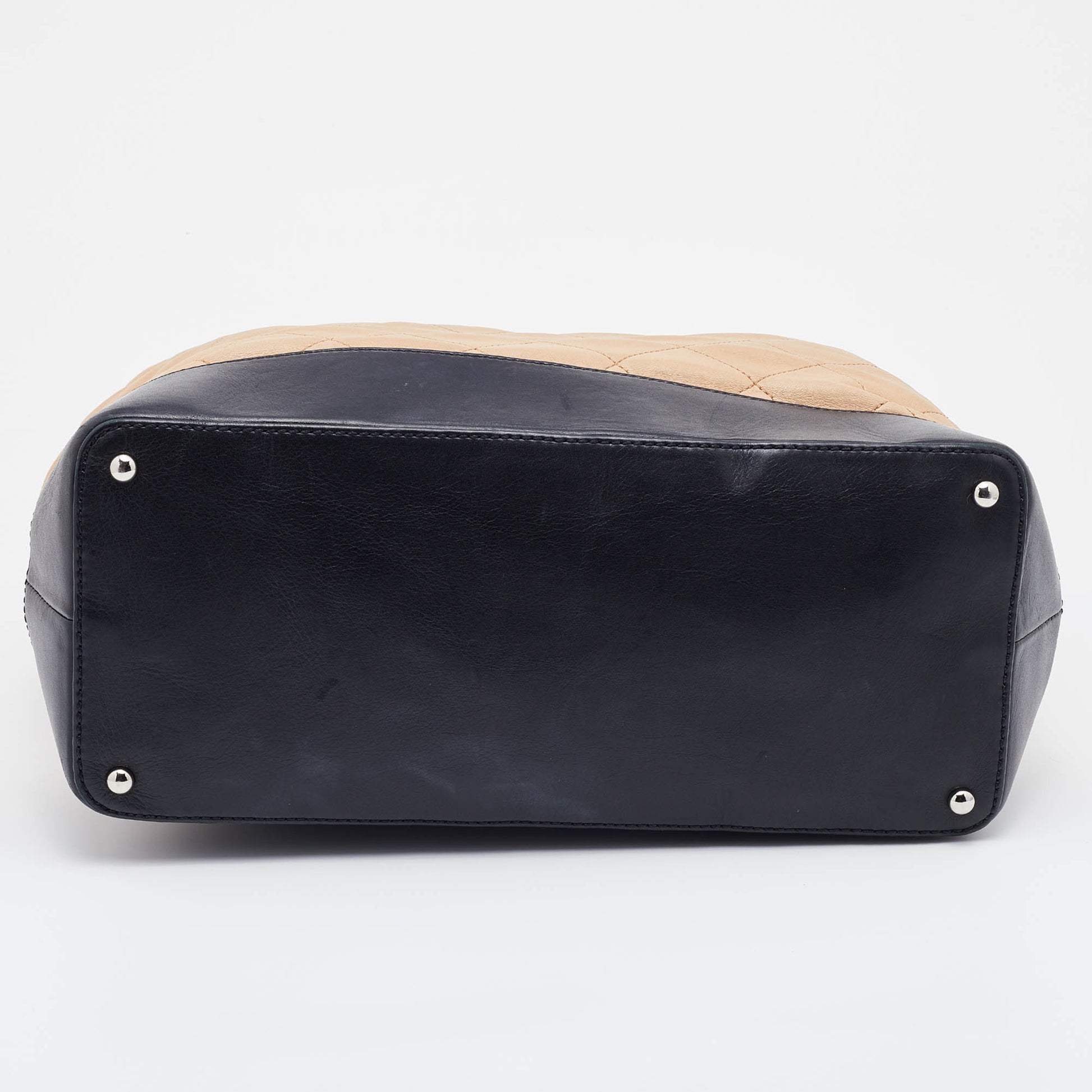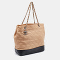 Chanel Beige/Black Quilted Leather CC Chain Link Tote
