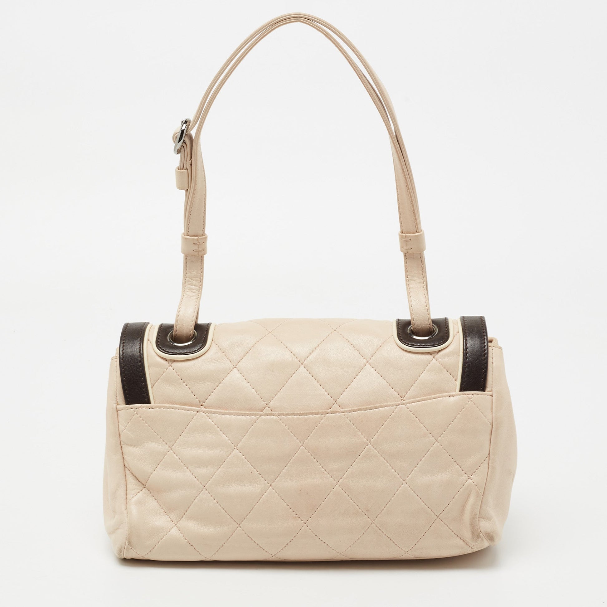 Introduce Chanels irreplaceable style to your closet with this Reissue shoulder bag. Crafted using beige and brown leather the bag has a signature quilted exterior the Mademoiselle lock on the front and a well lined interior. Complete with a shoulder handle this bag will be a luxurious addition.