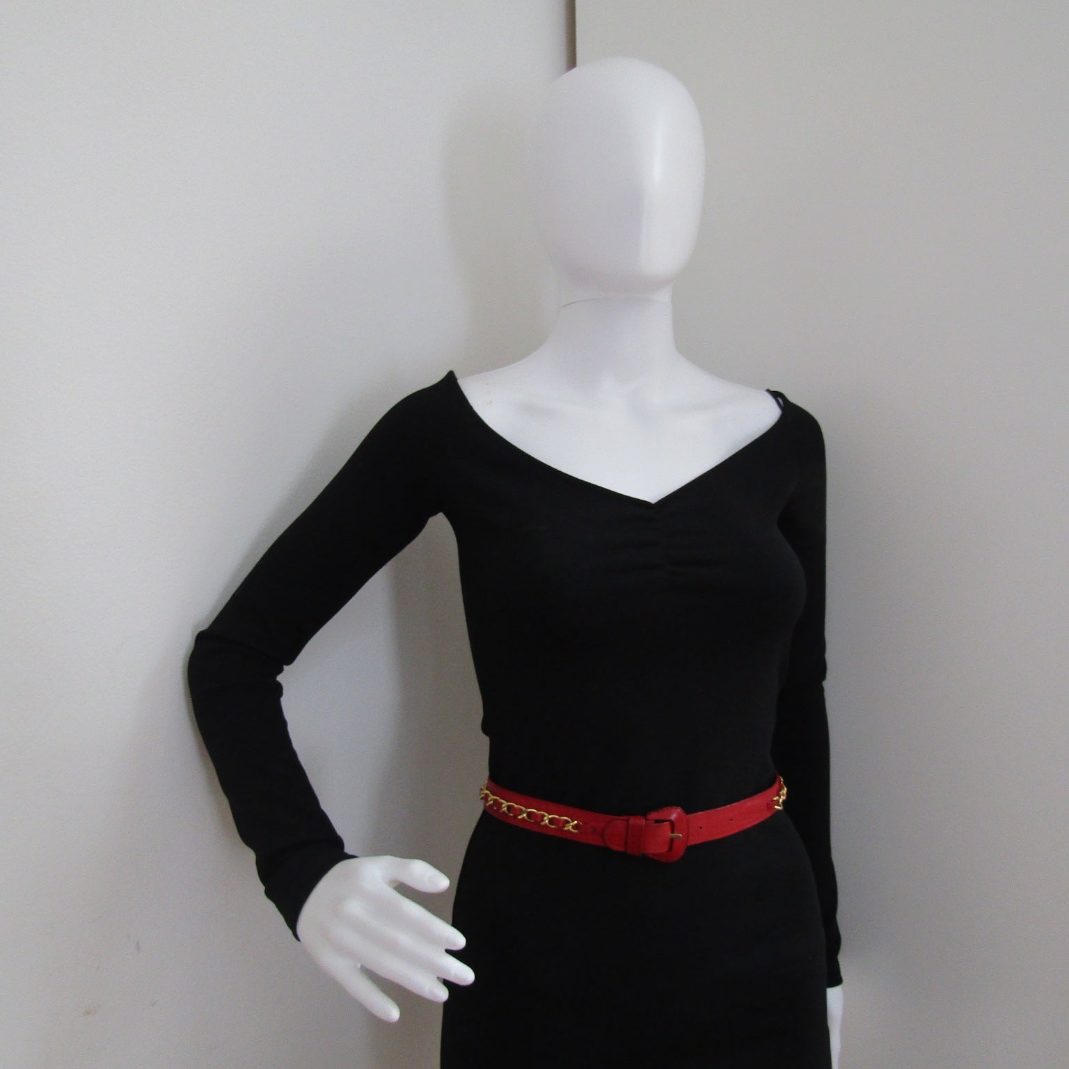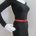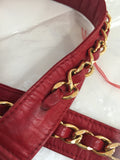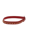 This gorgeous belt is finely crafted of leather in Red, with golden hardware