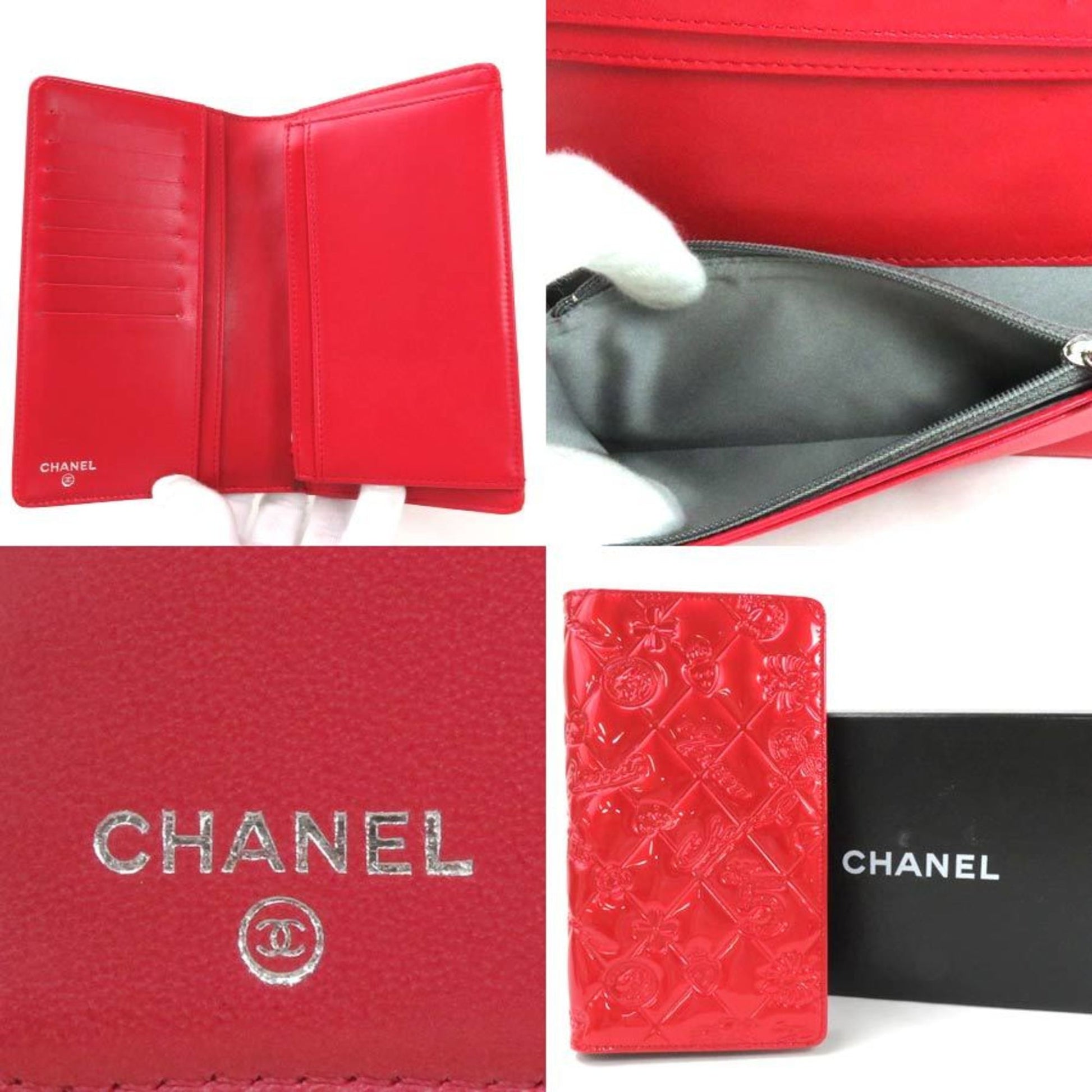 Chanel Bi-Fold Wallet Icon Red Embossed Patent Leather CHANEL Ladies