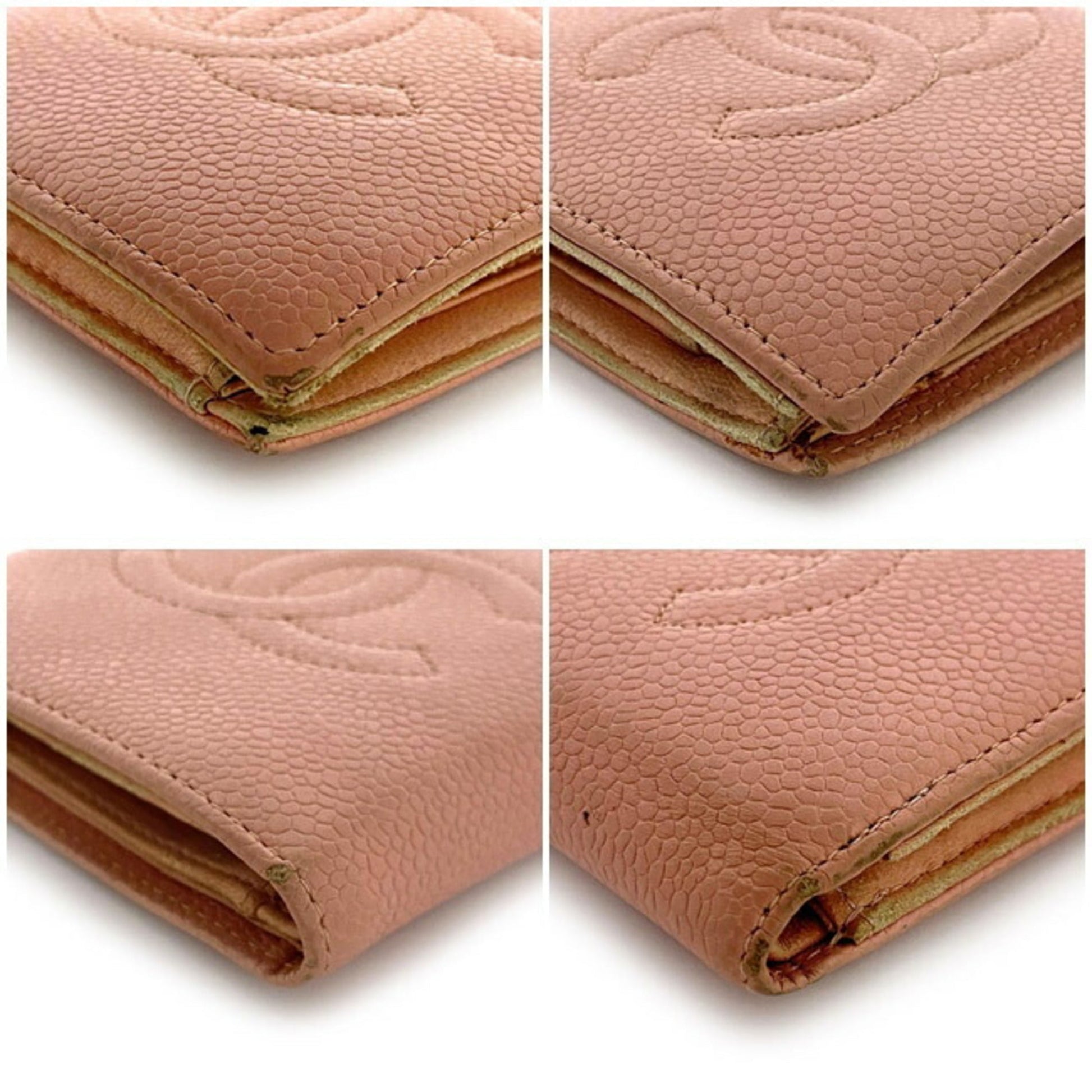 Chanel Bi-Fold Wallet Pink Coco Mark A13507 Leather Caviar Skin 8s CHANEL Ladies Accent