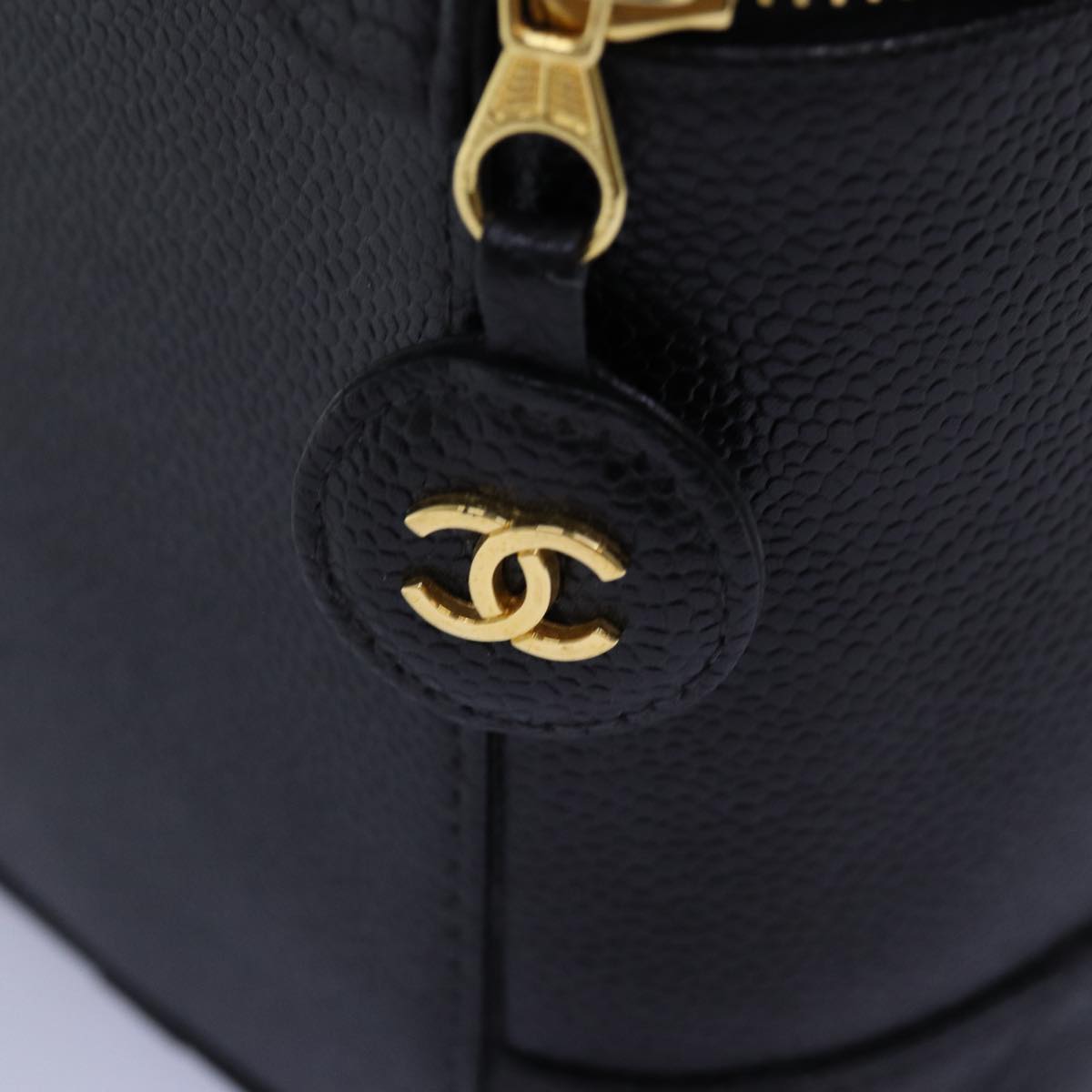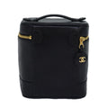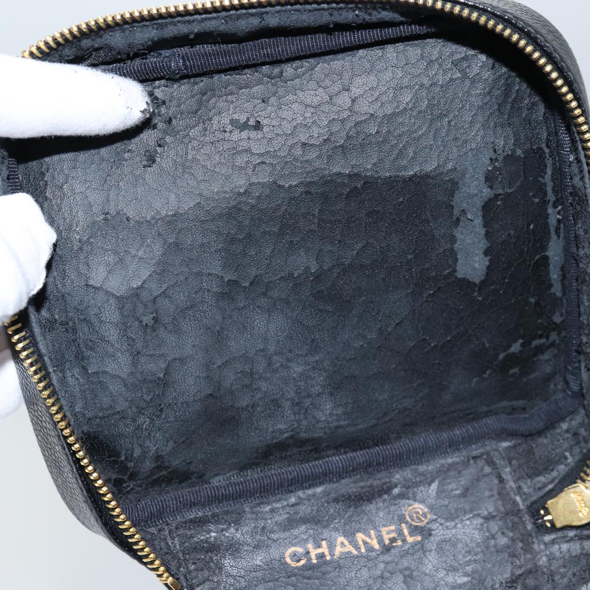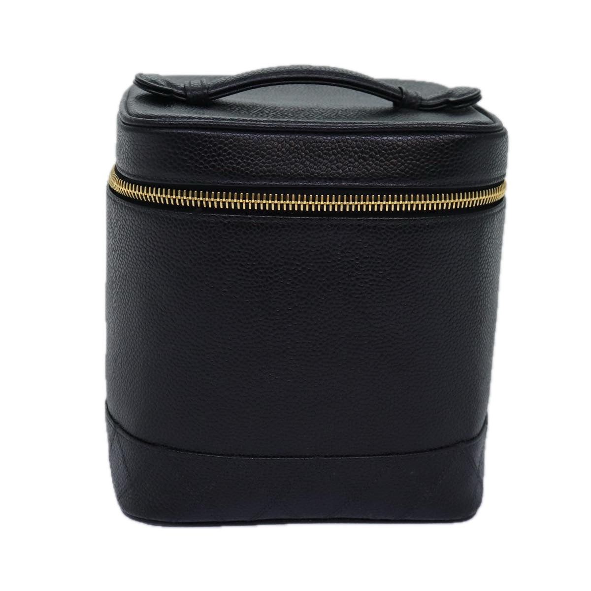 CHANEL Bicolole Vanity Cosmetic Pouch Caviar Skin Black CC Auth yk12738