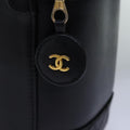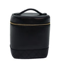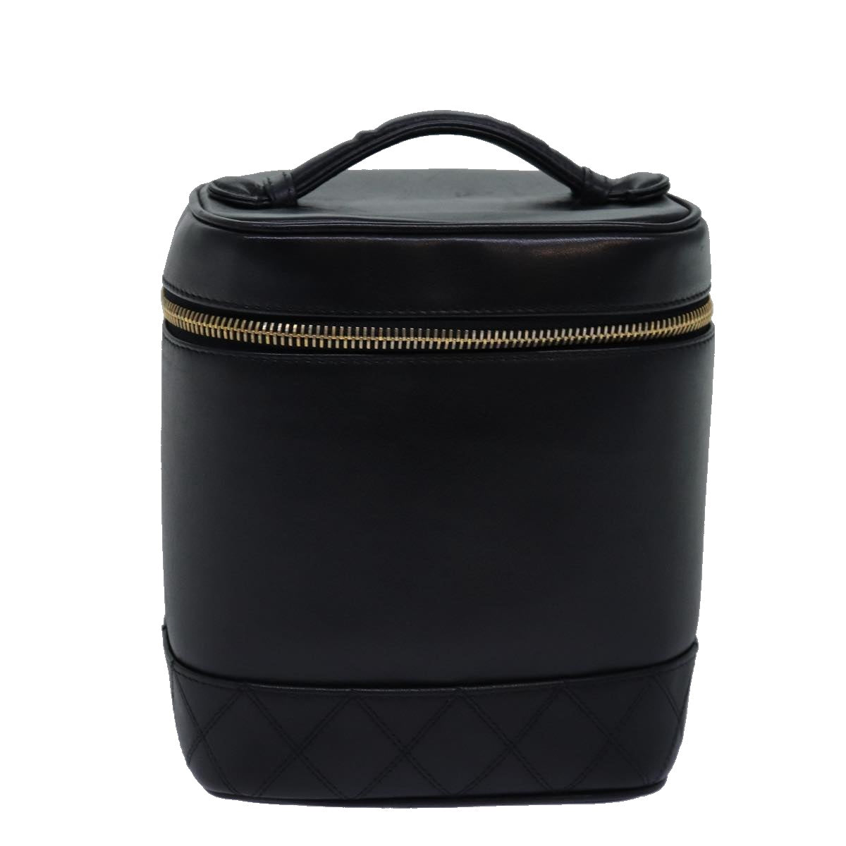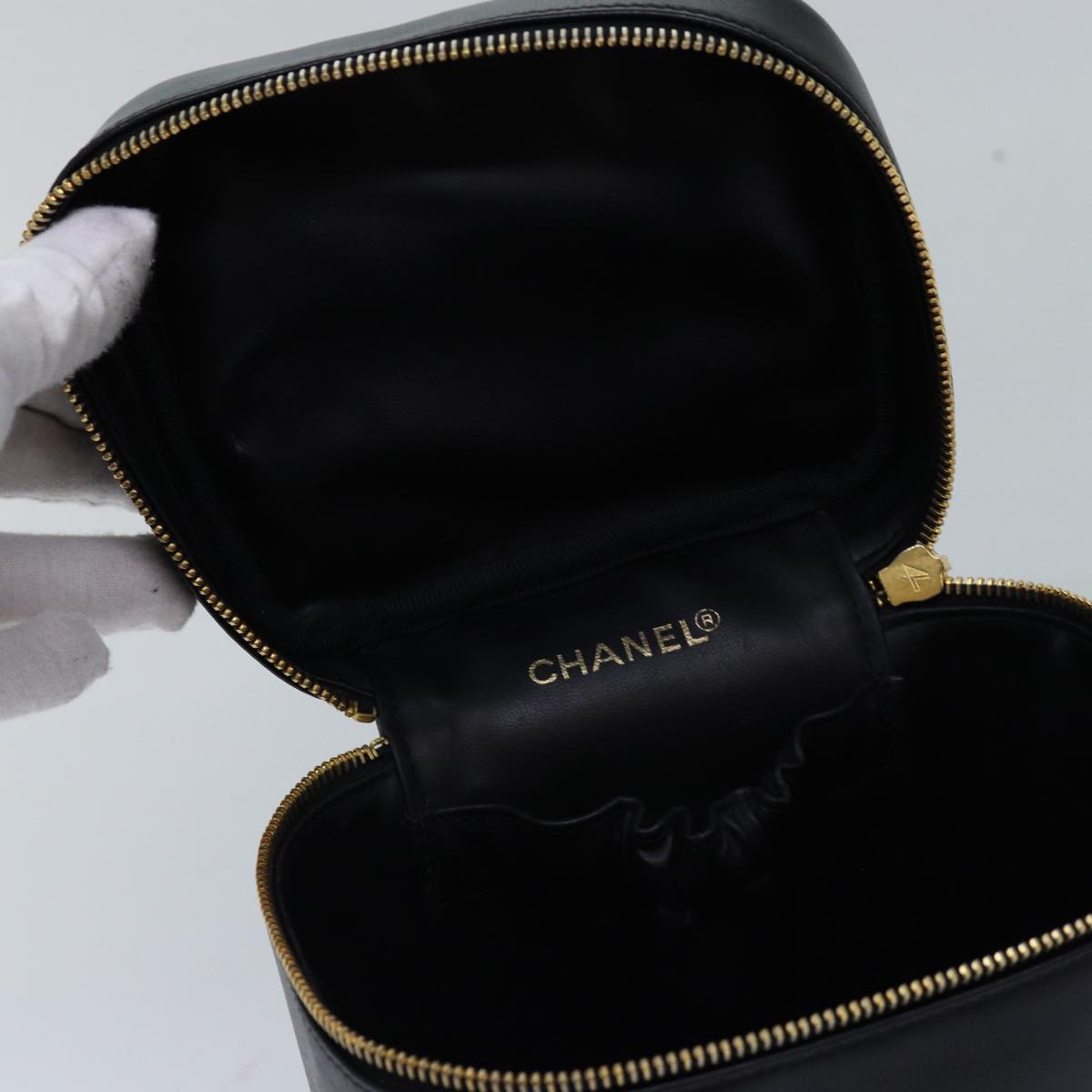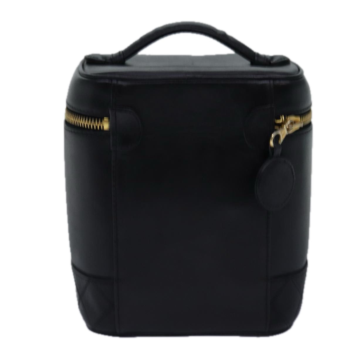 CHANEL Bicolole Vanity Cosmetic Pouch Leather Black CC Auth bs14989