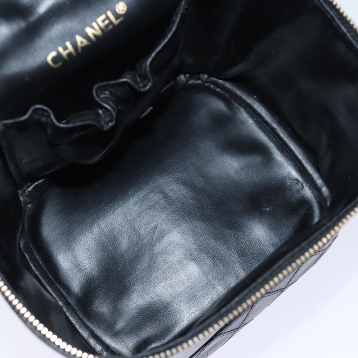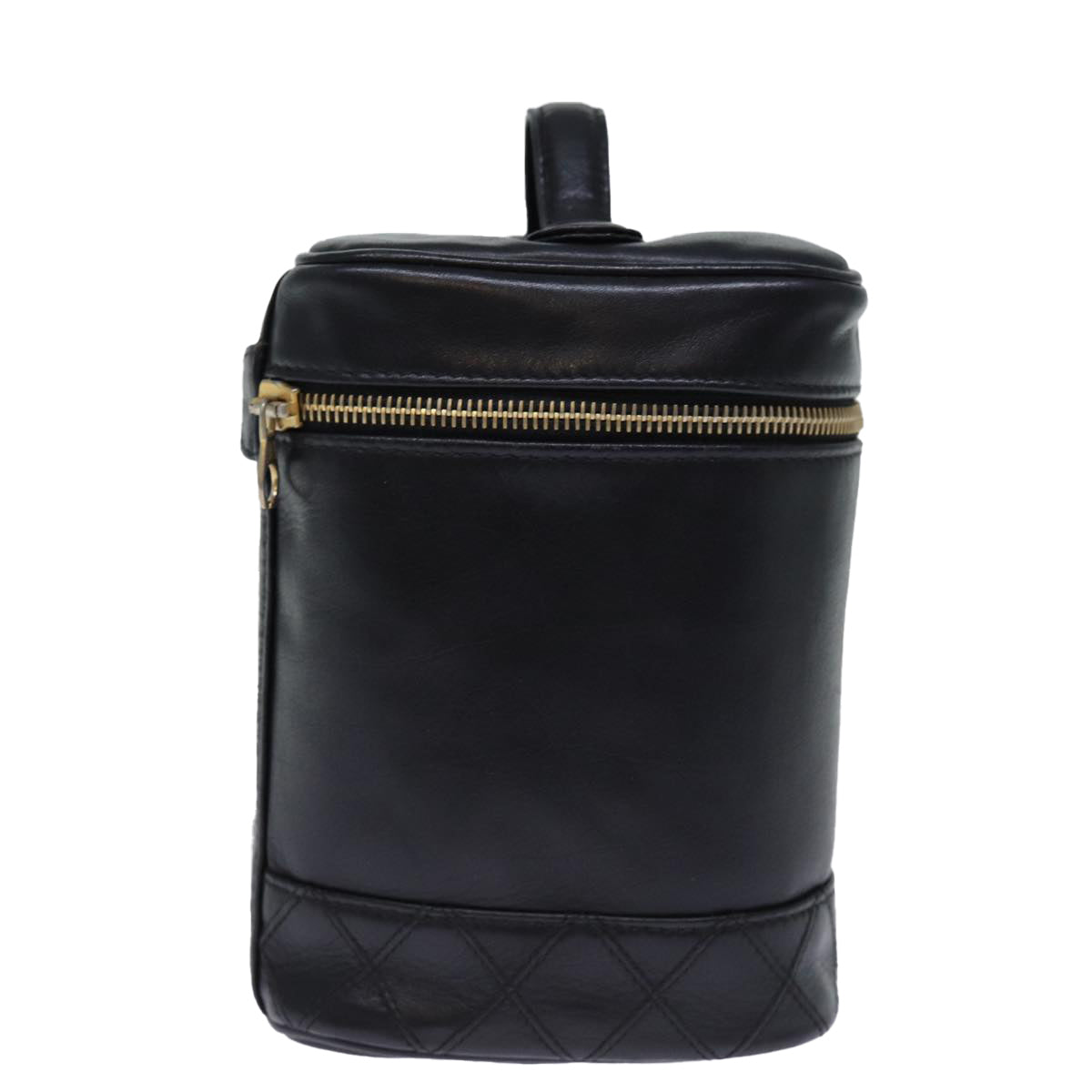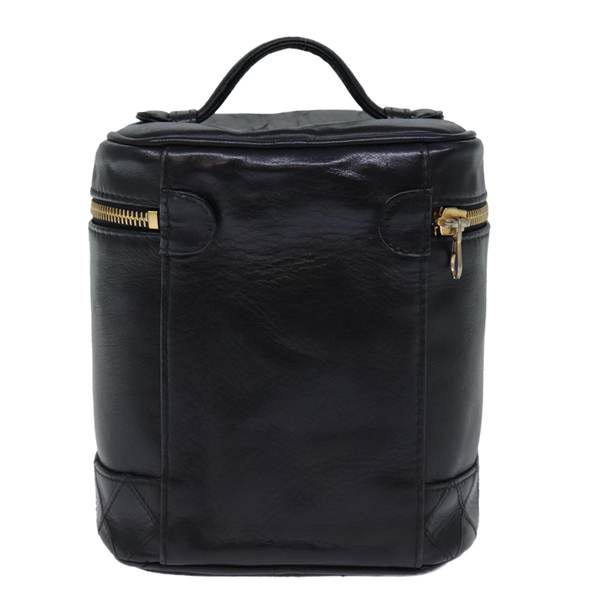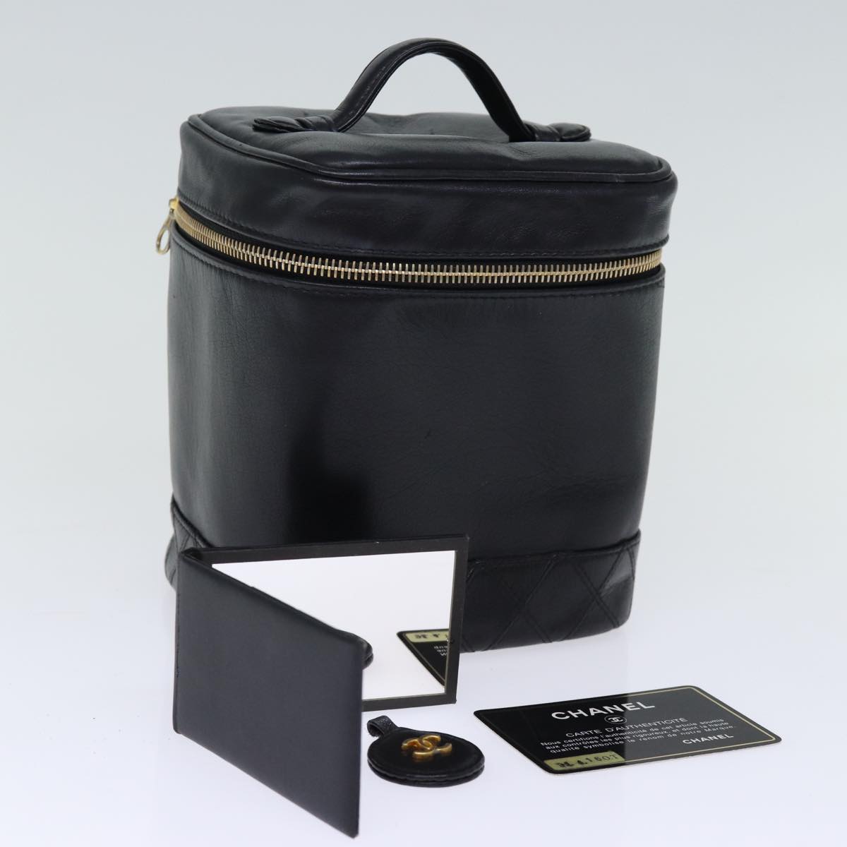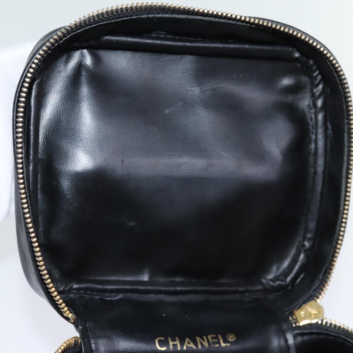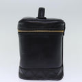 CHANEL Bicolole Vanity Cosmetic Pouch Leather Black CC Auth yk12444