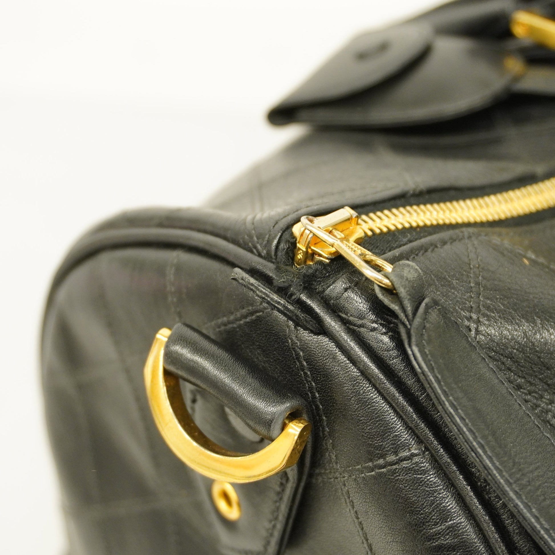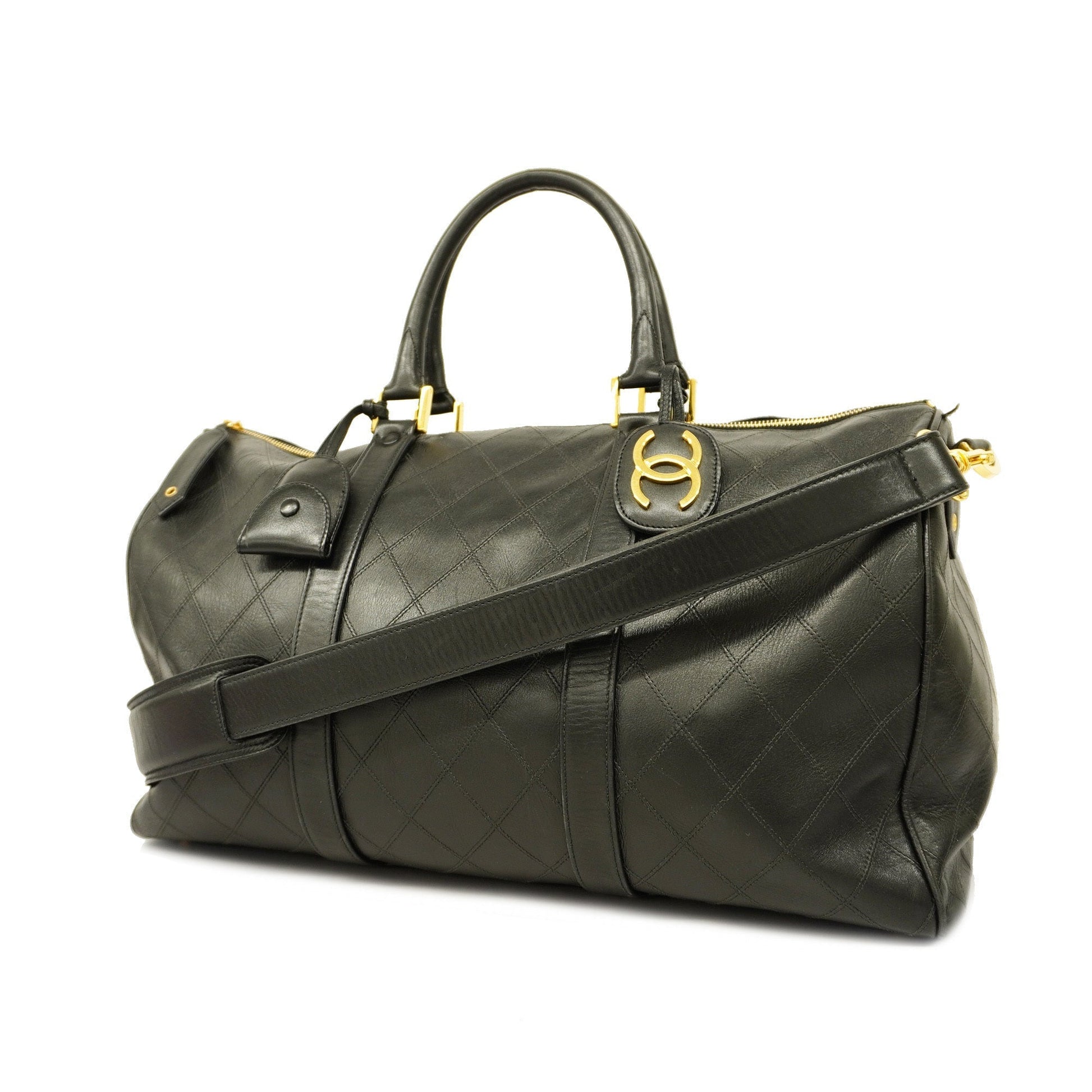CHANEL Bicolor Boston Bag Women,Men,Unisex Leather Boston Bag Black