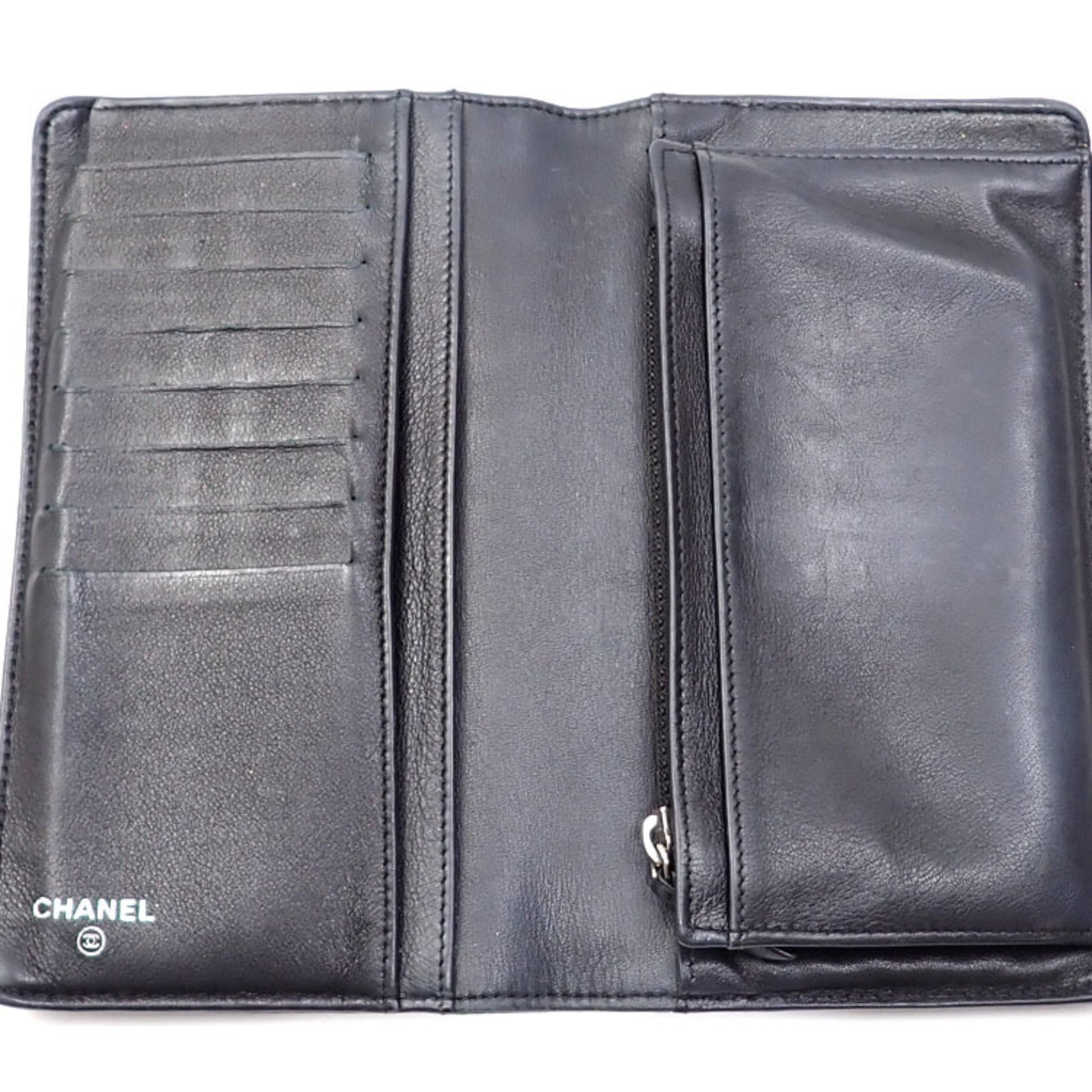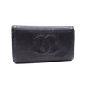 Chanel Bifold Long Wallet Women's Black Caviar Skin Coco Mark