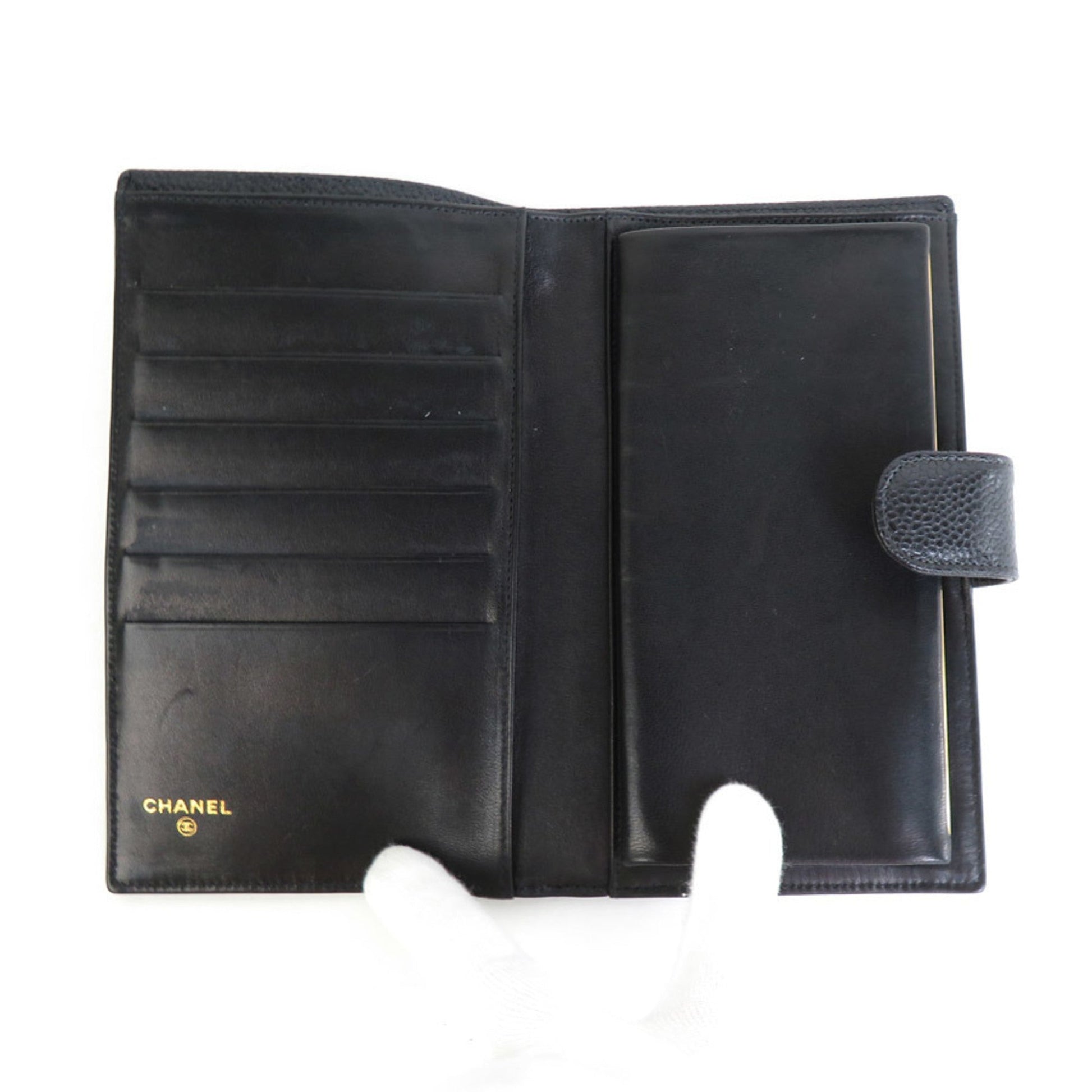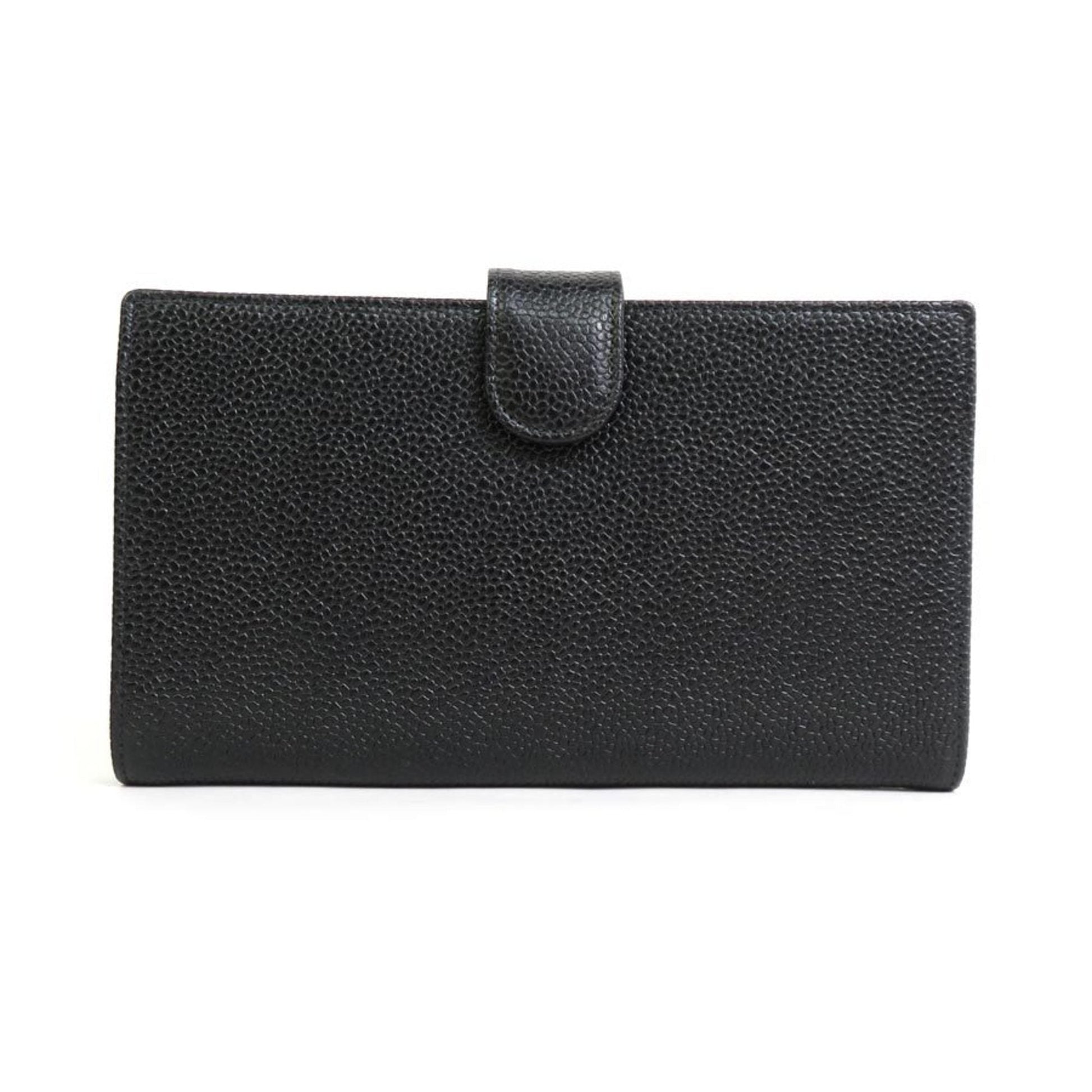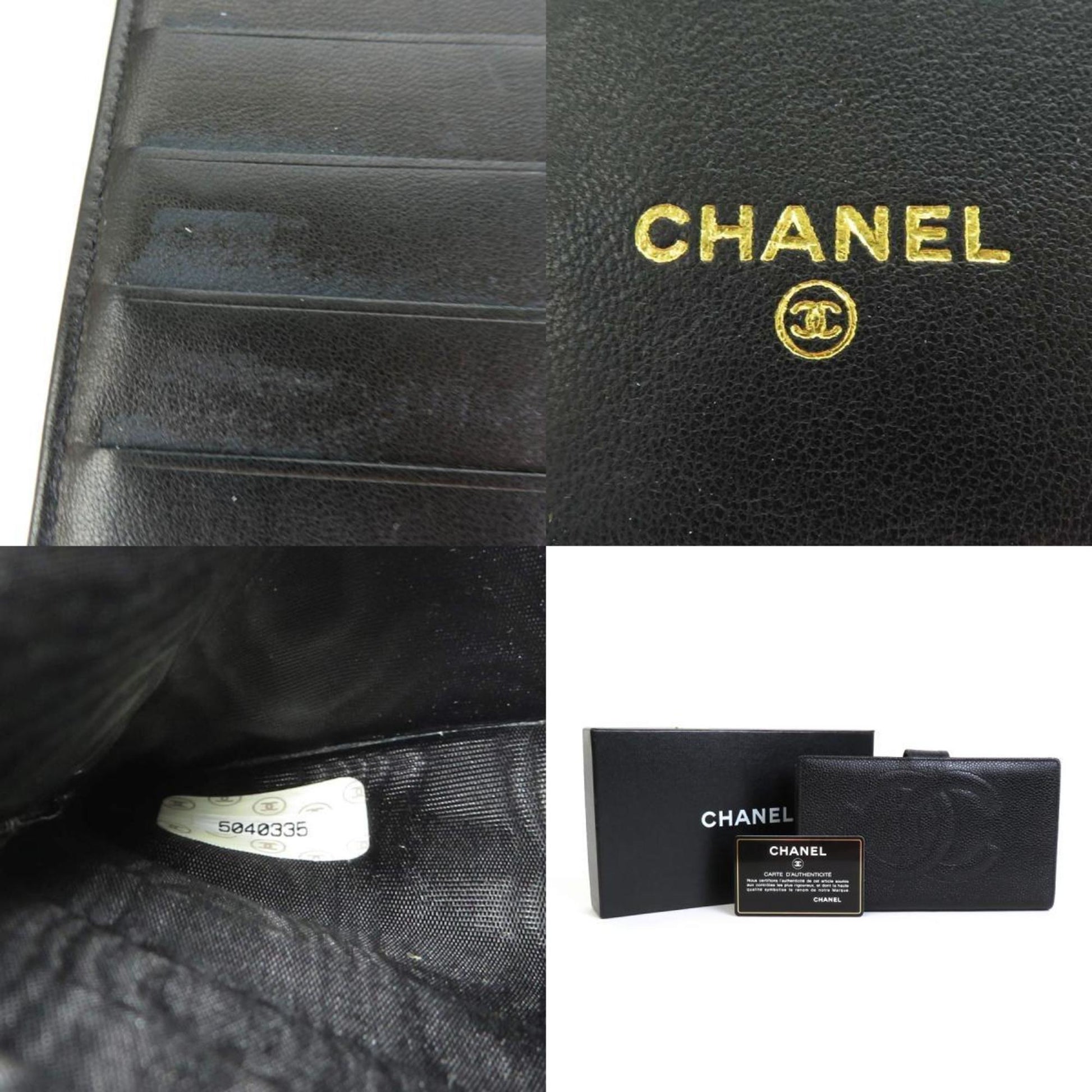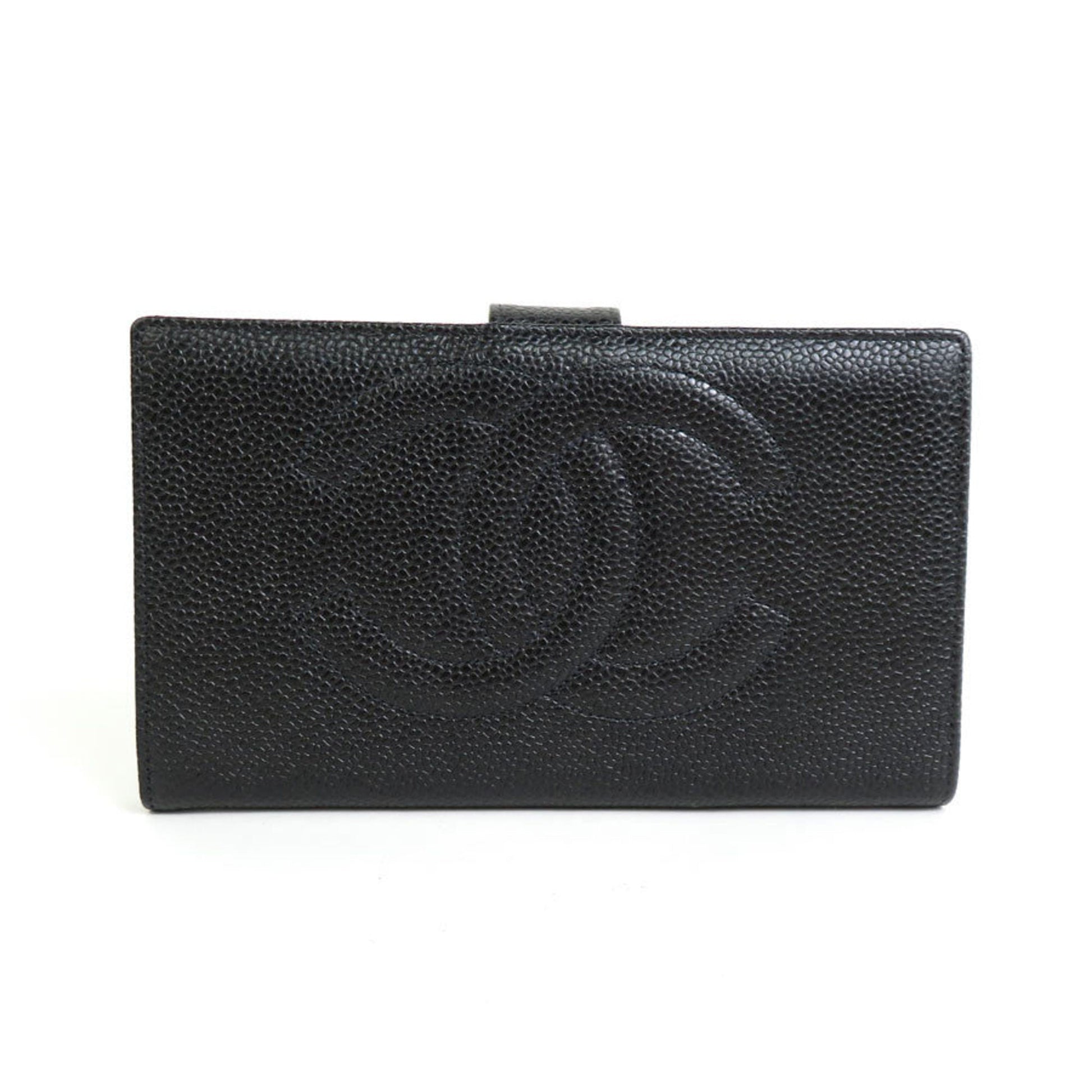 Chanel Bifold Wallet Coco Mark Caviar Skin Leather Black Women's