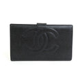 Chanel Bifold Wallet Coco Mark Caviar Skin Leather Black Women's