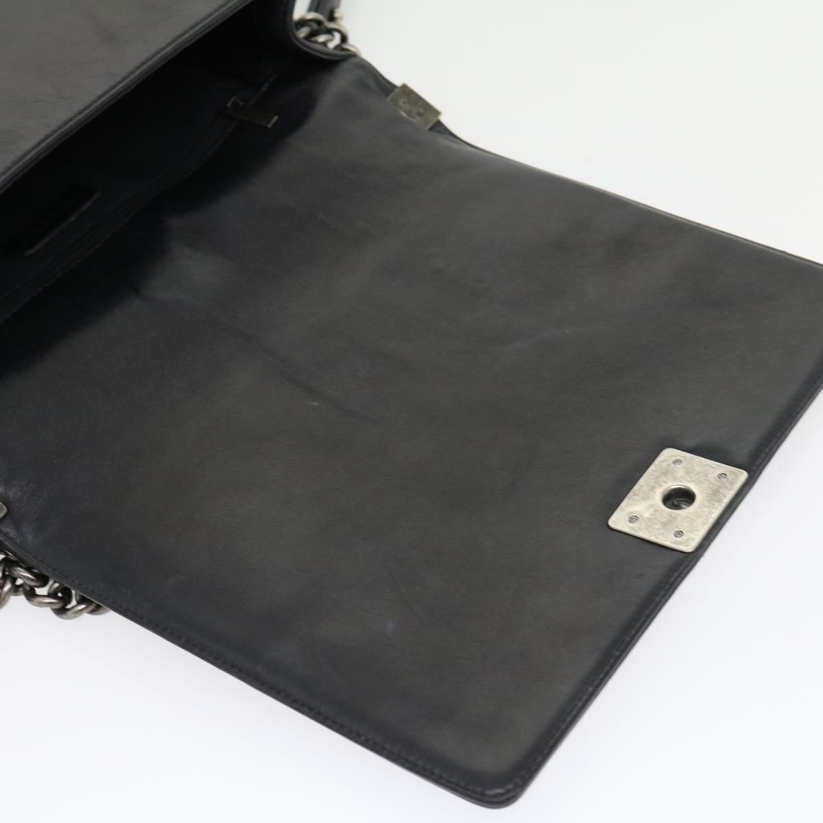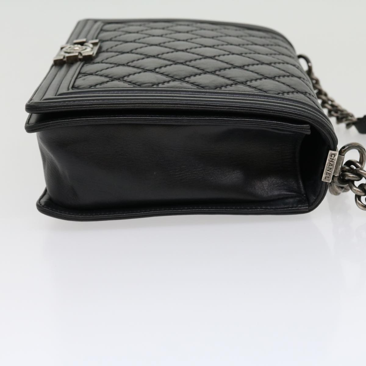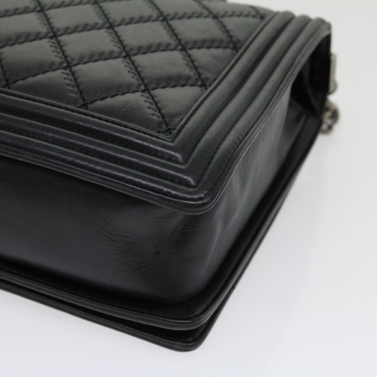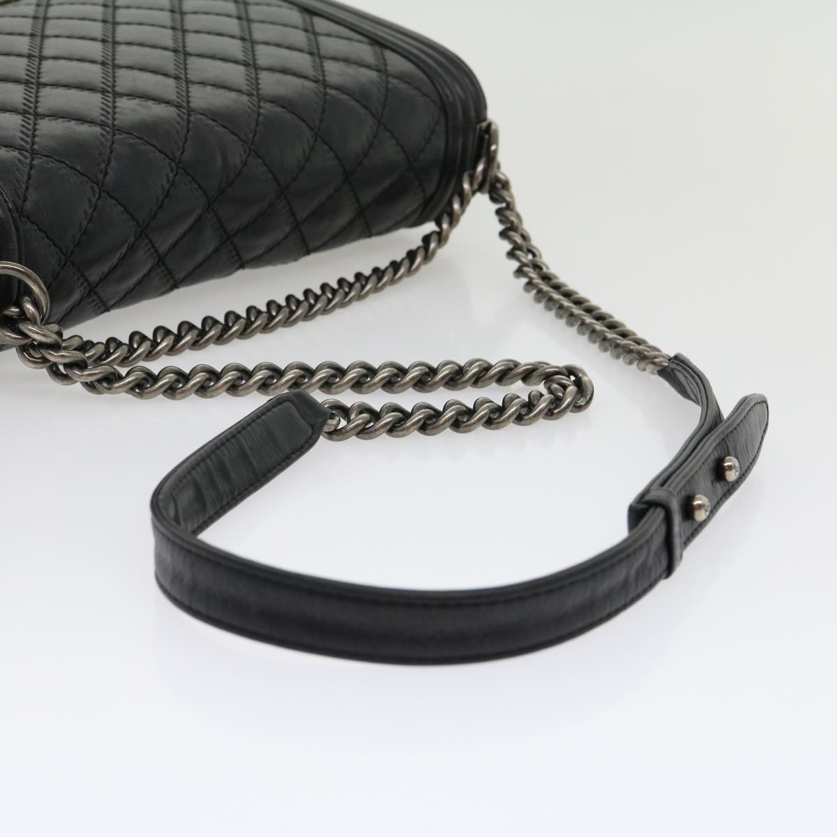 Chanel Big Matelasse Boy Chain Shoulder Bag Lamb Skin Black Auth 30943A
