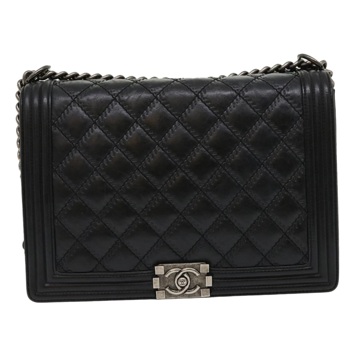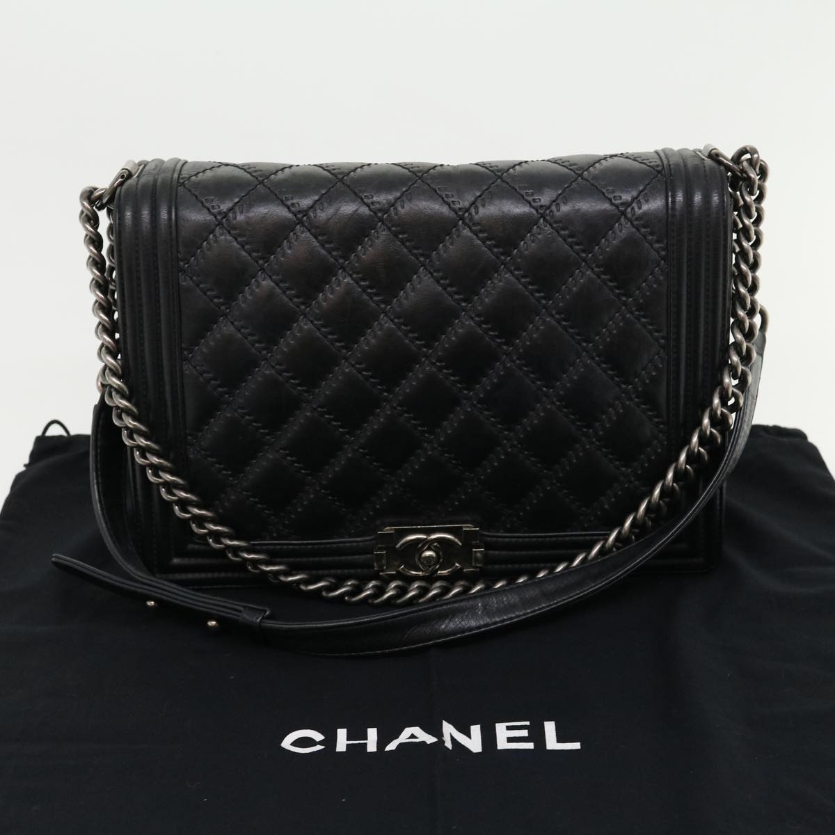 Chanel Big Matelasse Boy Chain Shoulder Bag Lamb Skin Black 30943A