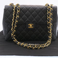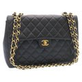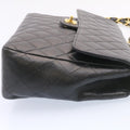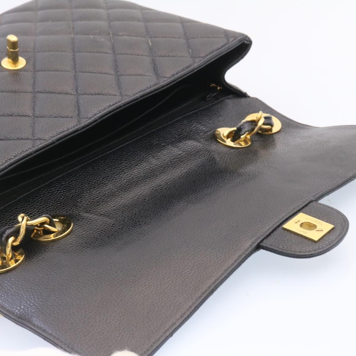 Chanel Big Matelasse Flap Chain Shoulder Bag Caviar Skin Black Gold Auth 25984A