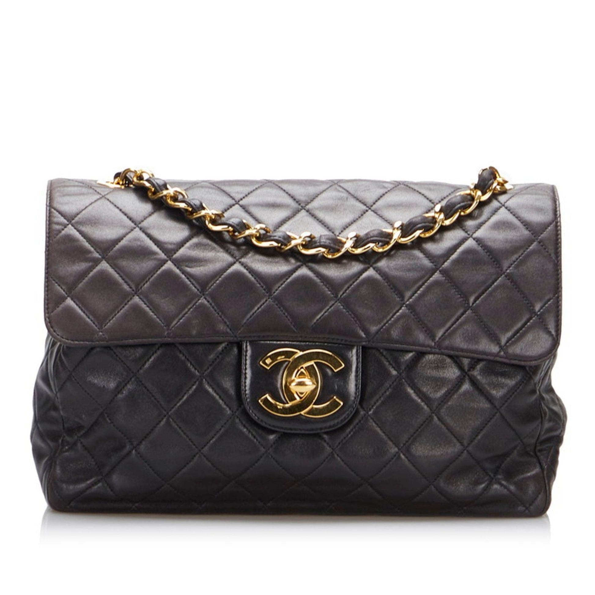Chanel Big Matrasse Single Flap Chain Shoulder Bag Black Lambskin Ladies