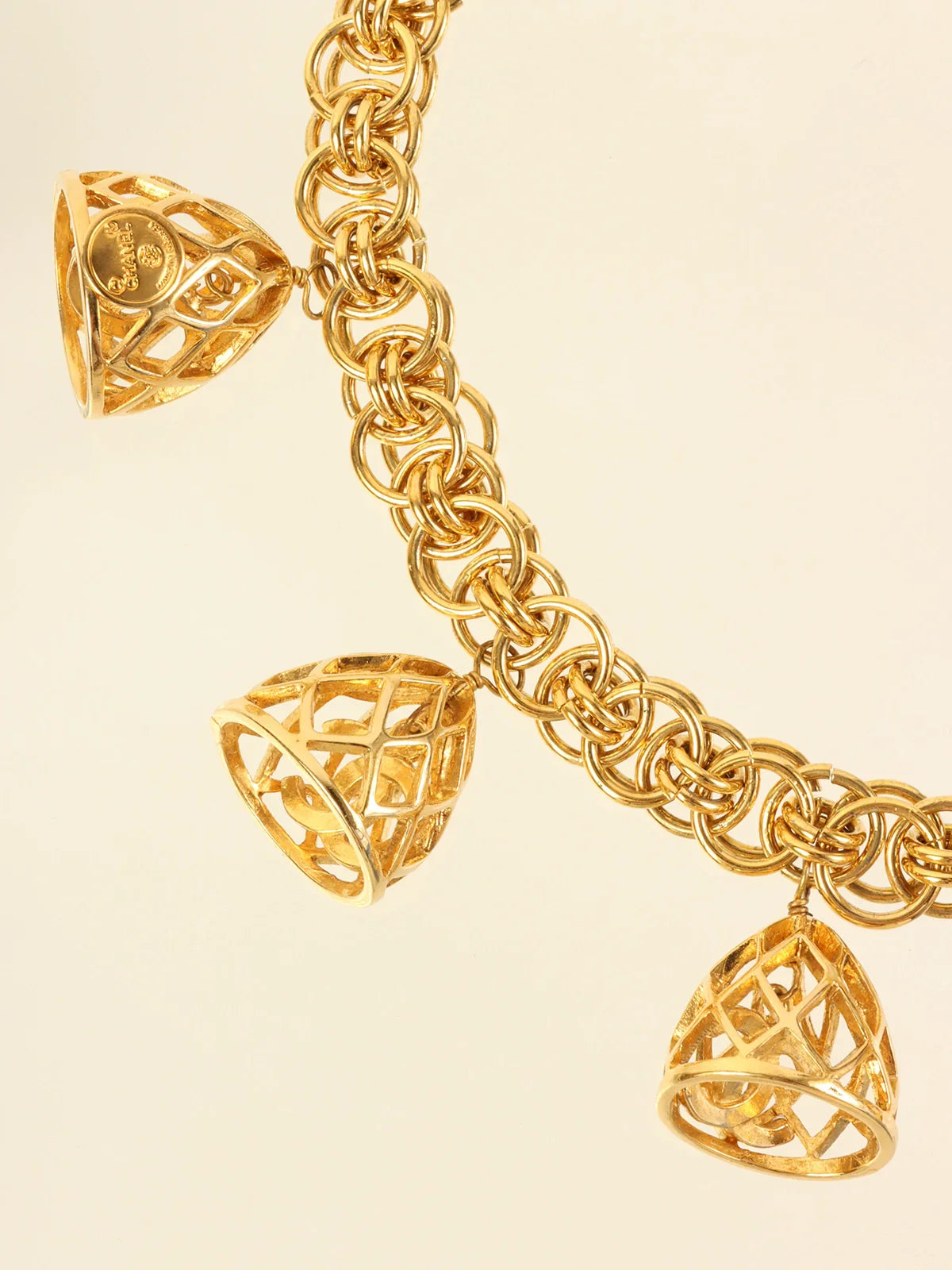 CHANEL Bird Cage Cc Mark Swing Necklace Gold