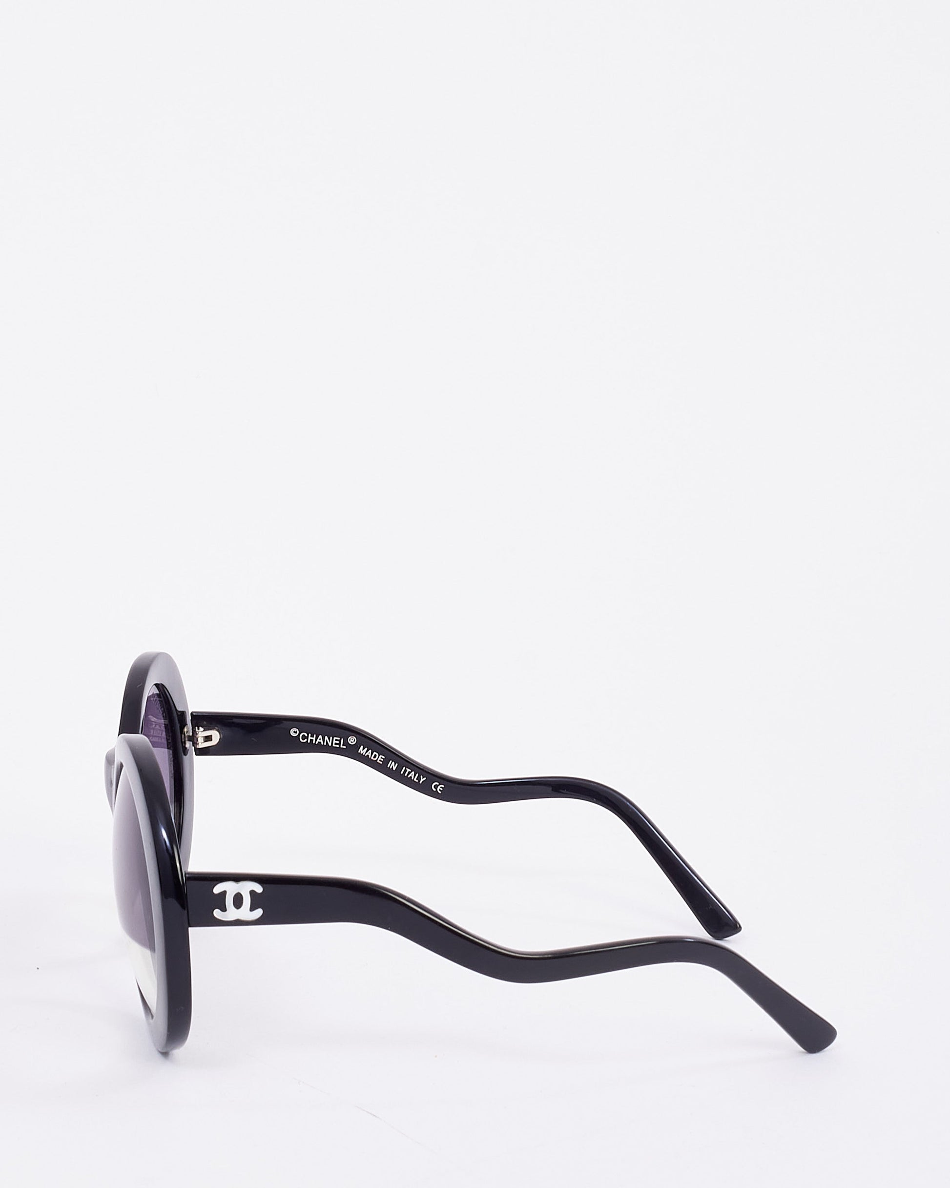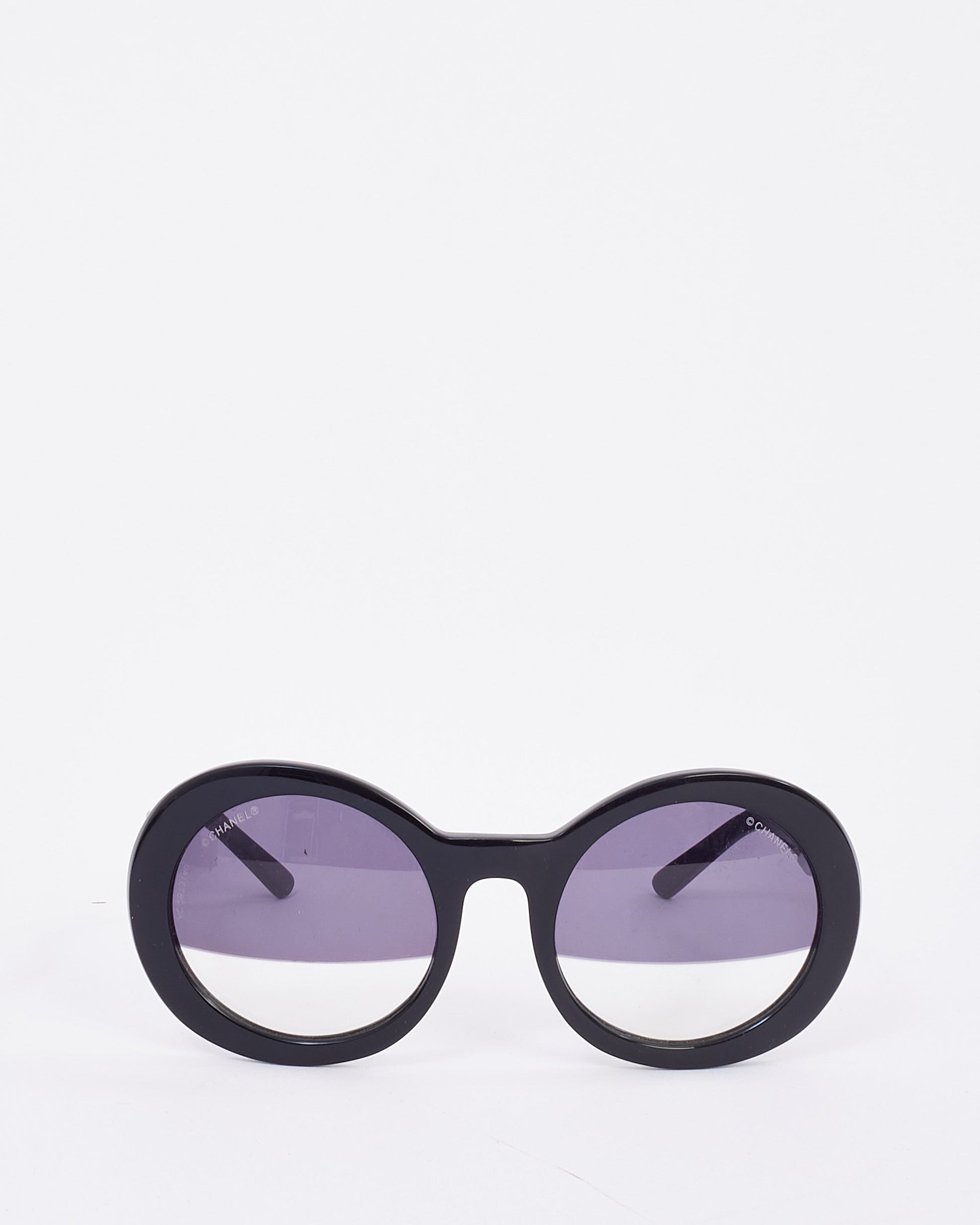 Chanel Vintage Black Acetate Round Half Tint Lens S5018 Sunglasses