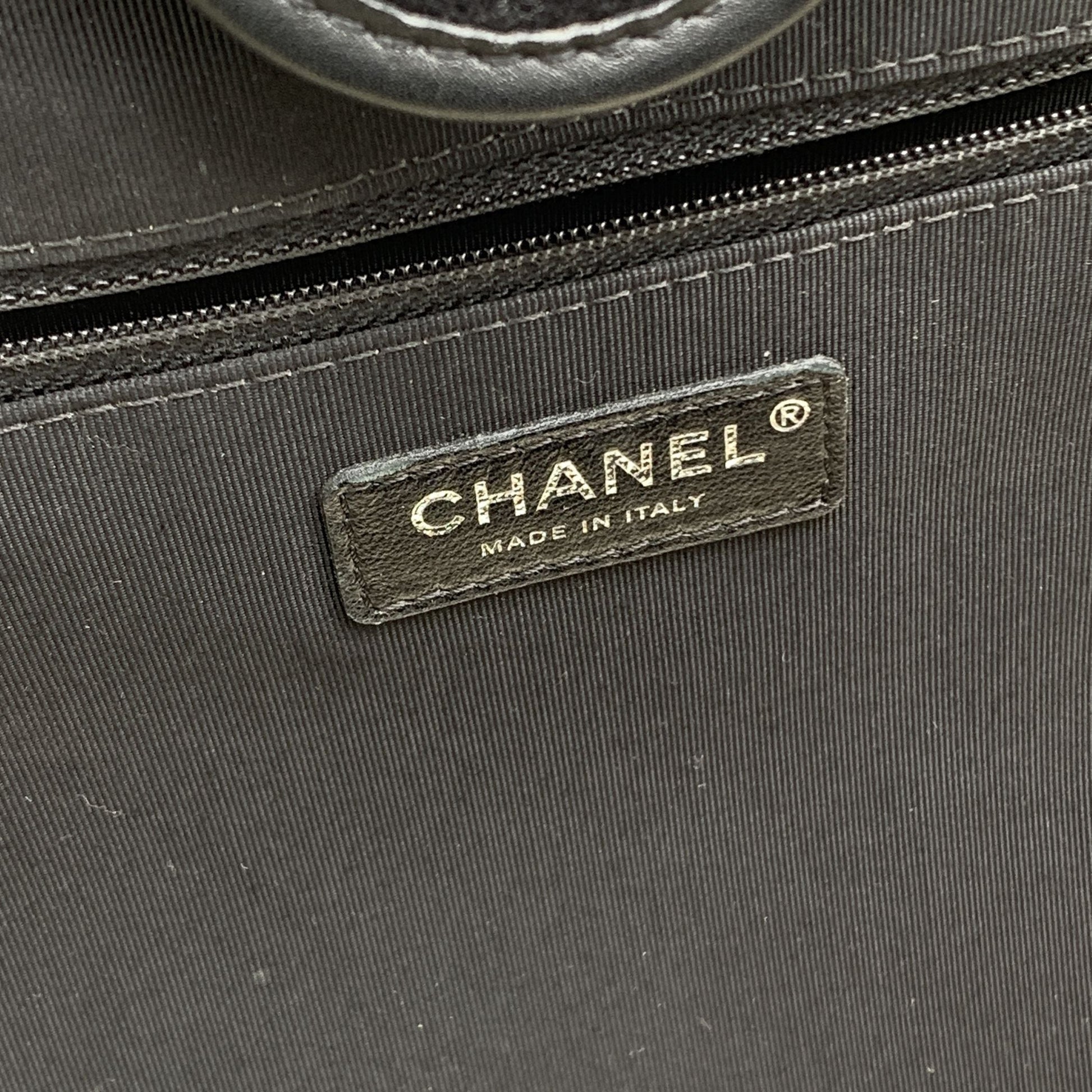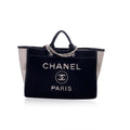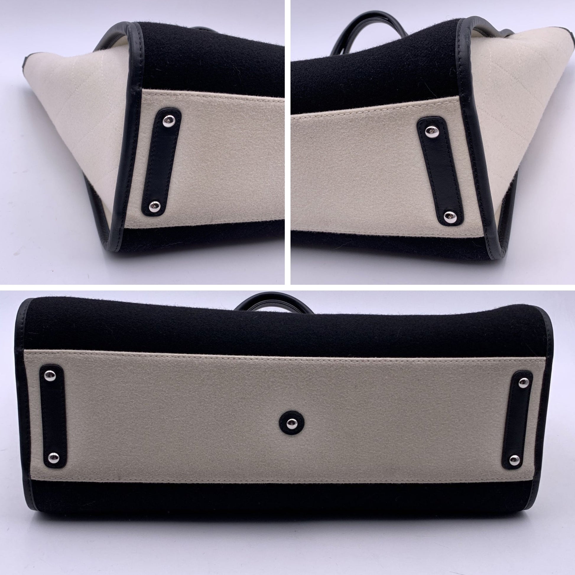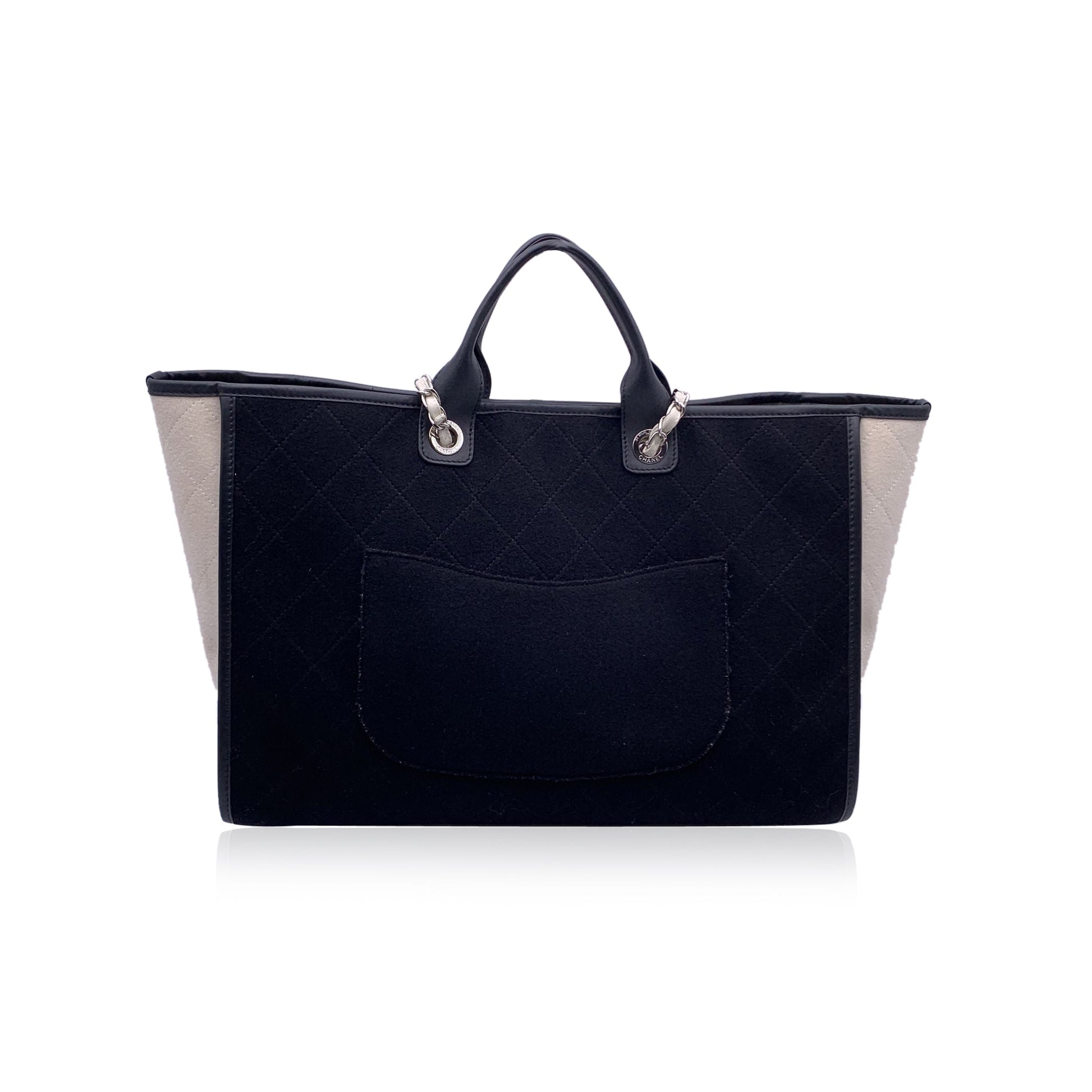 CHANEL Black And White Felt Wool Large Deauville Tote Shoulder Bag