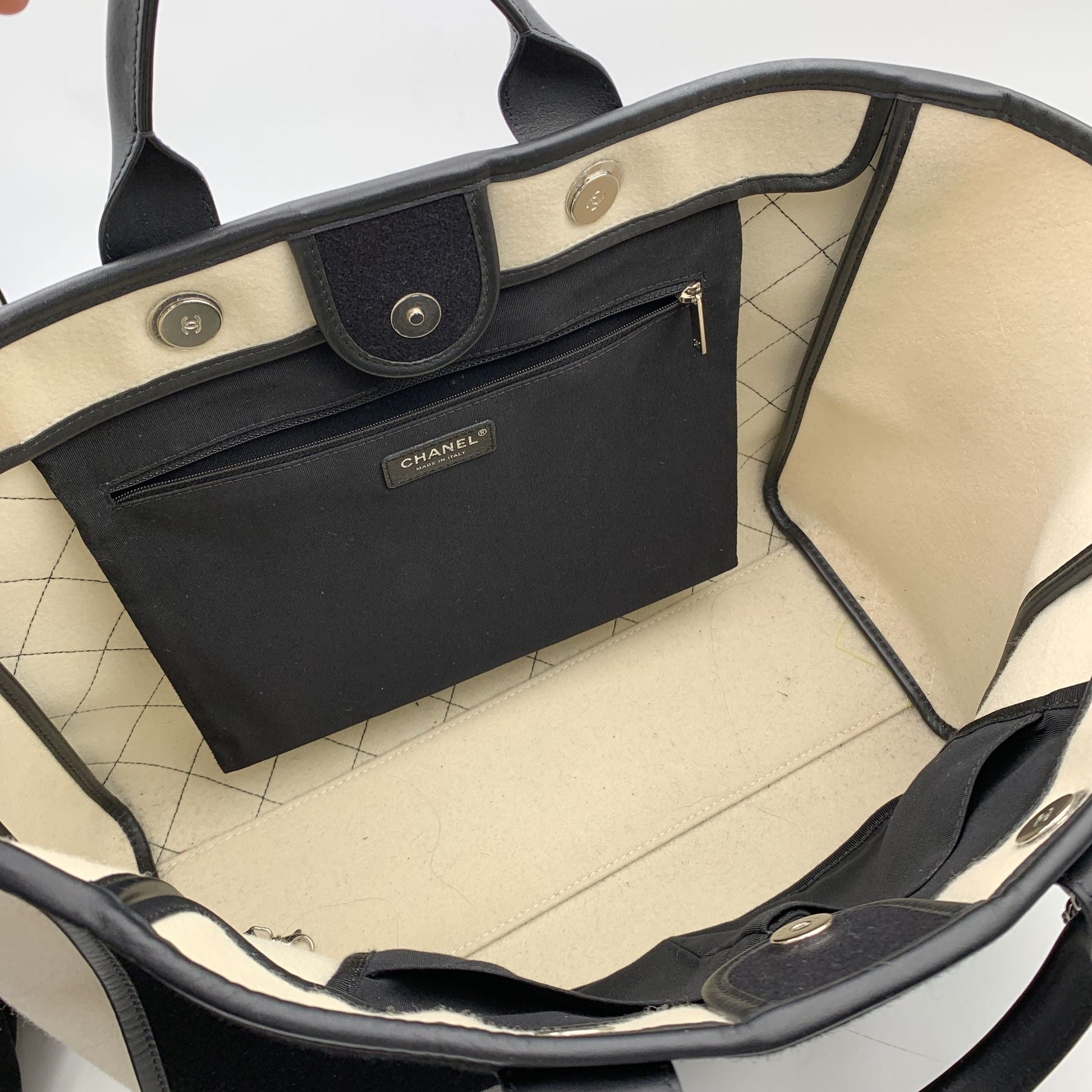 Beautiful Chanel 'Deauville' Tote, Crafted In Black And White Felt Wool Fabric.