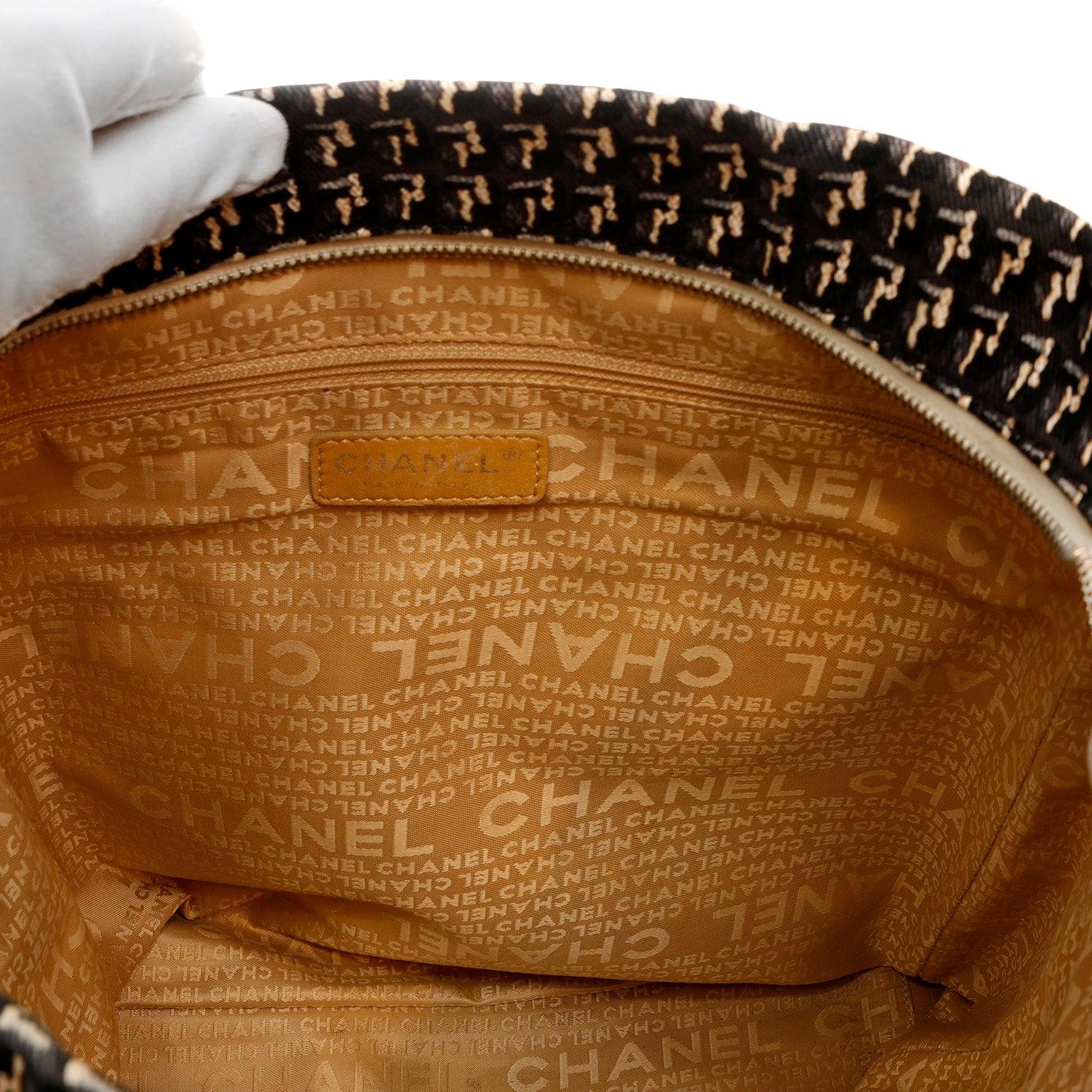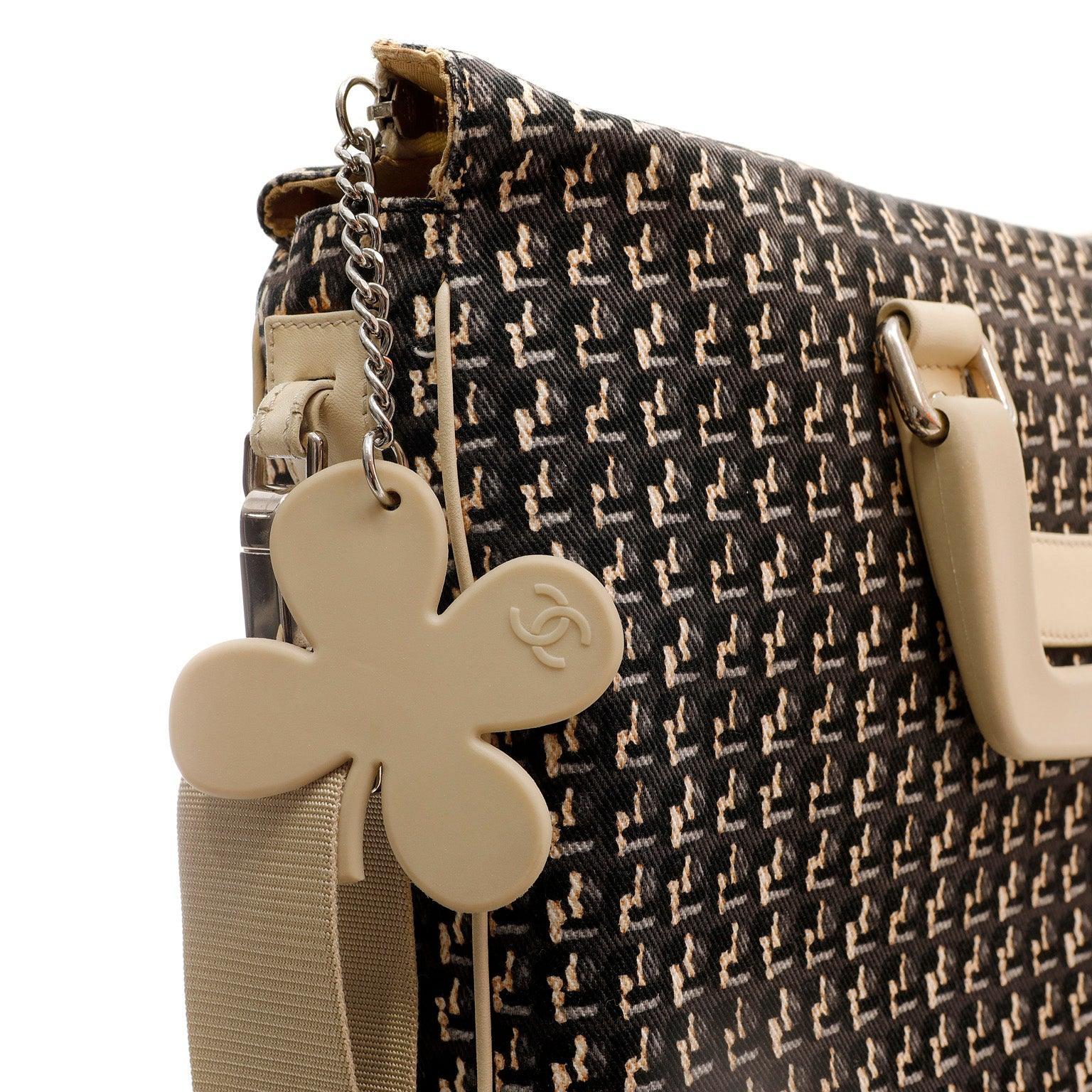 Chanel Black & Beige Canvas Tote w/ Clover Charm