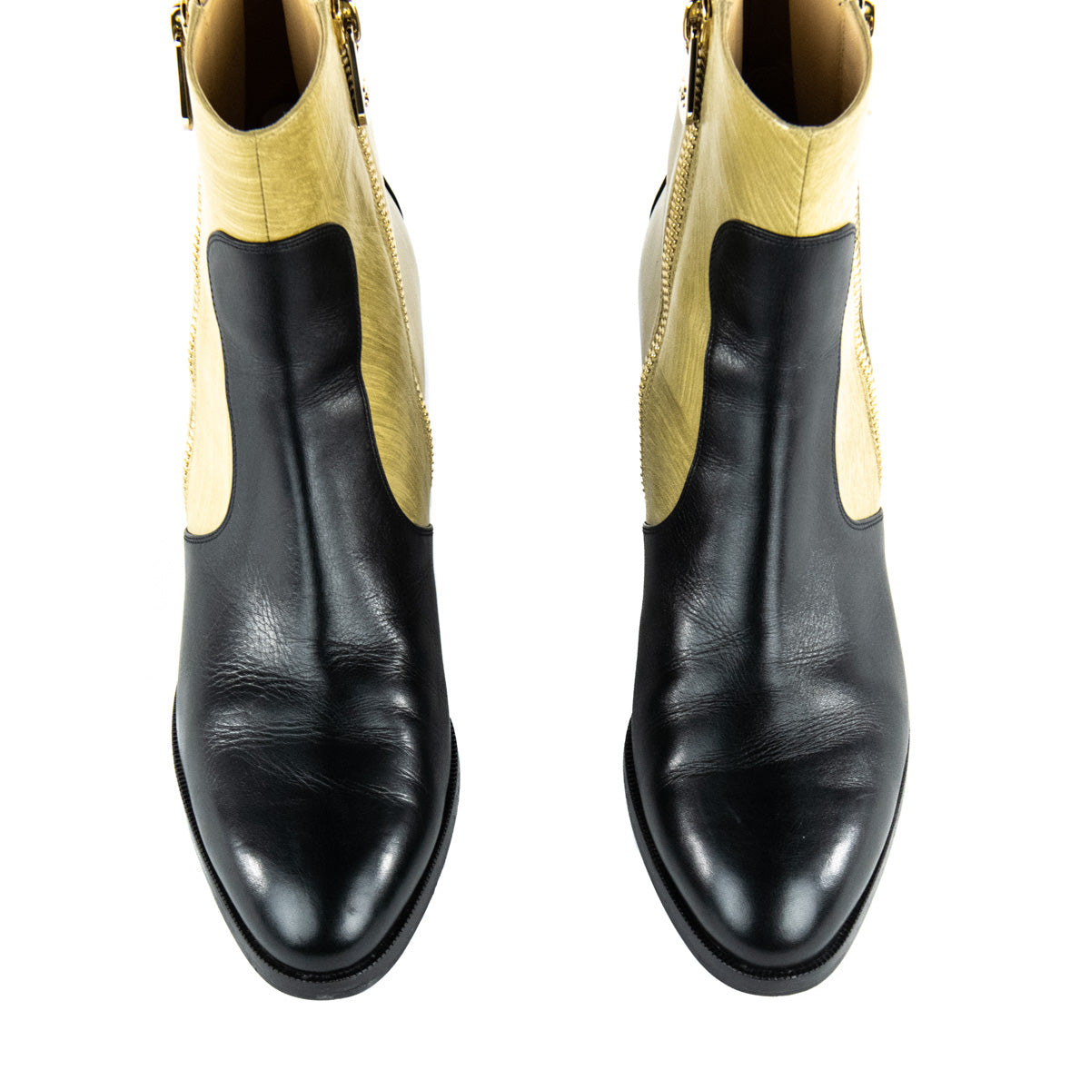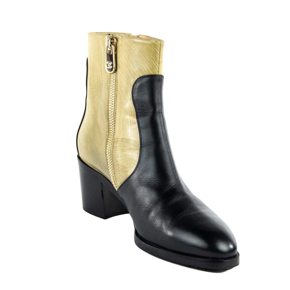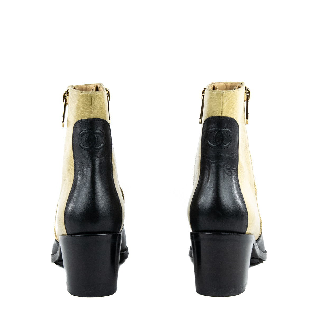 Chanel Black & Beige CC Ankle Boots Size US 12 | EU 42