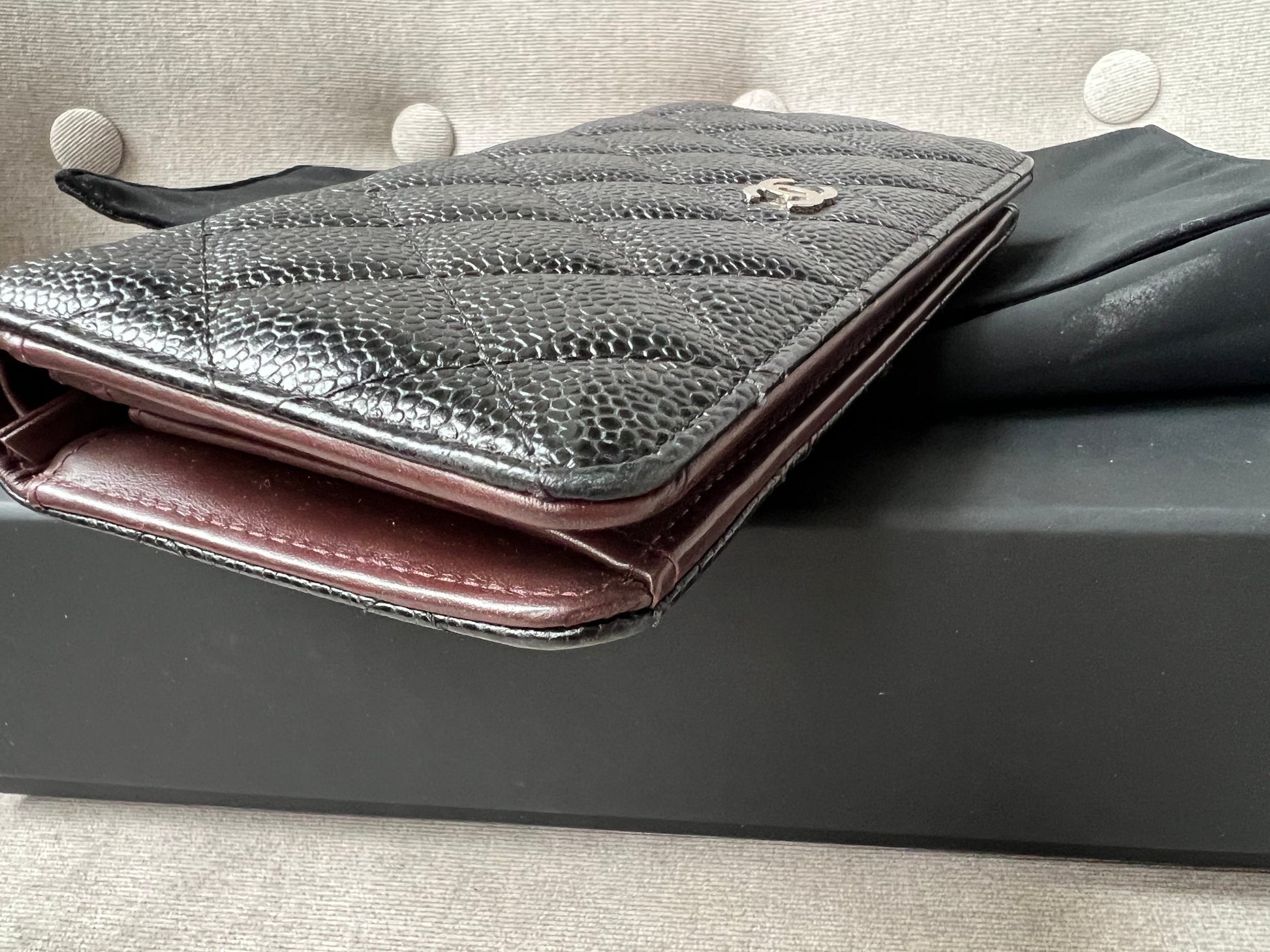 Chanel Black Caviar Flap Wallet with Silver Hardware