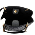 Textured and durable black caviar leather is quilted in signature Chanel diamond pattern. Large interlocking CC is tonally stitched on the front. Leather and gold chain entwined double straps are comfortably carried on the shoulder. Dust bag included.