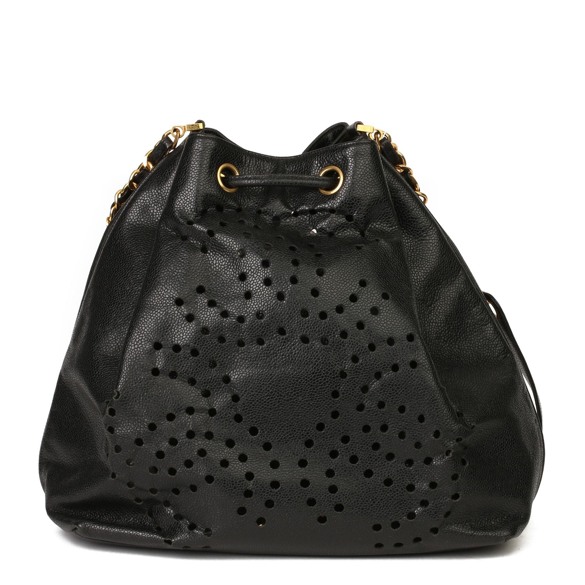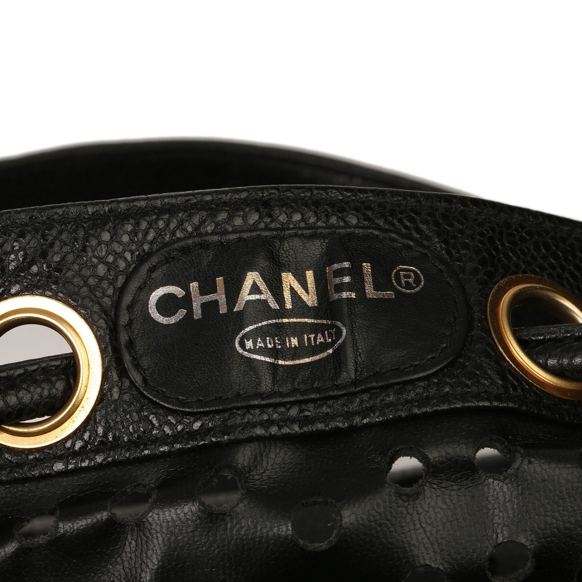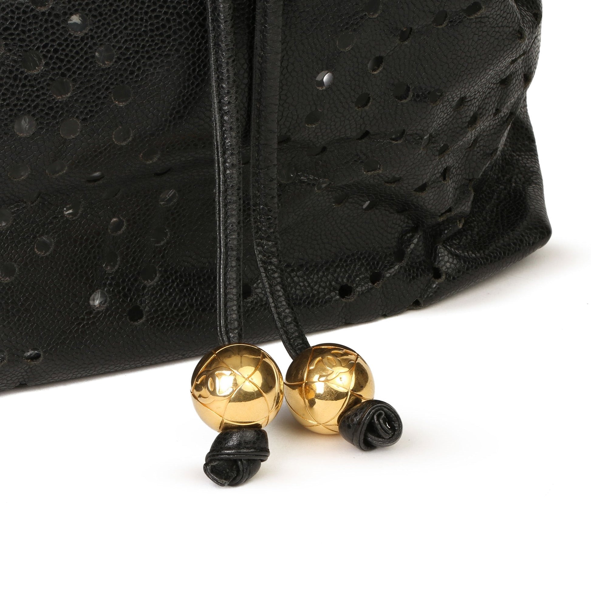 Chanel Black CC Perforated Caviar Leather Vintage Timeless Bucket Bag