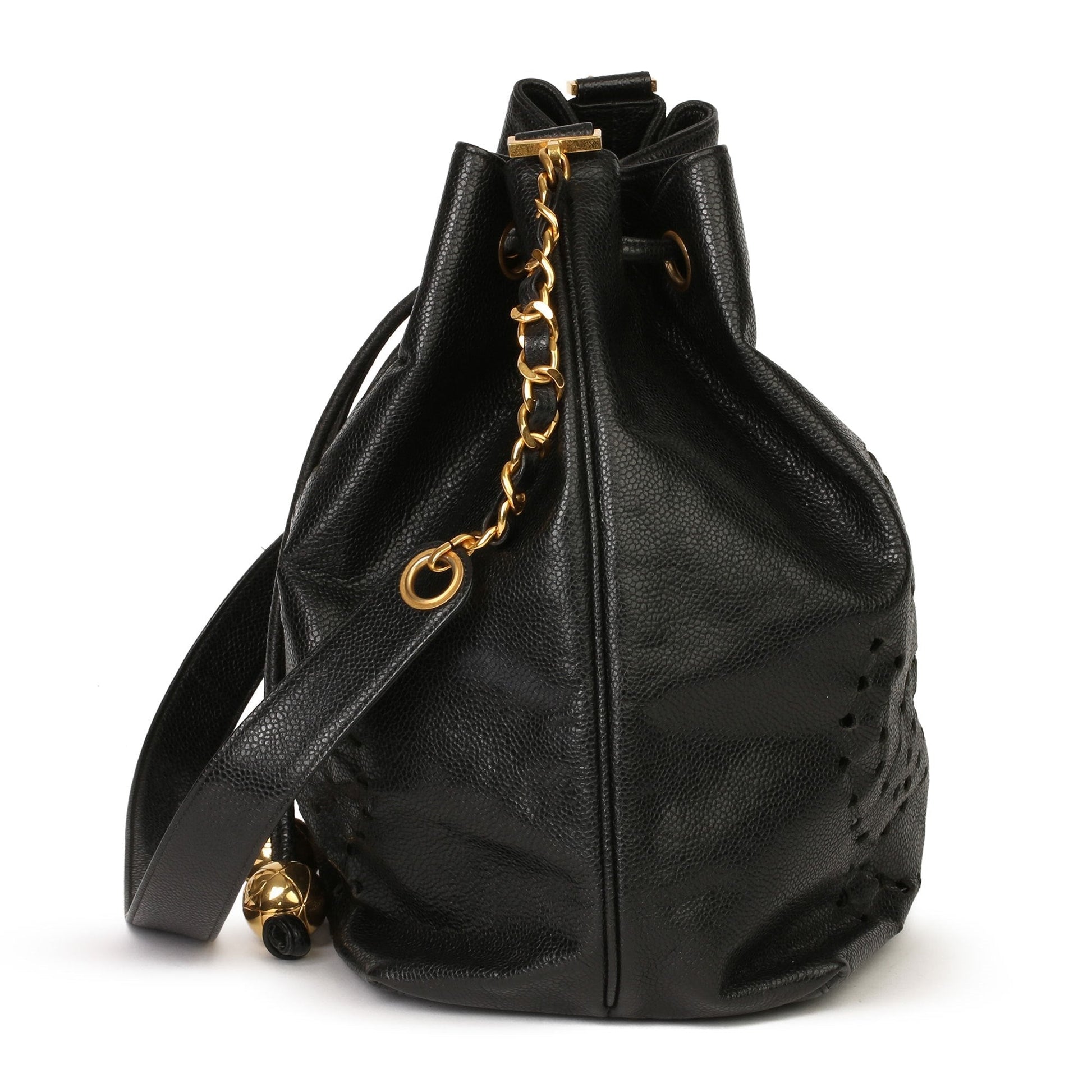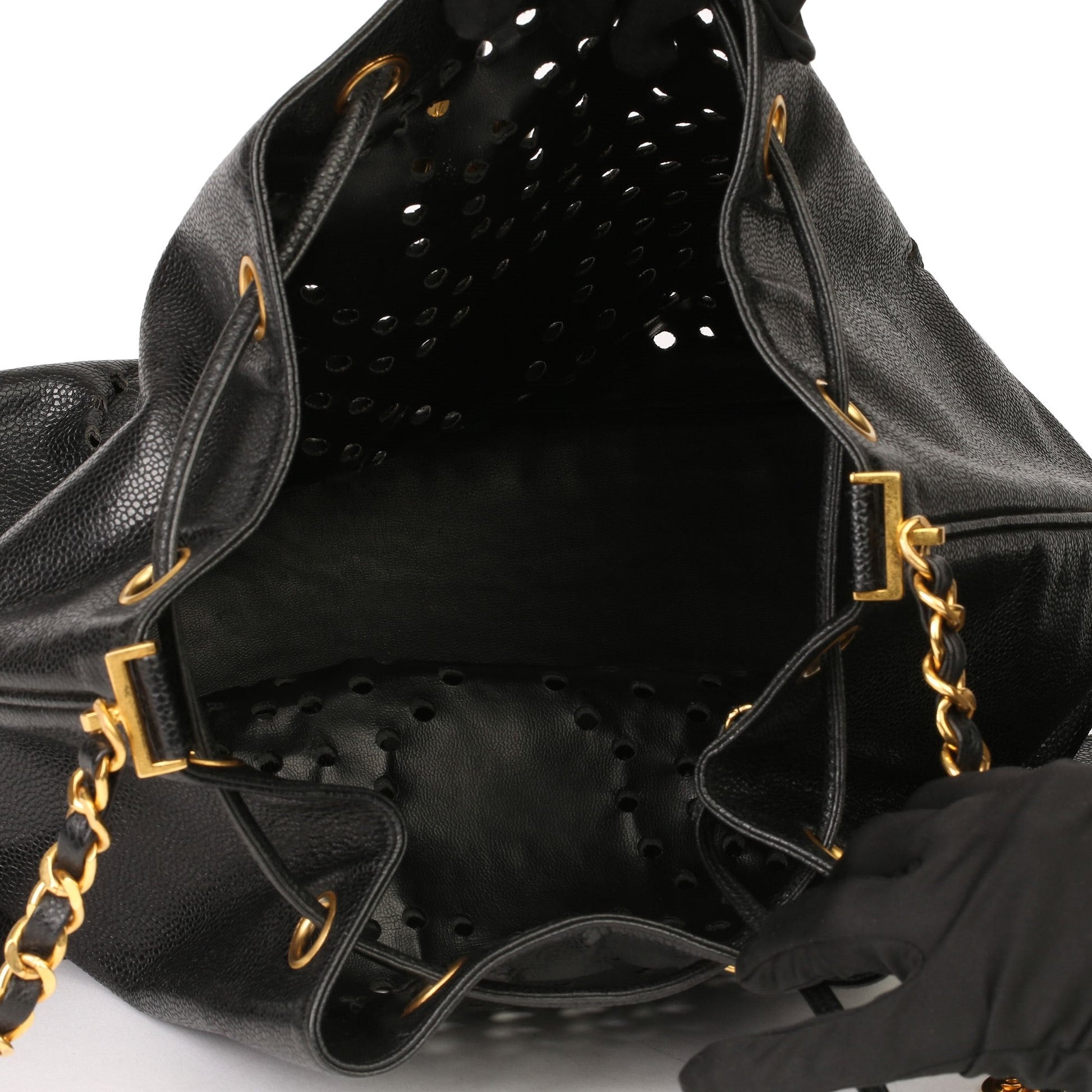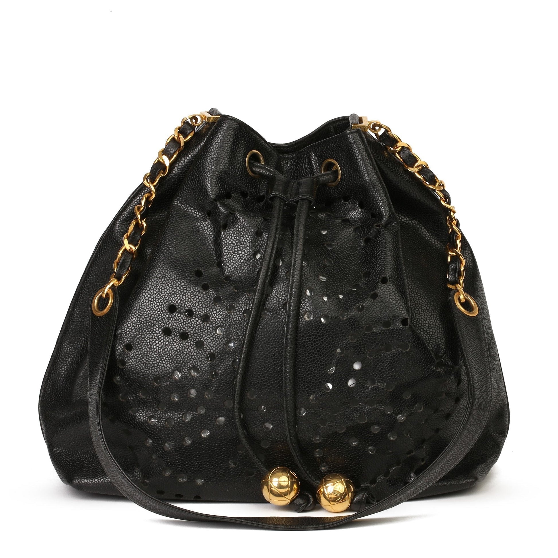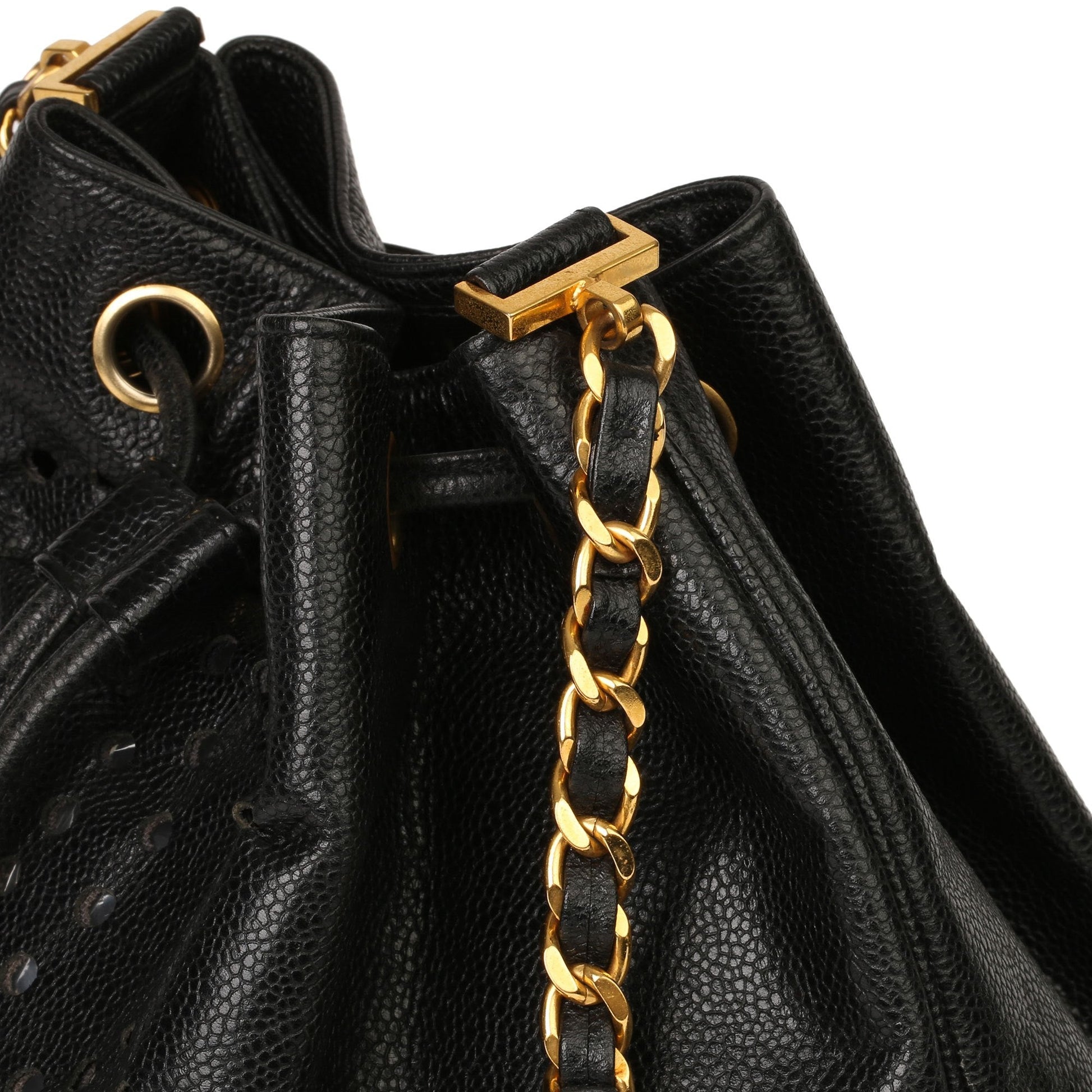 Chanel Black CC Perforated Caviar Leather Vintage Timeless Bucket Bag