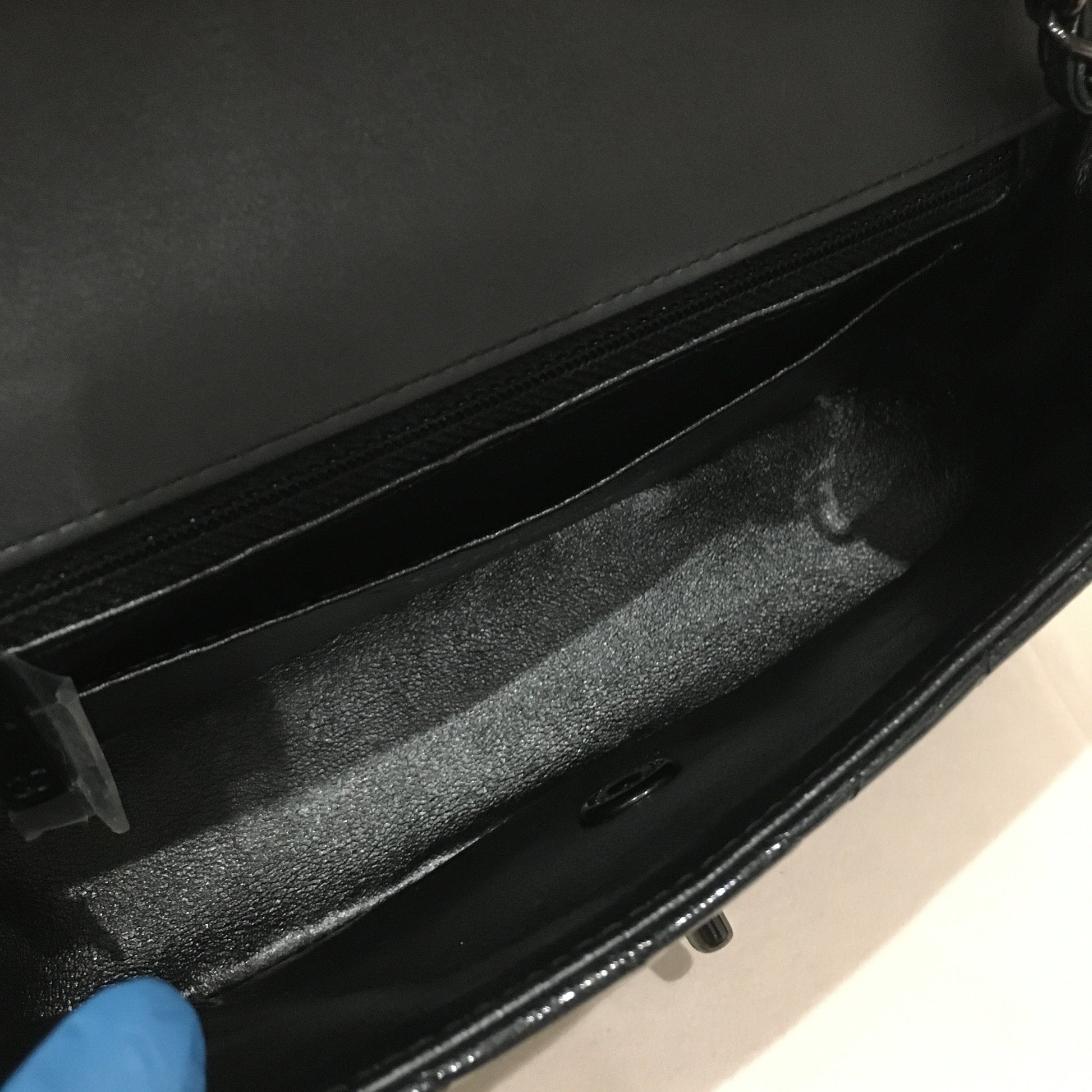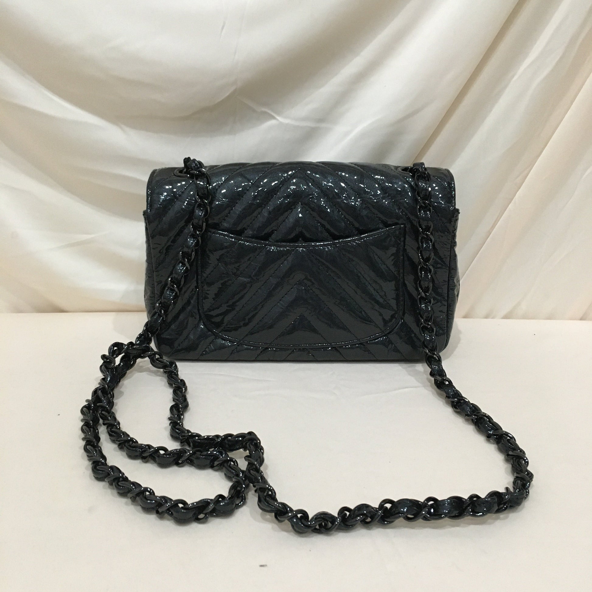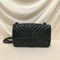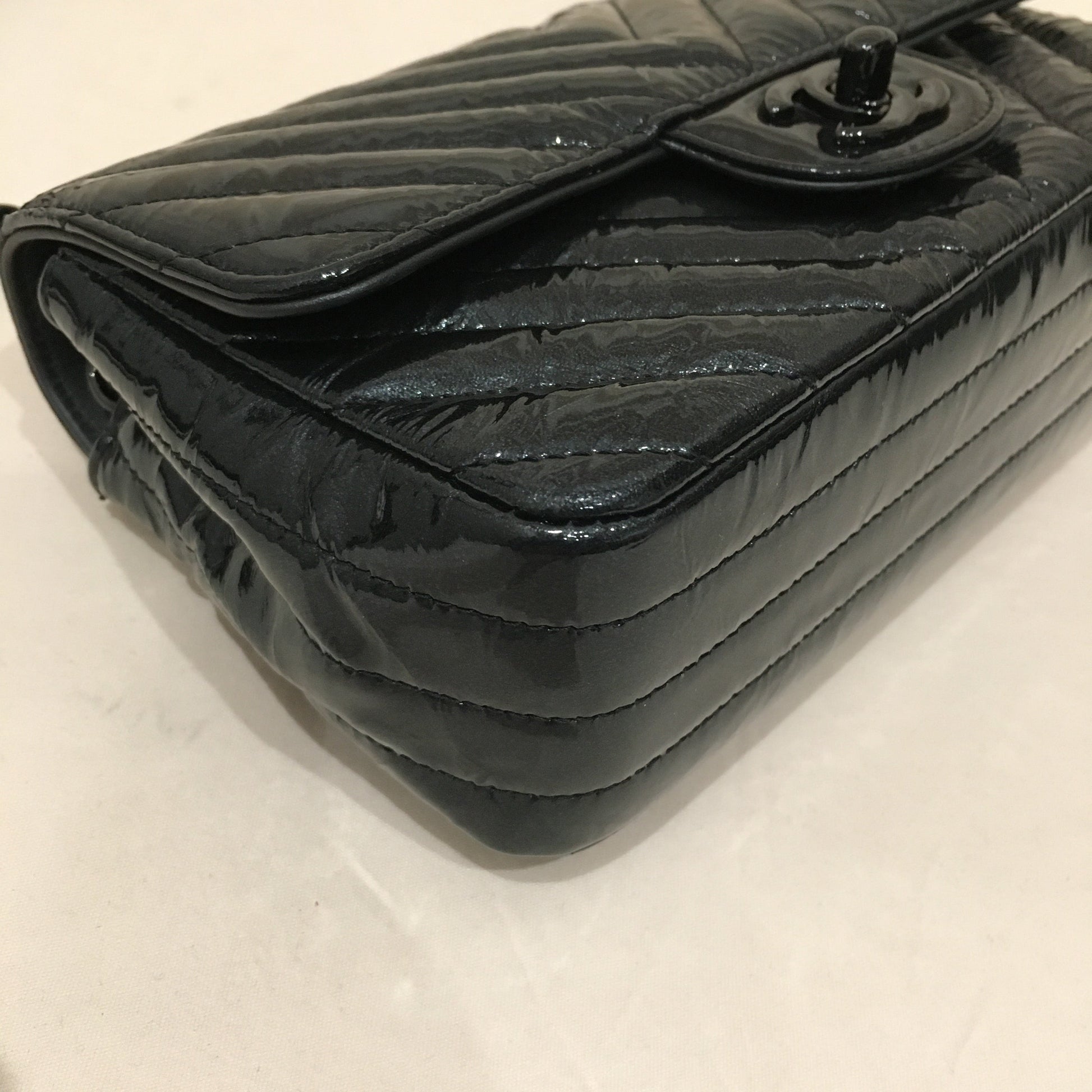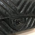 Chanel Black Chevron Patent Black Hardware Single Flap Shoulder Bag Sku# 75886