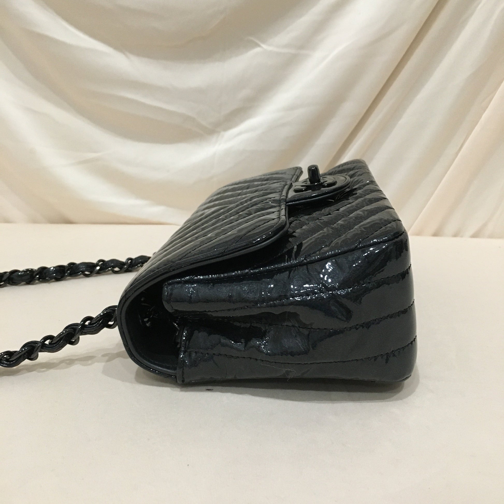 Chanel Black Chevron Patent Black Hardware Single Flap Shoulder Bag Size/Measurements: