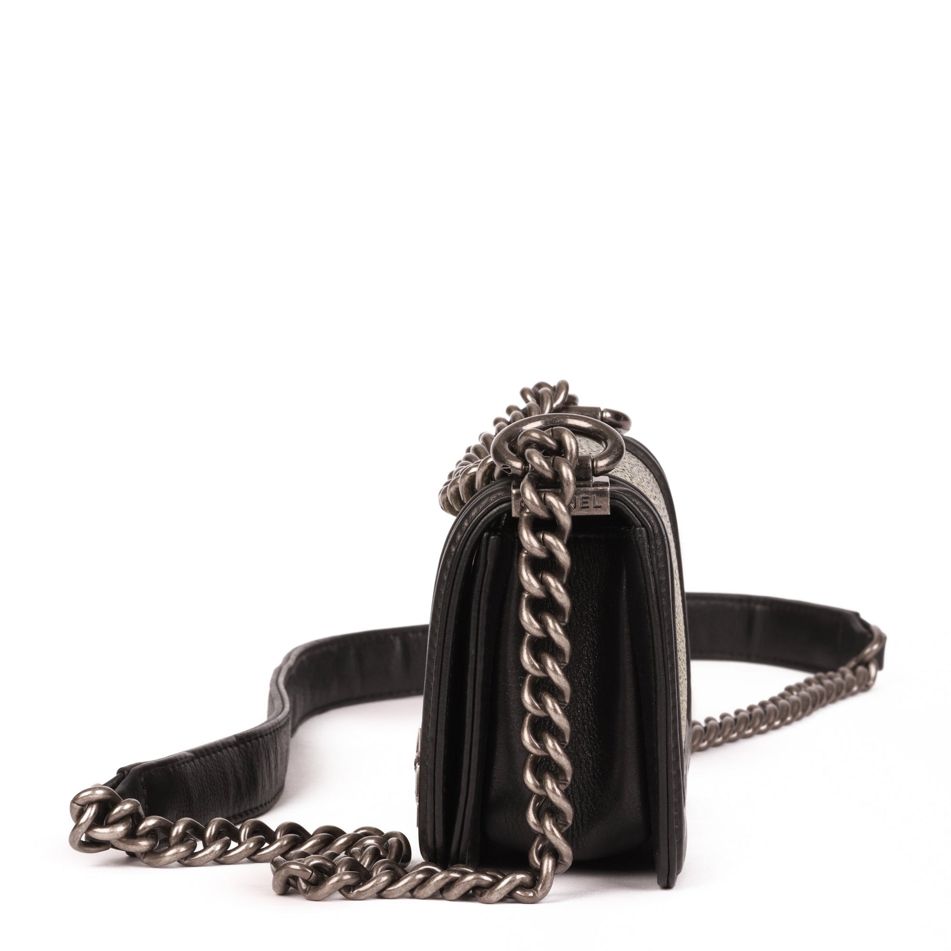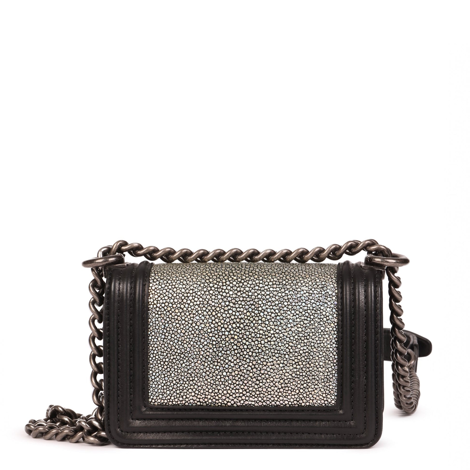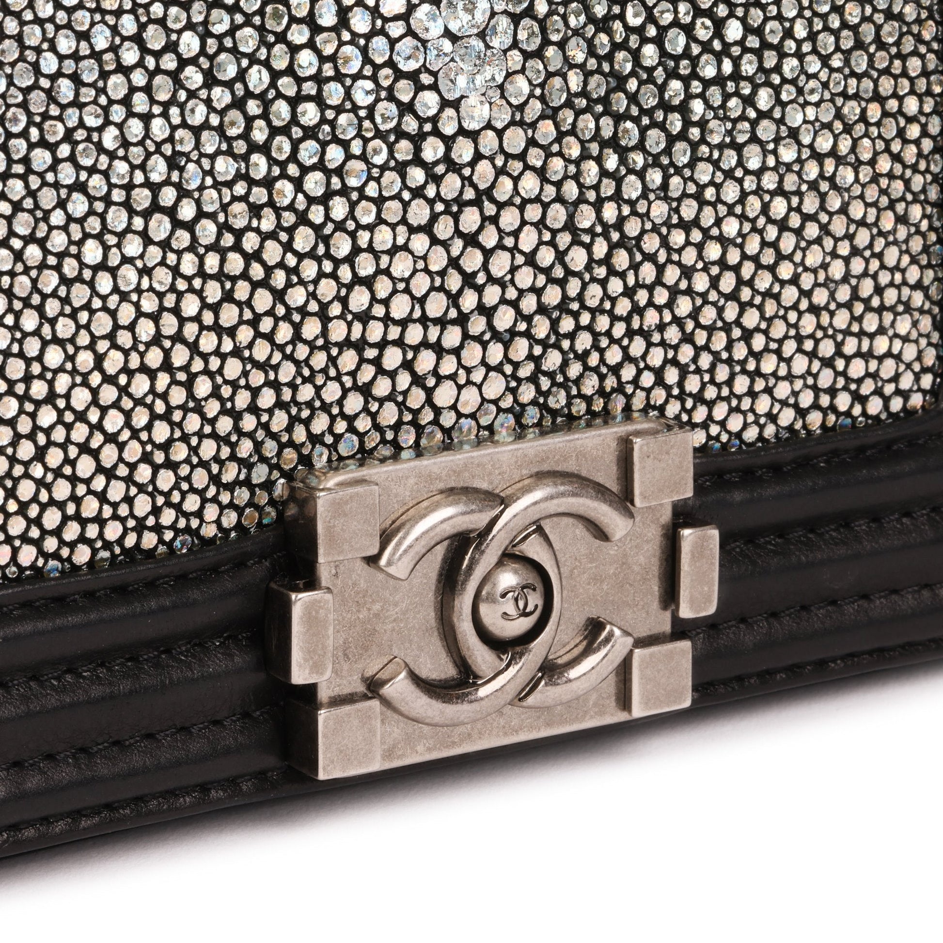 Chanel Black Lambskin & Hologram Galuchat Micro Le Boy Shoulder Bag