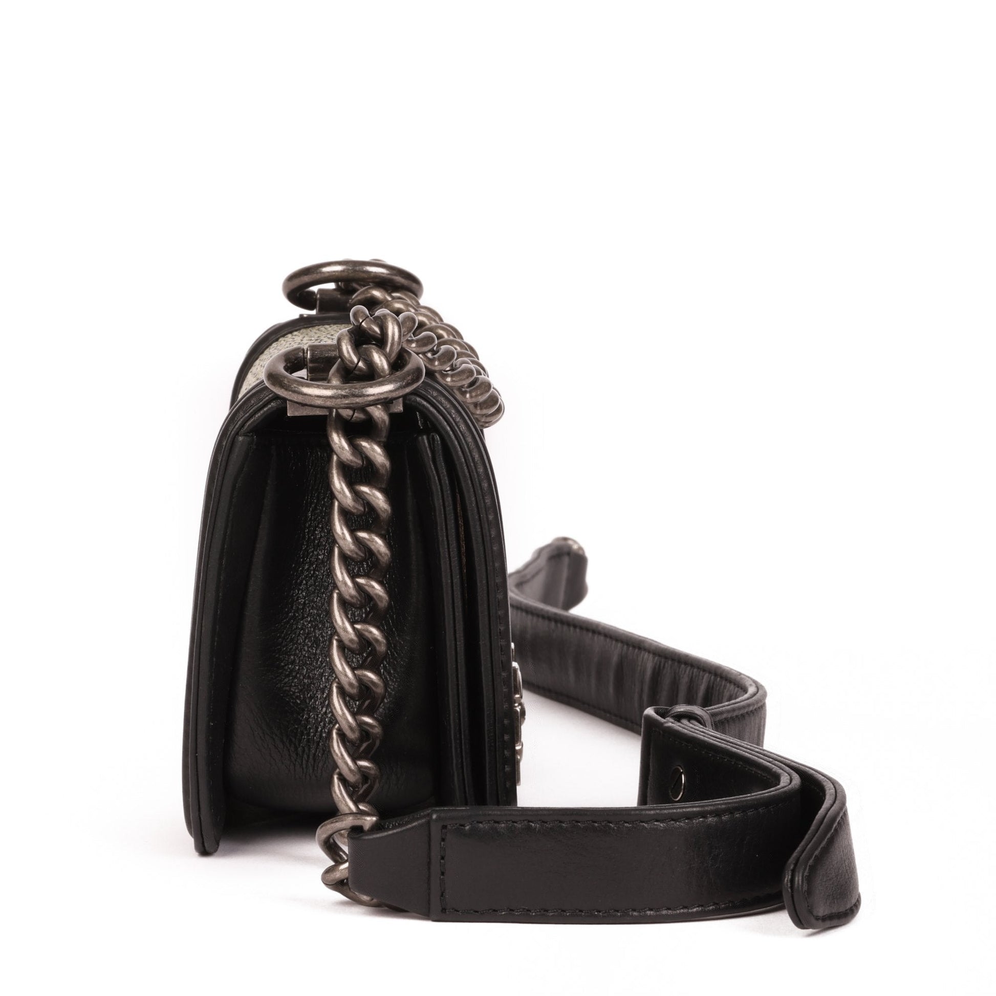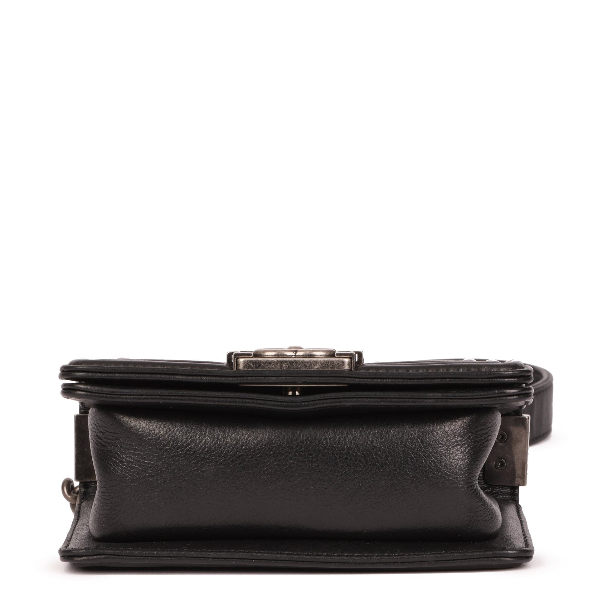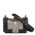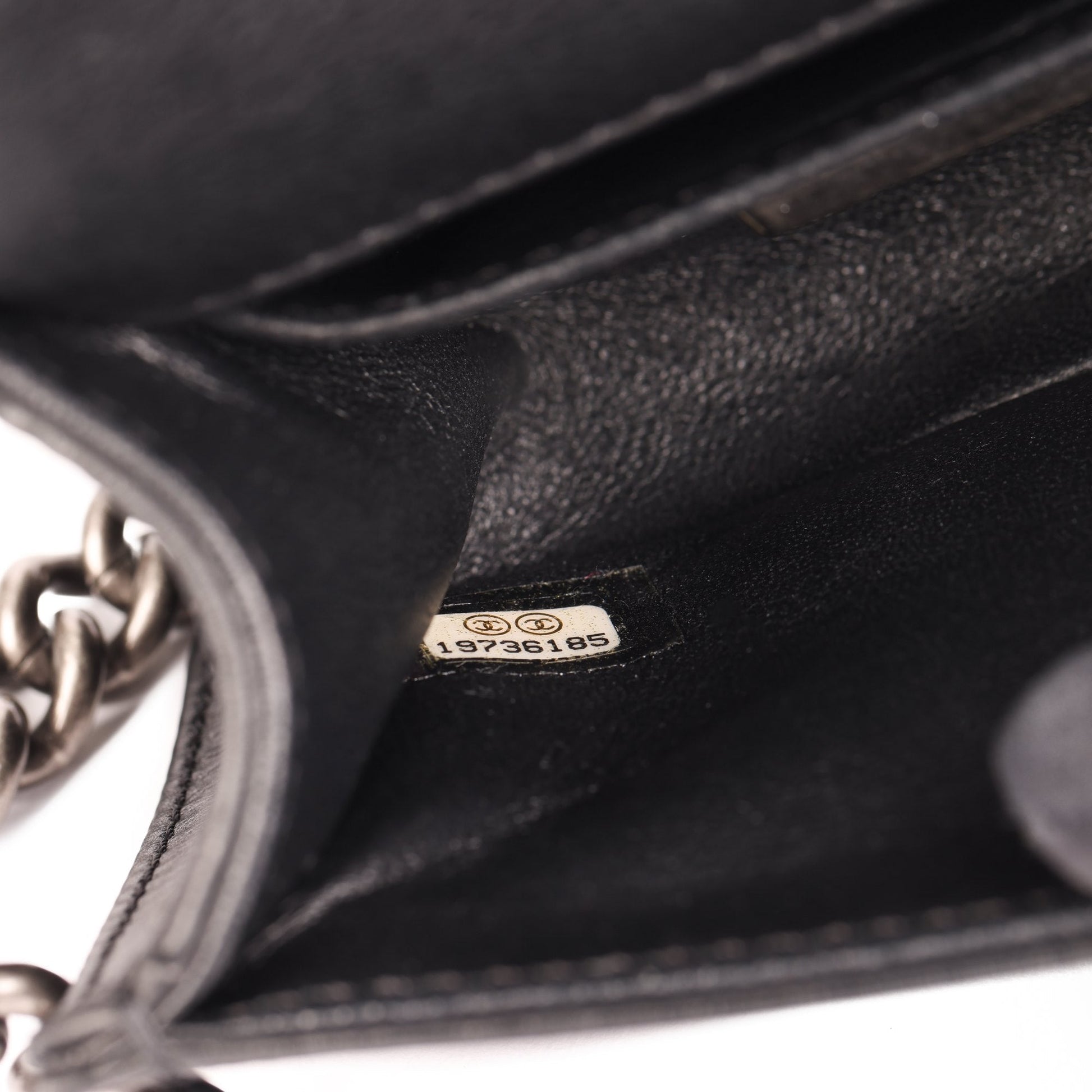 Chanel Black Lambskin & Hologram Galuchat Micro Le Boy Shoulder Bag