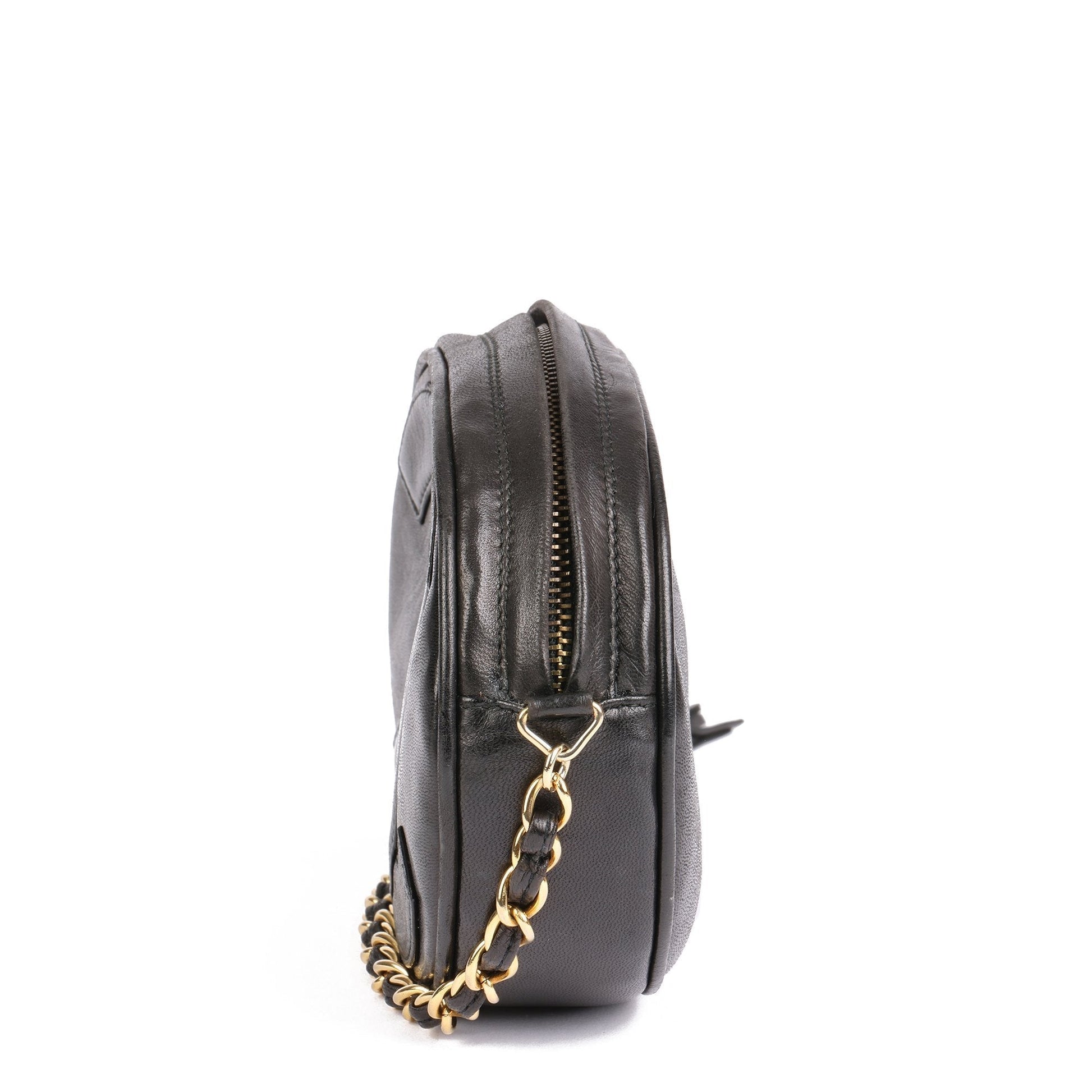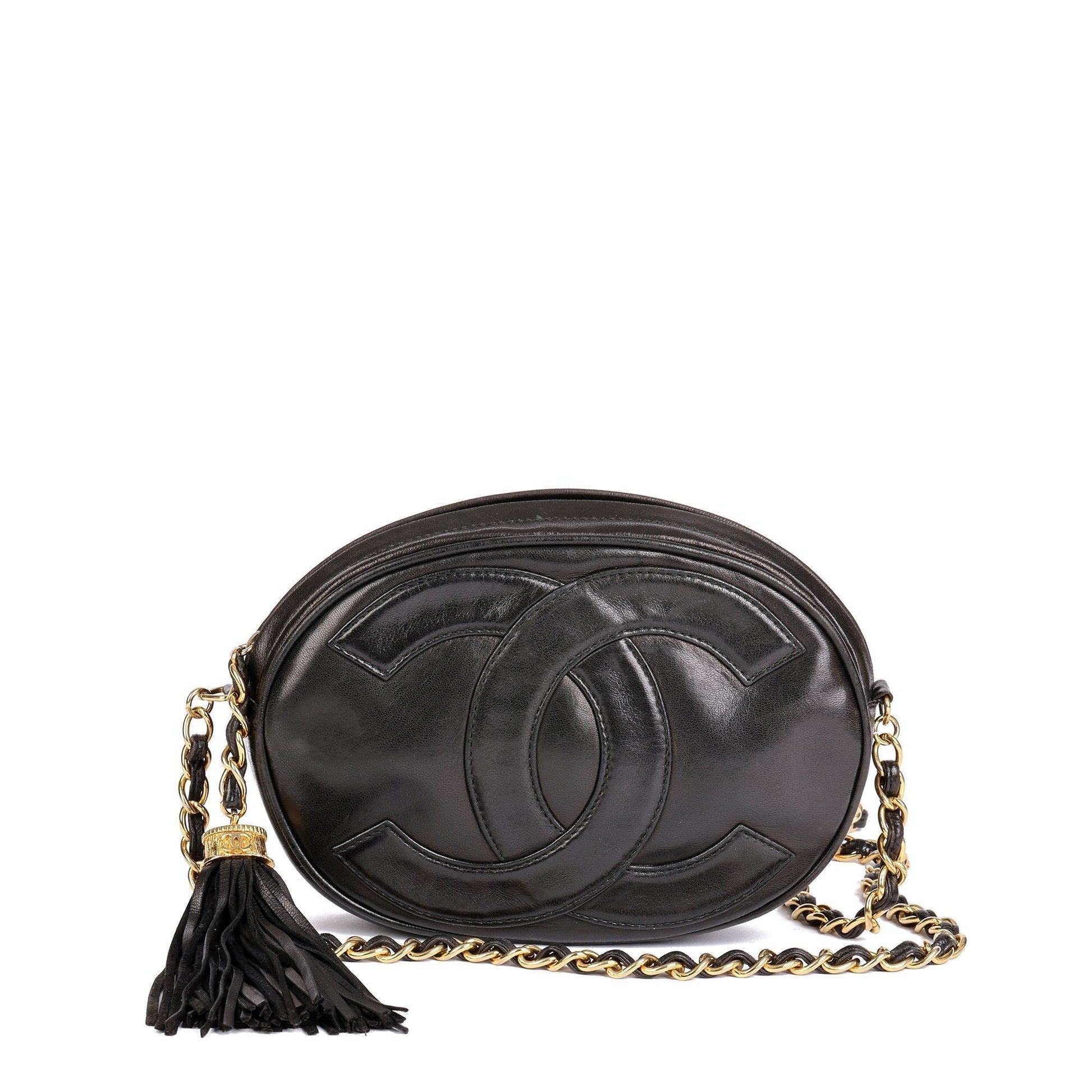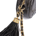 Chanel Black Lambskin Leather Vintage Round Fringe Timeless Shoulder Bag