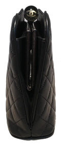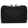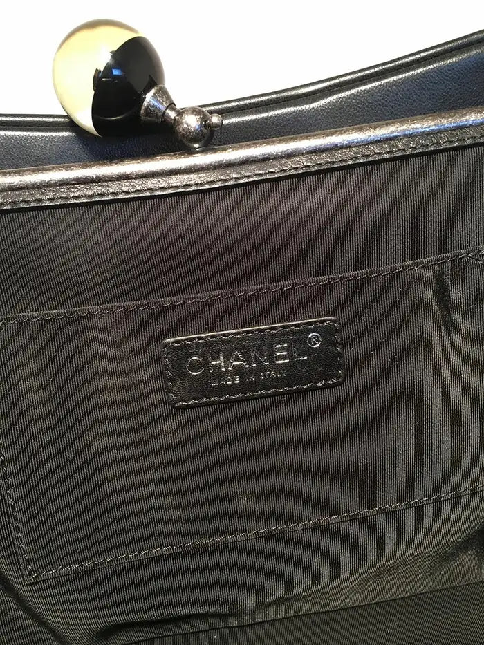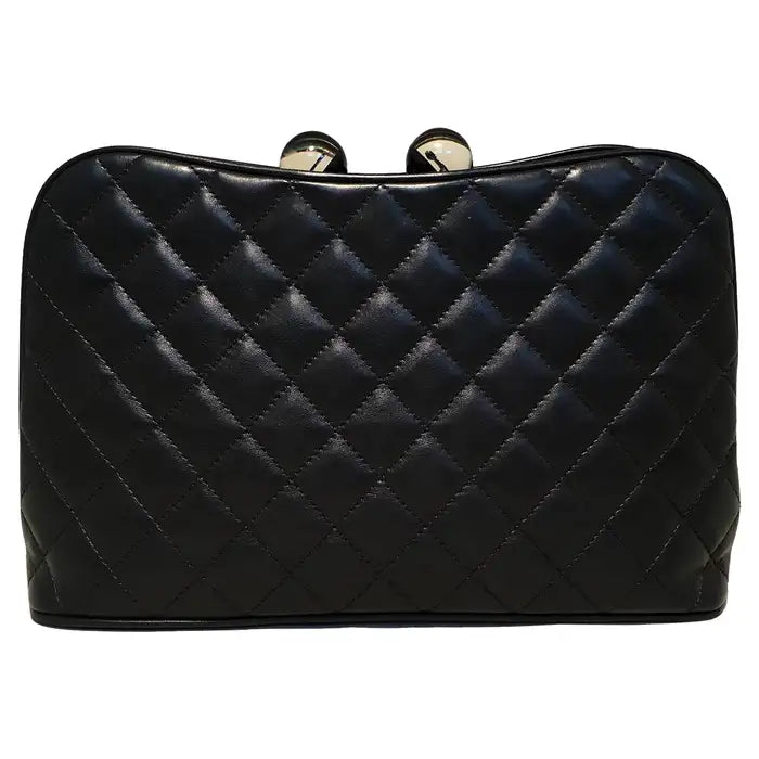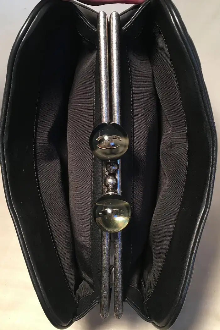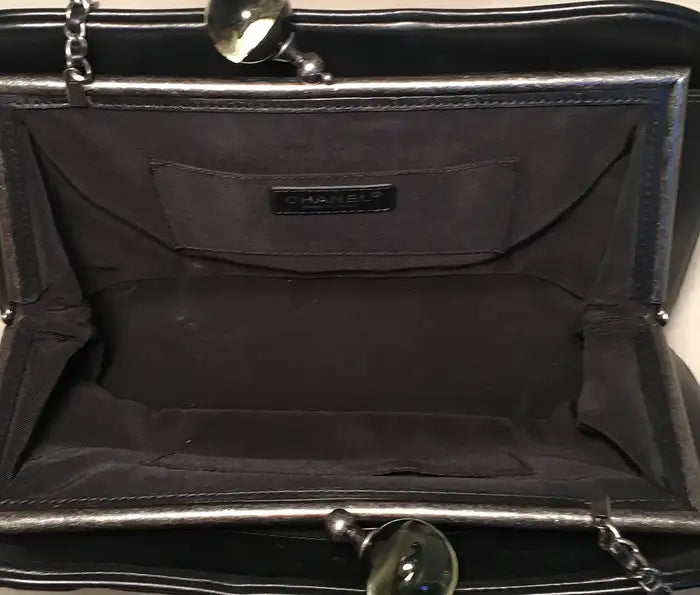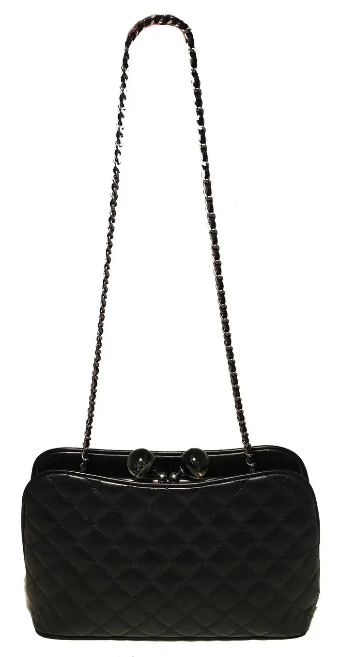 Chanel Black Leather Crystal Ball Kiss lock Clutch